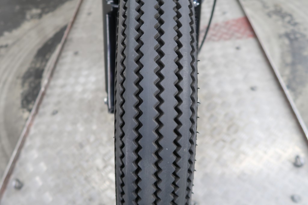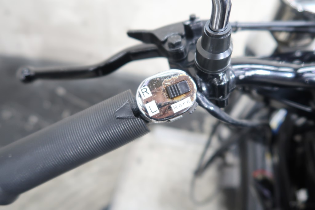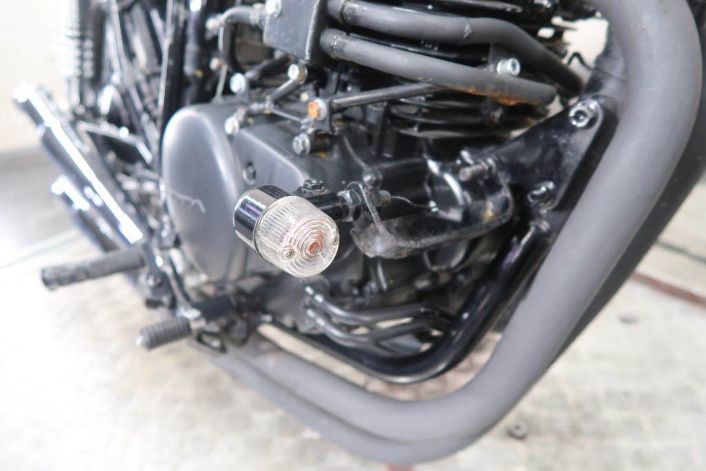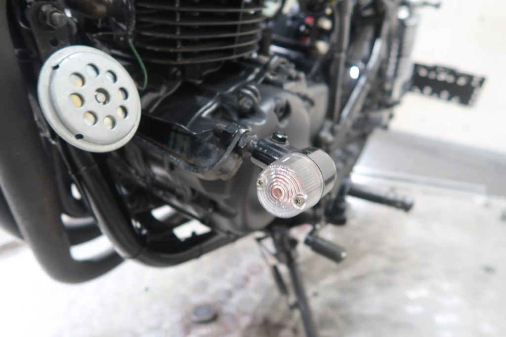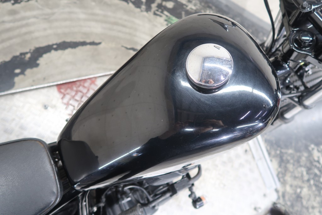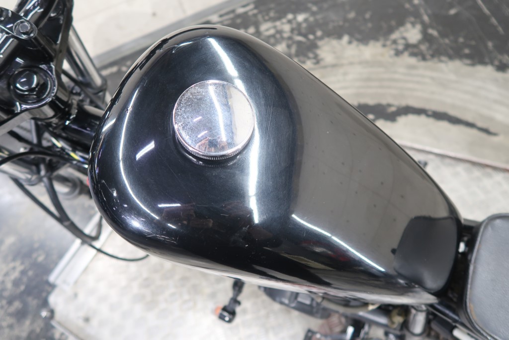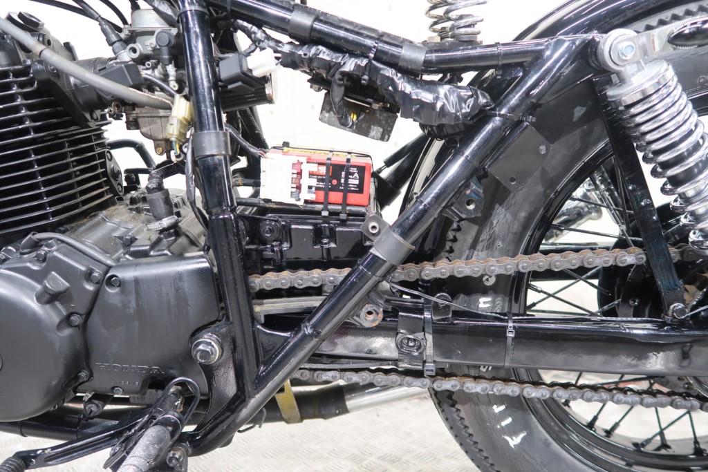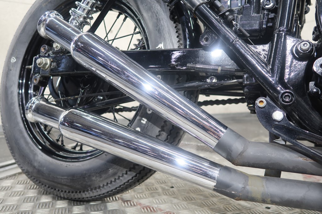 ブラックオールペン、小型スピードメーター、ピーナッツタンク、トランペットマフラー、小型ヘッドライト、サドルシート、テールランプ付きウインカー、サイドプレートステー、バーハンドル、小型スイッチ