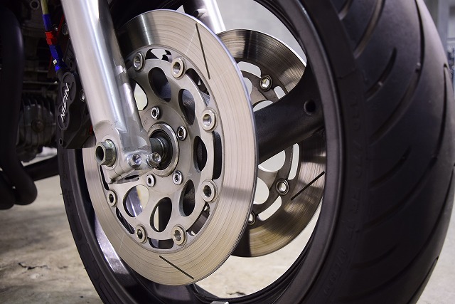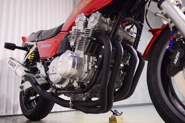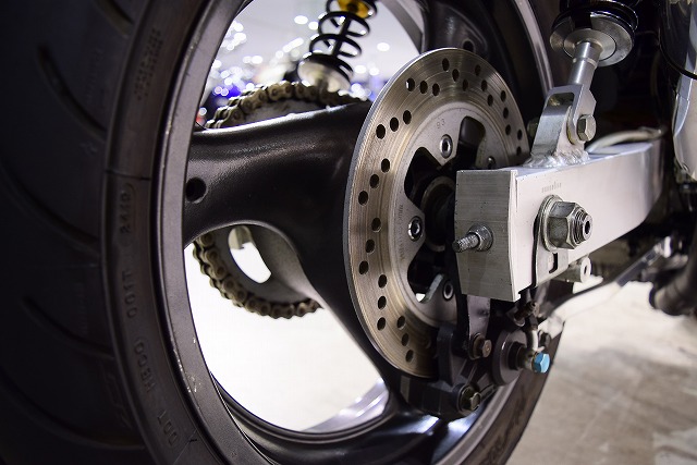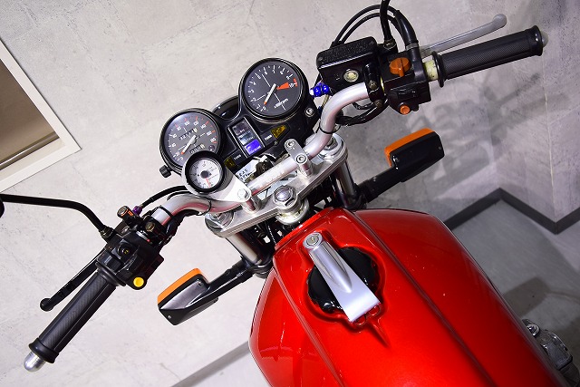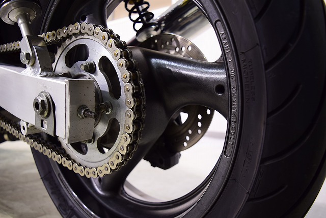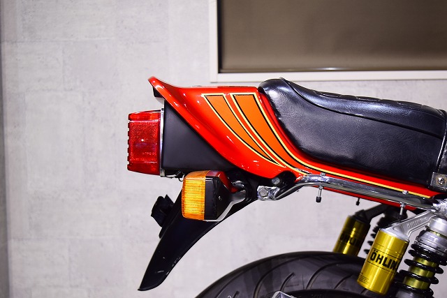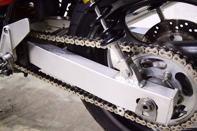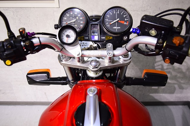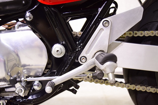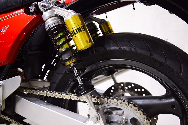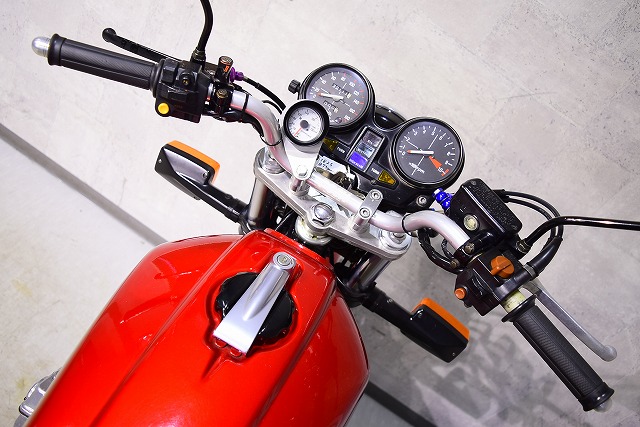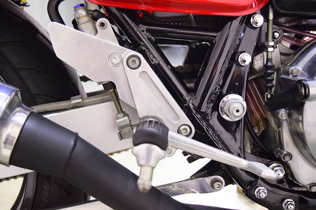 ※取り付けパーツ・USヨシムラ製フルEXマフラー・・オーリンズ製リヤサスペンション・SUZUKI系流用フロントフォークSET&前後17インチホイール・クレイジーホース製角アルミスイングアーム・POSH製バーハンドル・バックステップ・Nプロジェクト油温計・FRブレーキメッシュホース