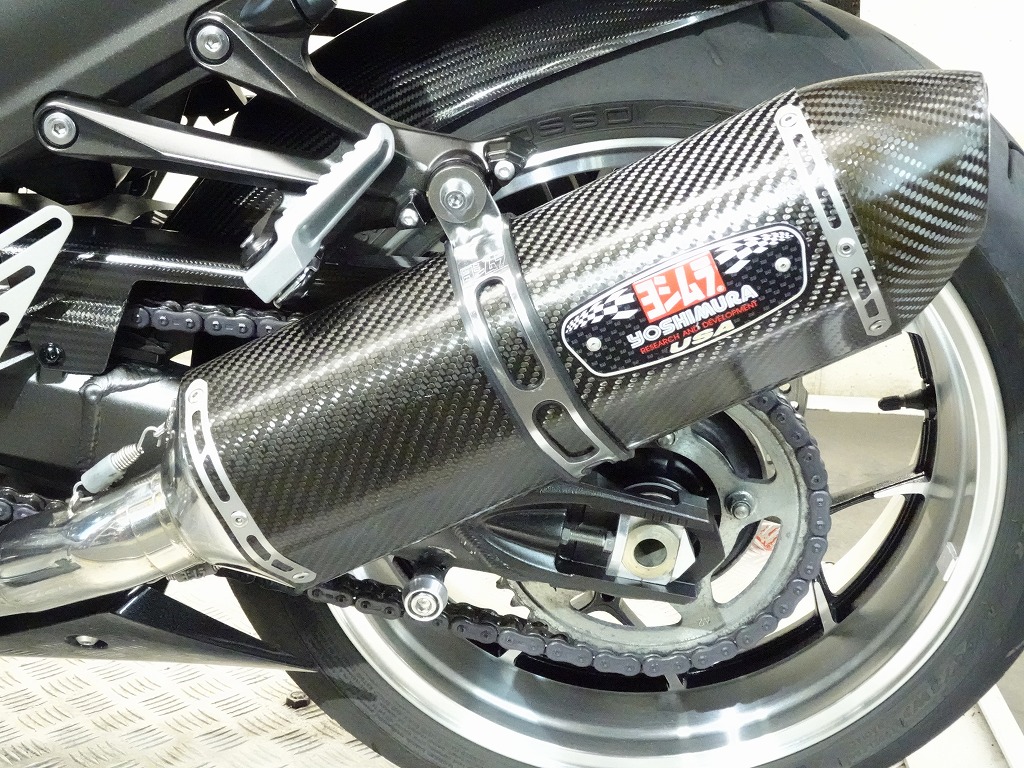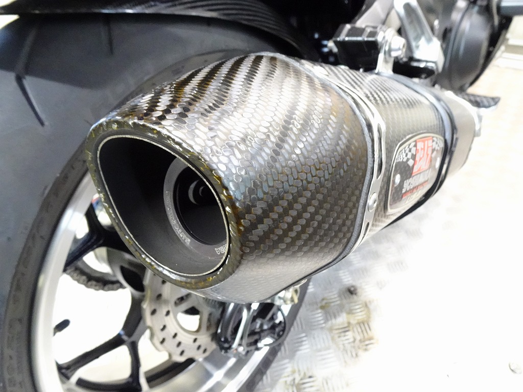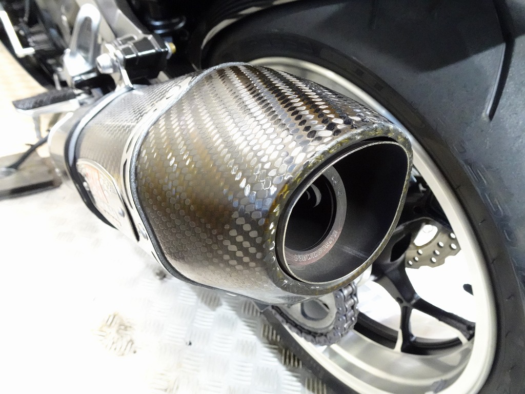 ETC車載器、ヨシムラUSA製R-77デュアルスリップオンマフラー(定価:222,400円)、ベビーフェイス製エンジンスライダー、ゼログラヴィティ製スクリーン、カーボンリアフェンダー、フェンダーレス、スタンドフック、ミラー、タンクパッド、バーエンド、ヘルメットホルダー