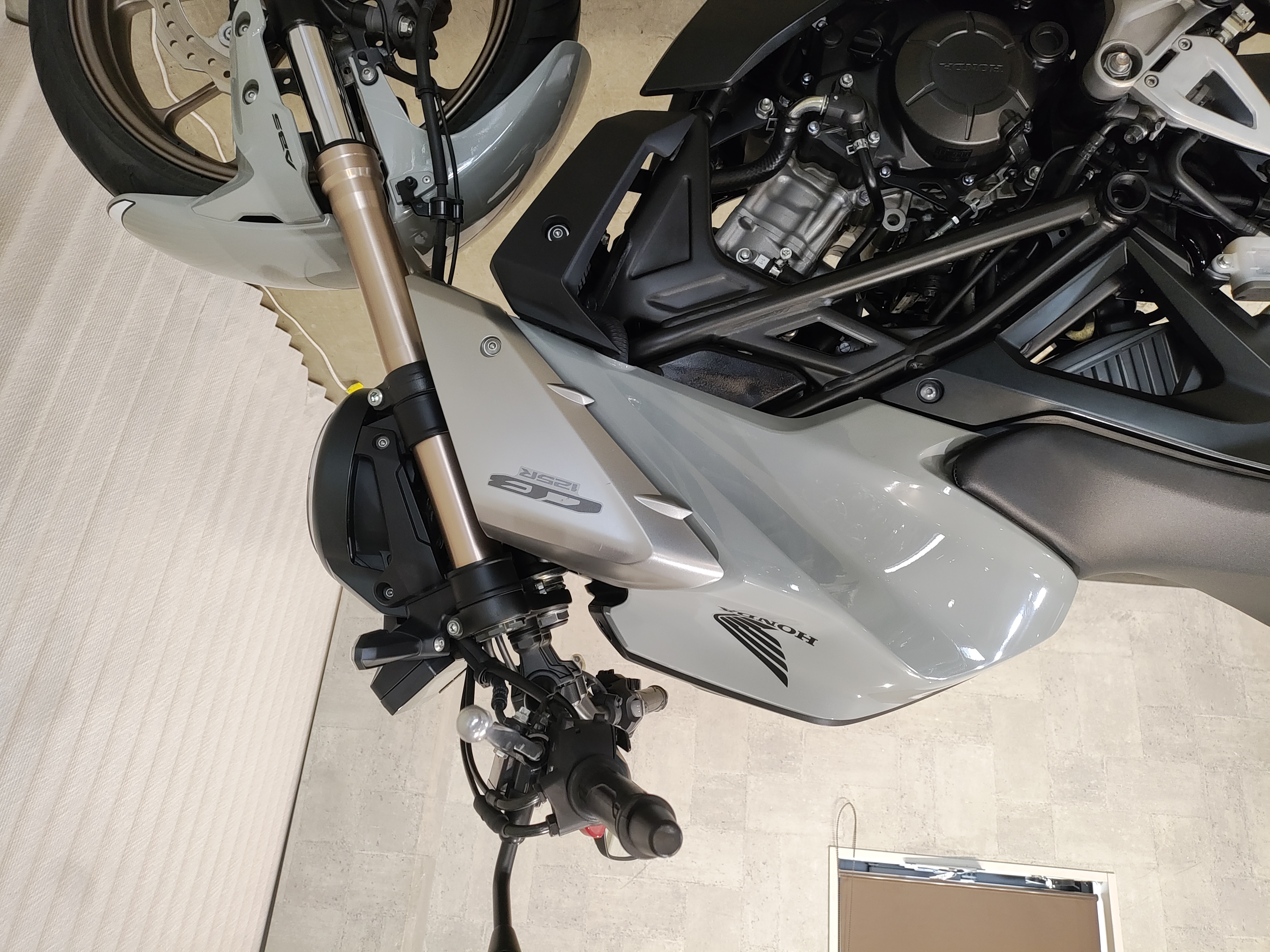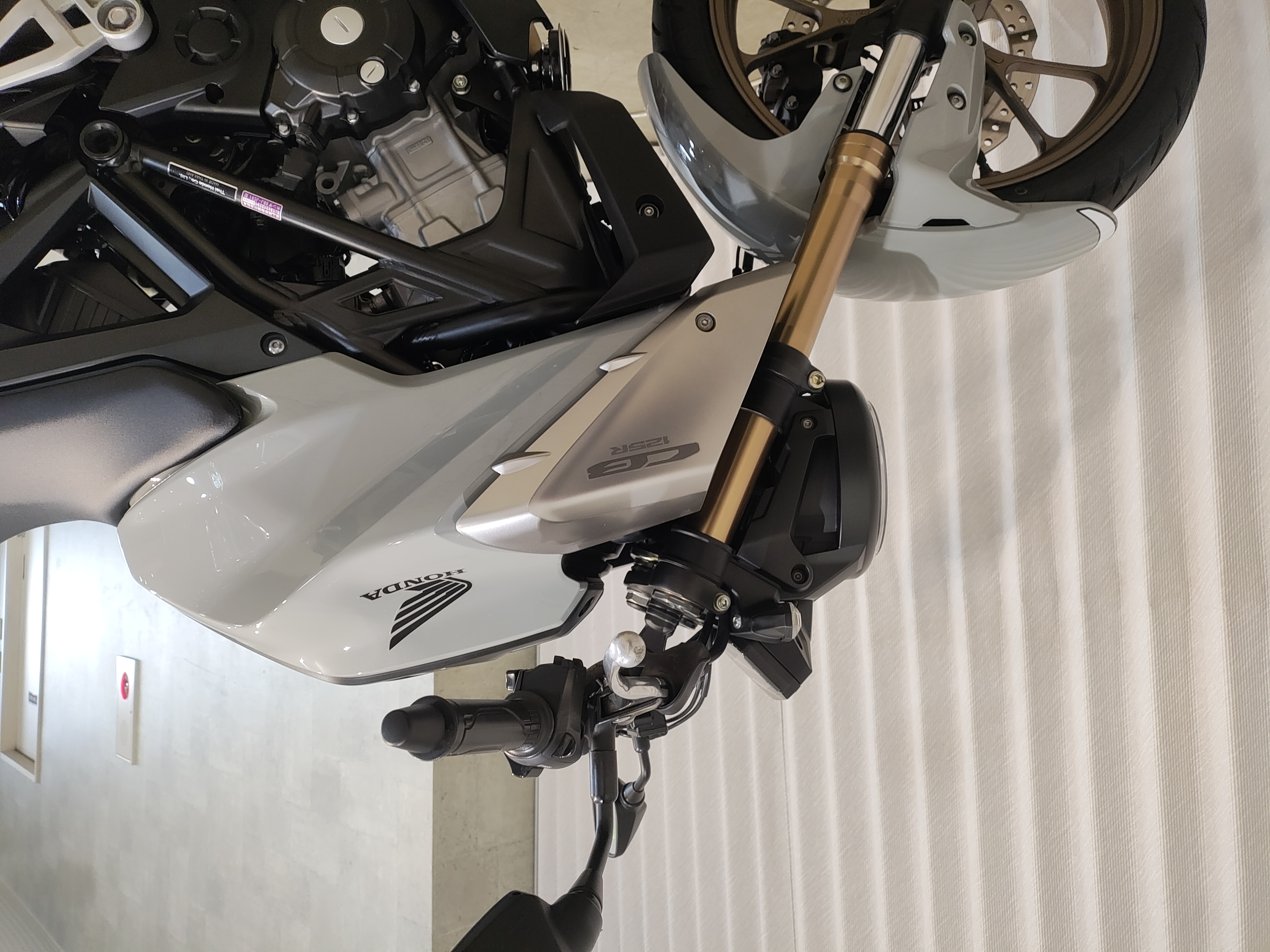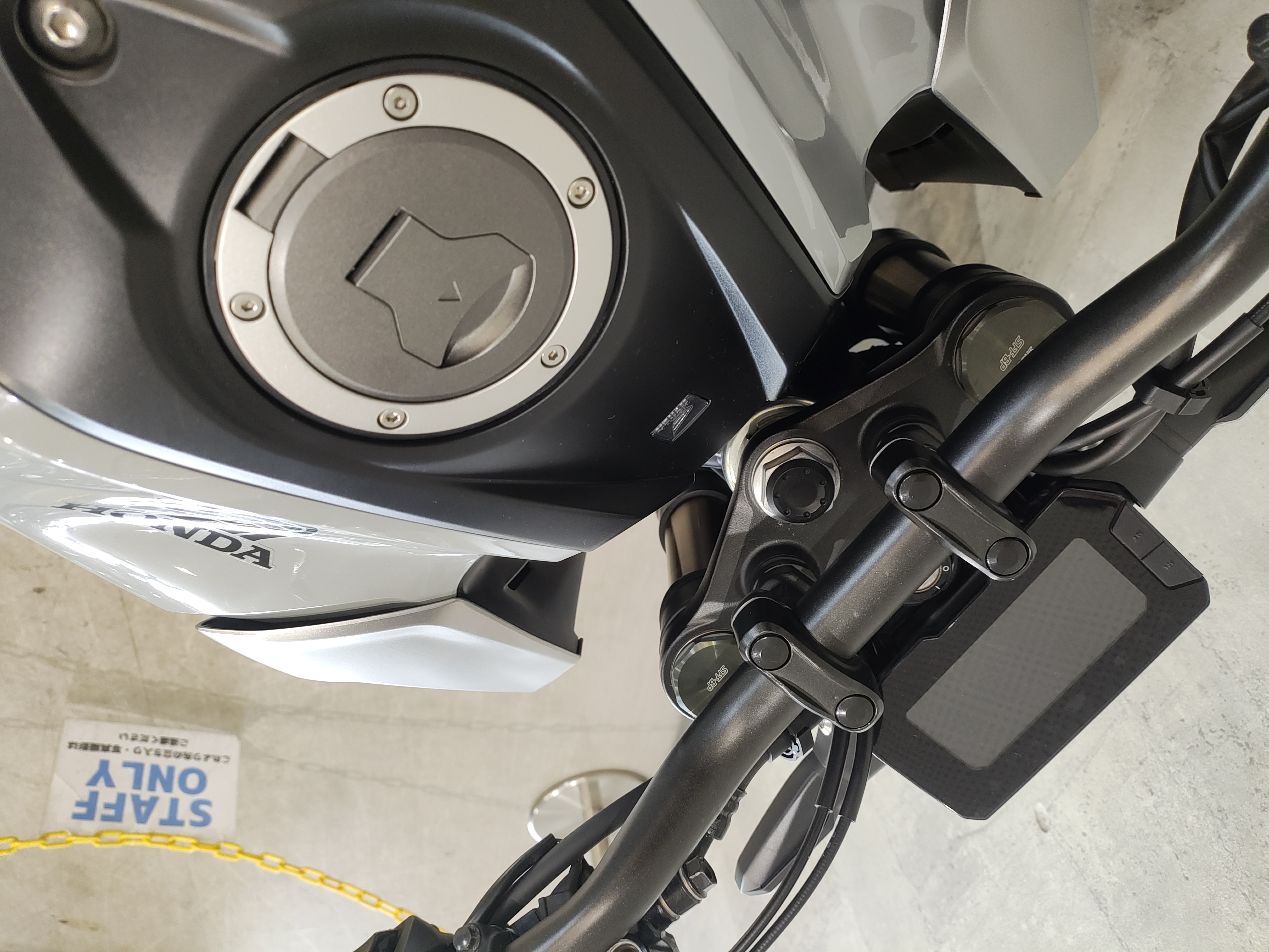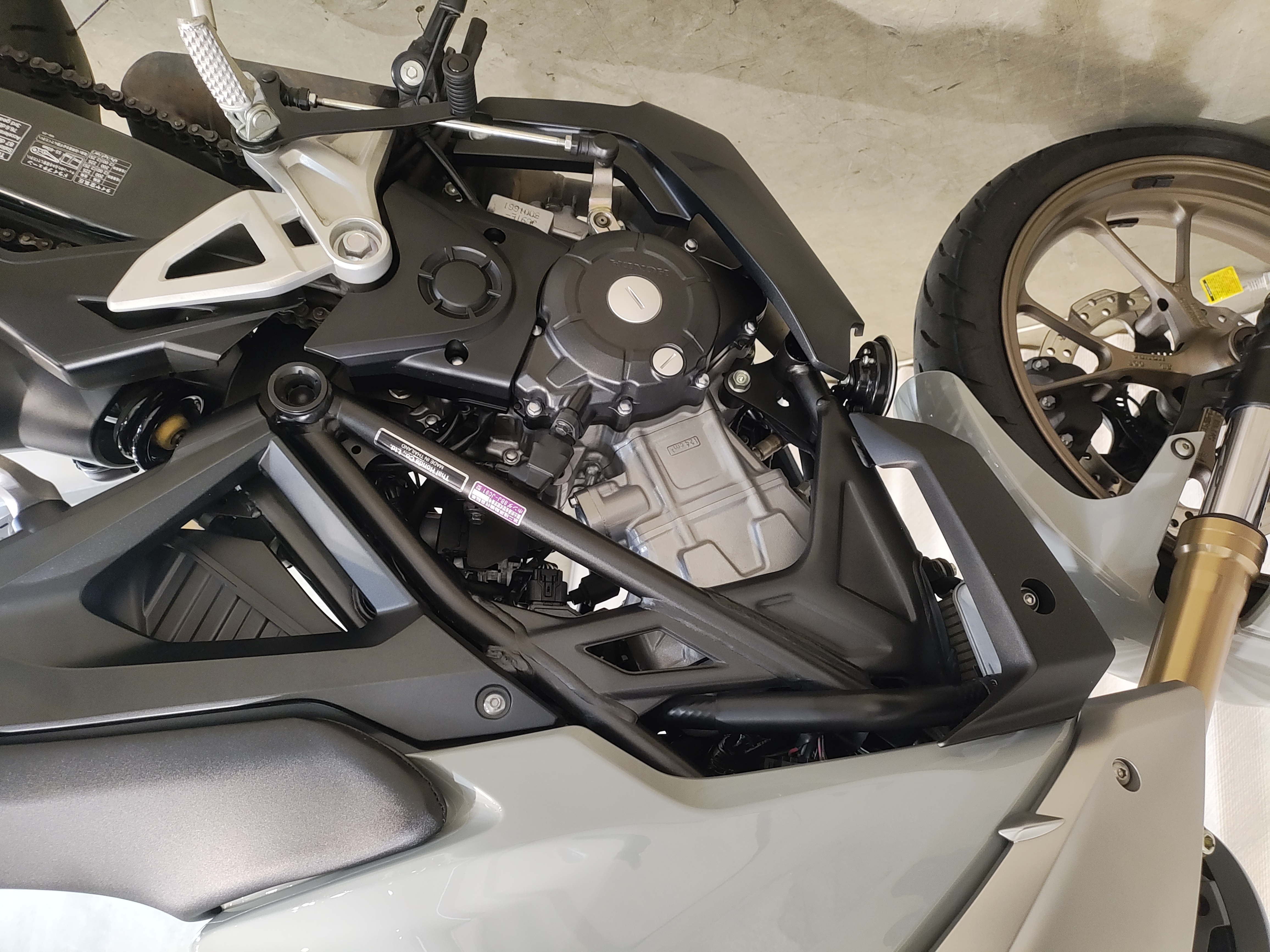 水冷DOHC4バルブエンジン搭載のJC91型現行モデル、SHOWA製SFF-BP倒立フォーク、ギヤポジションインジケーター付メーター