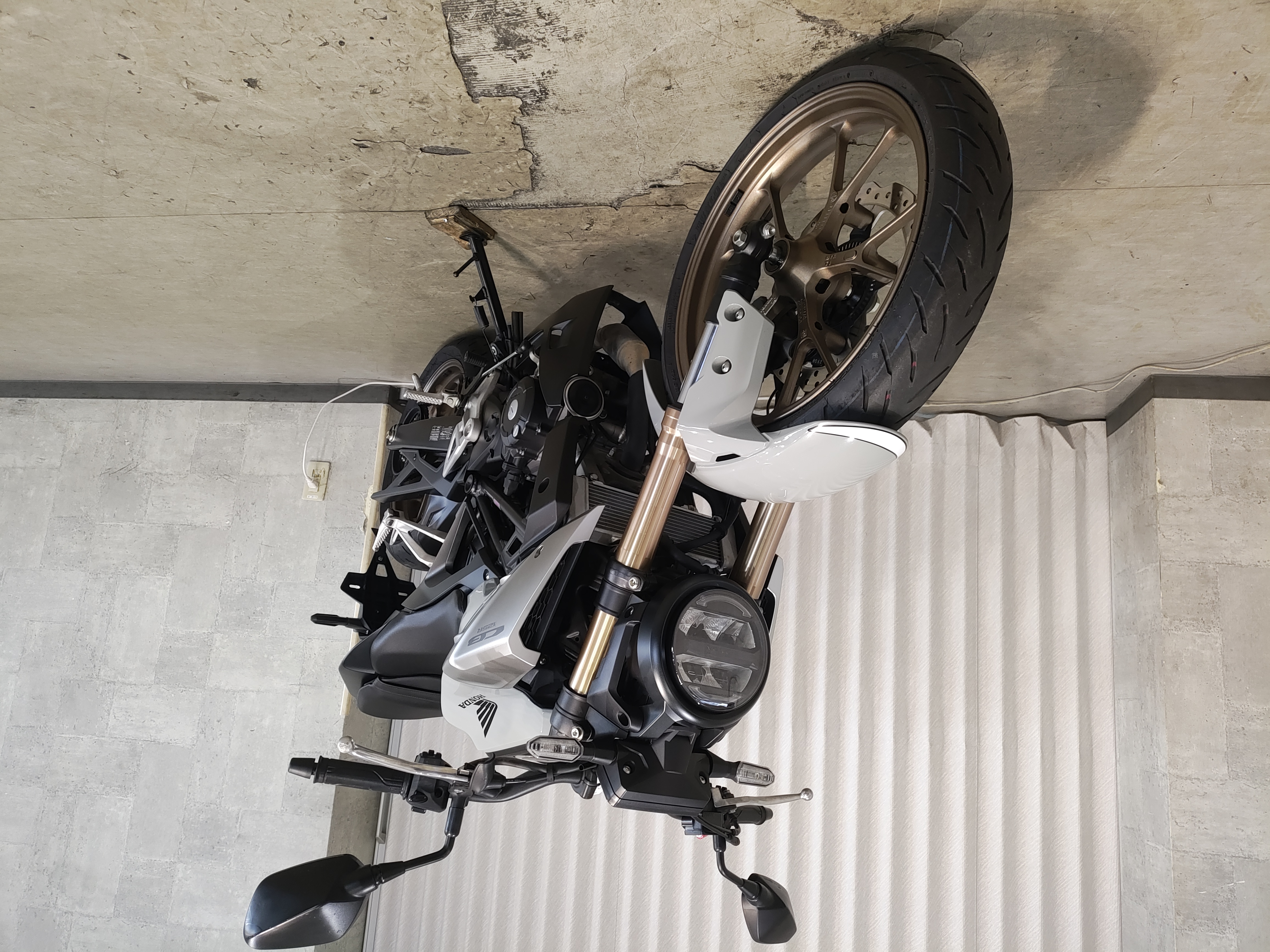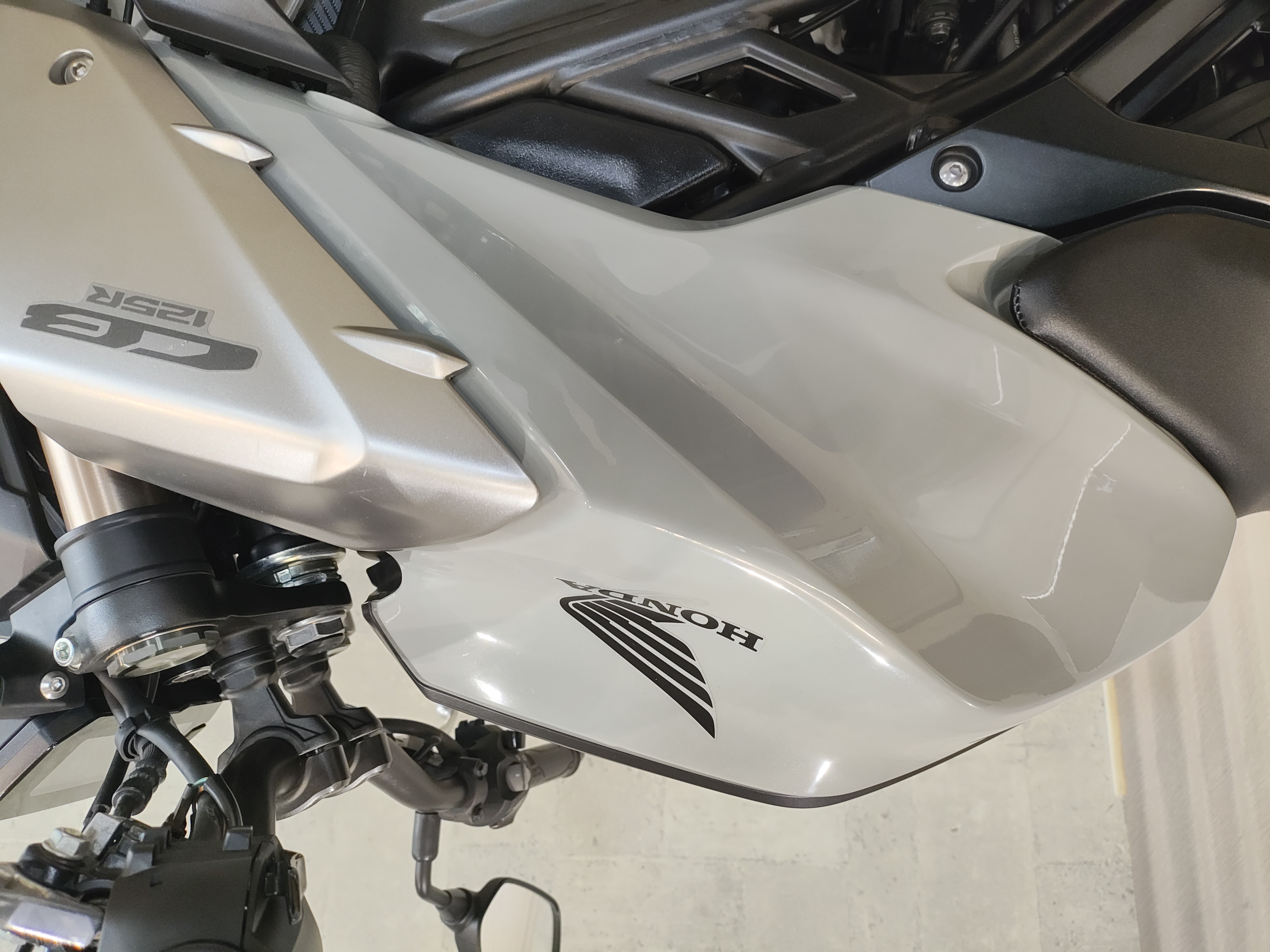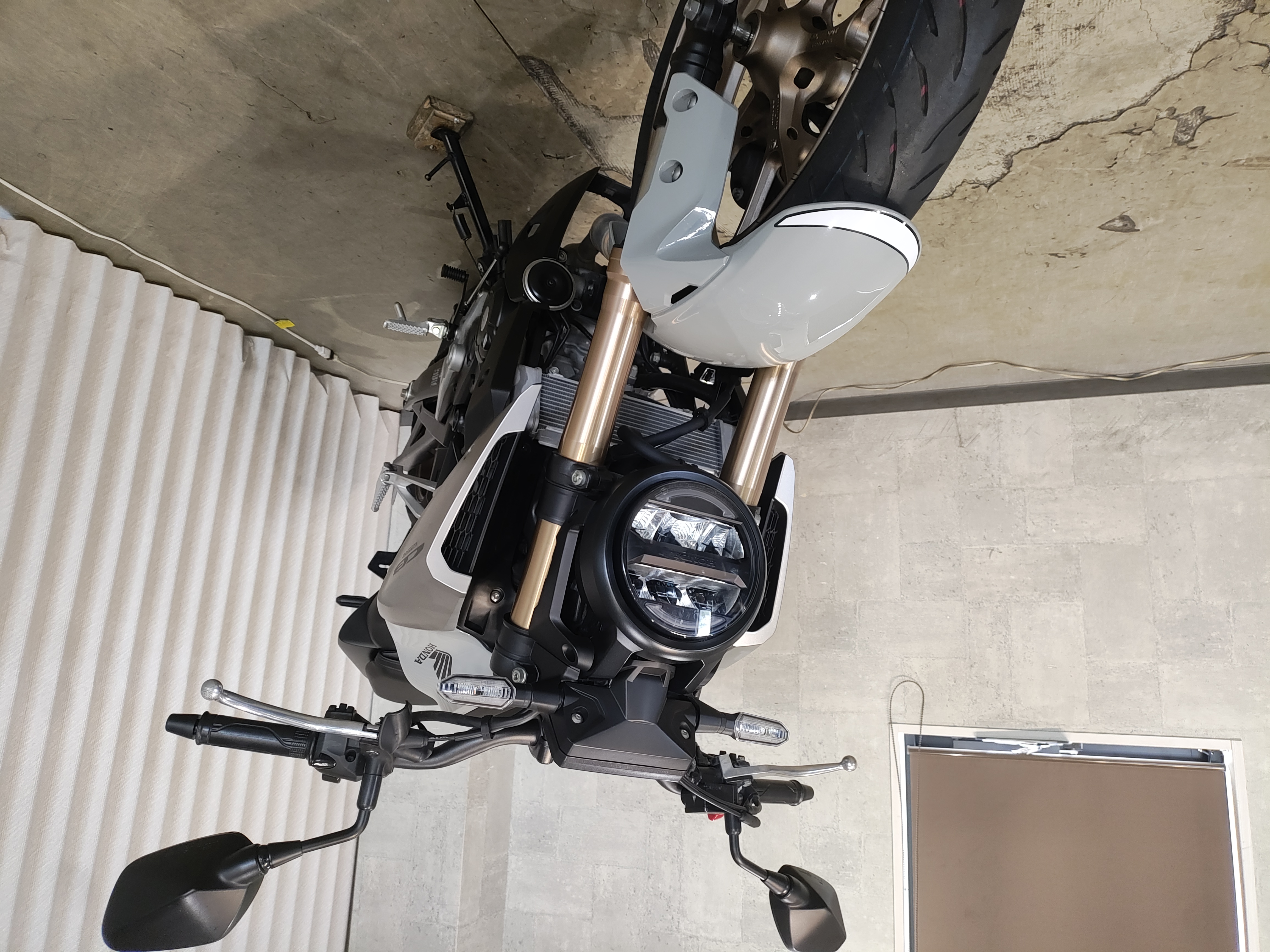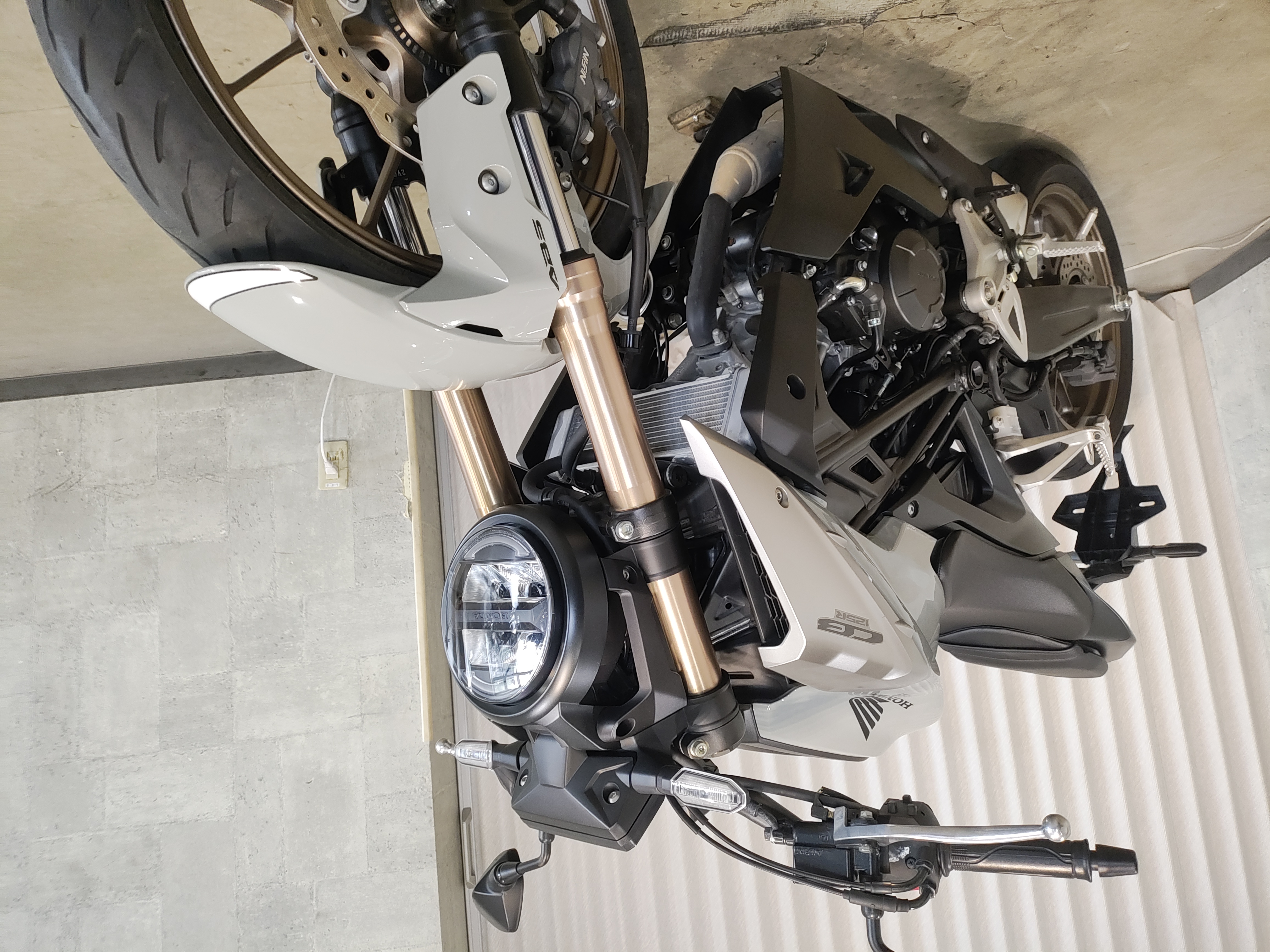 水冷DOHC4バルブエンジン搭載のJC91型現行モデル、SHOWA製SFF-BP倒立フォーク、ギヤポジションインジケーター付メーター