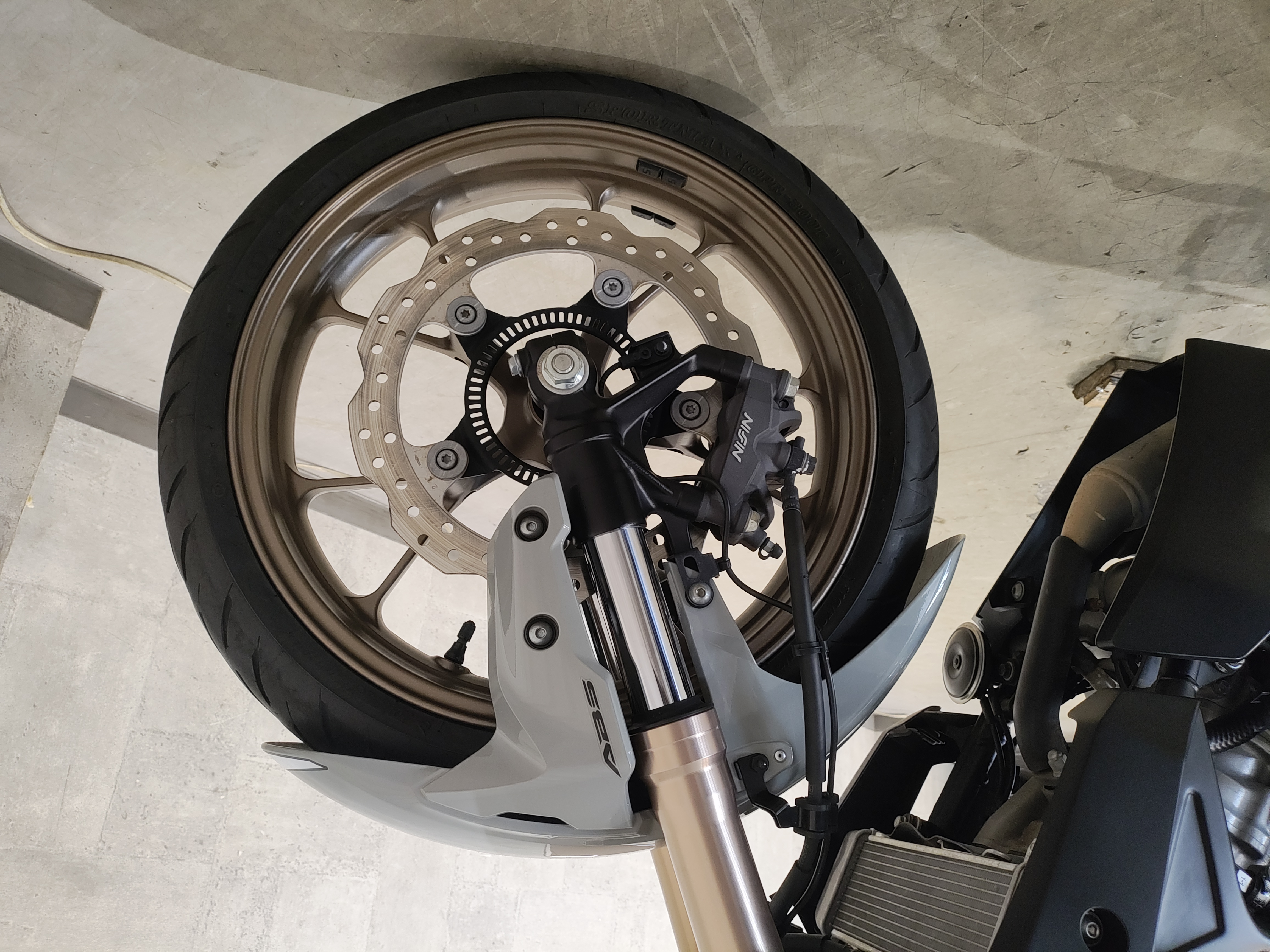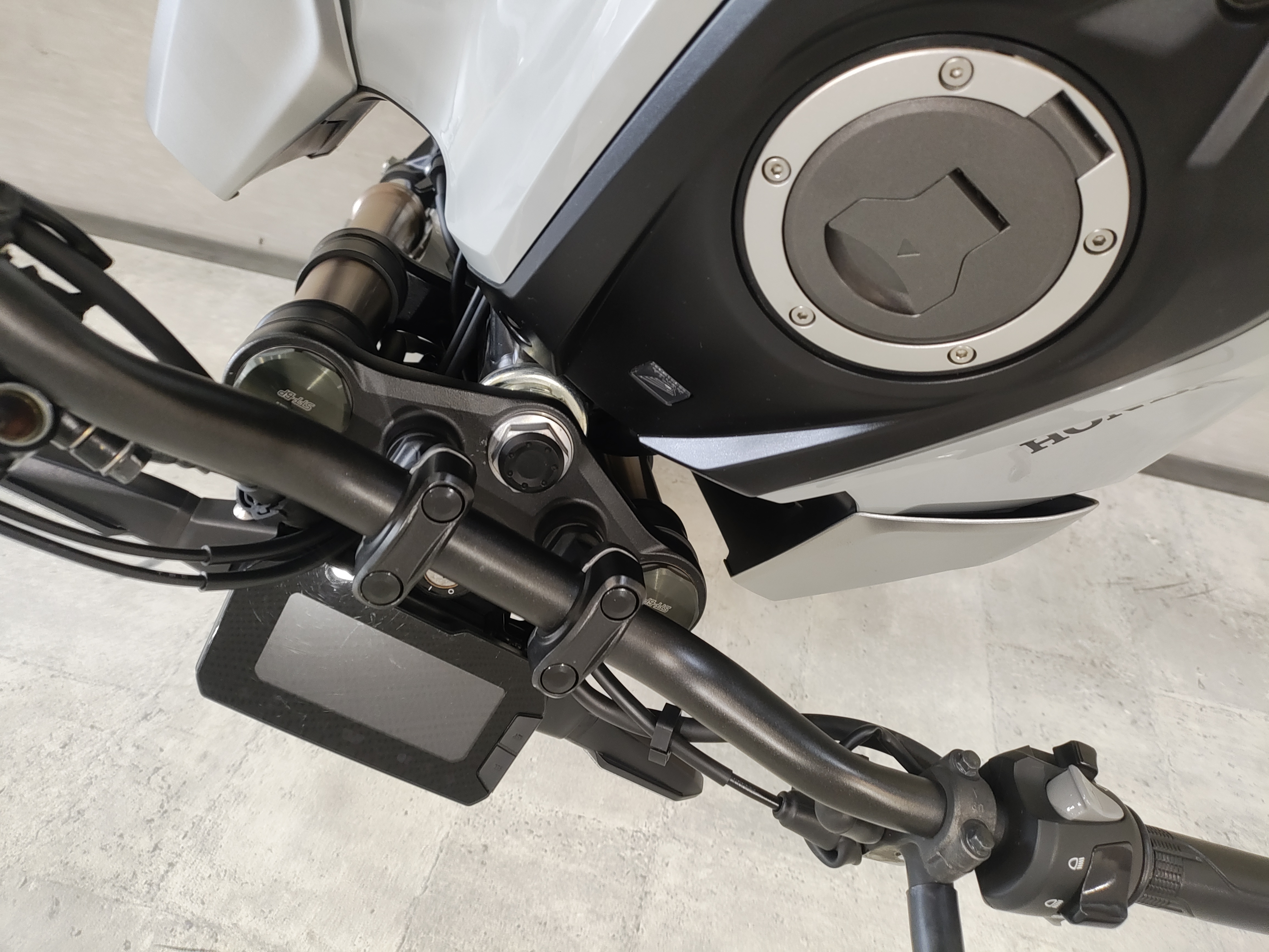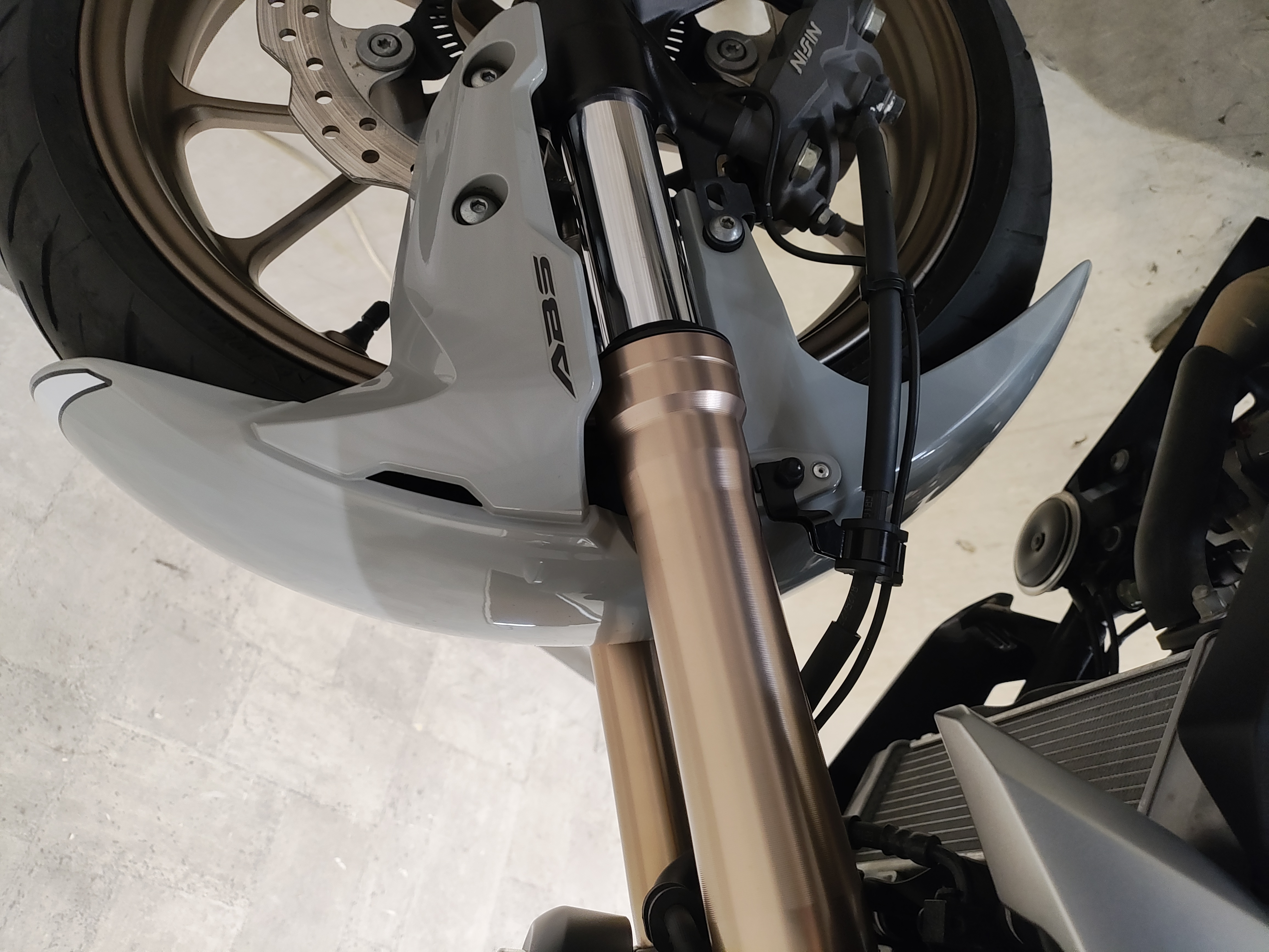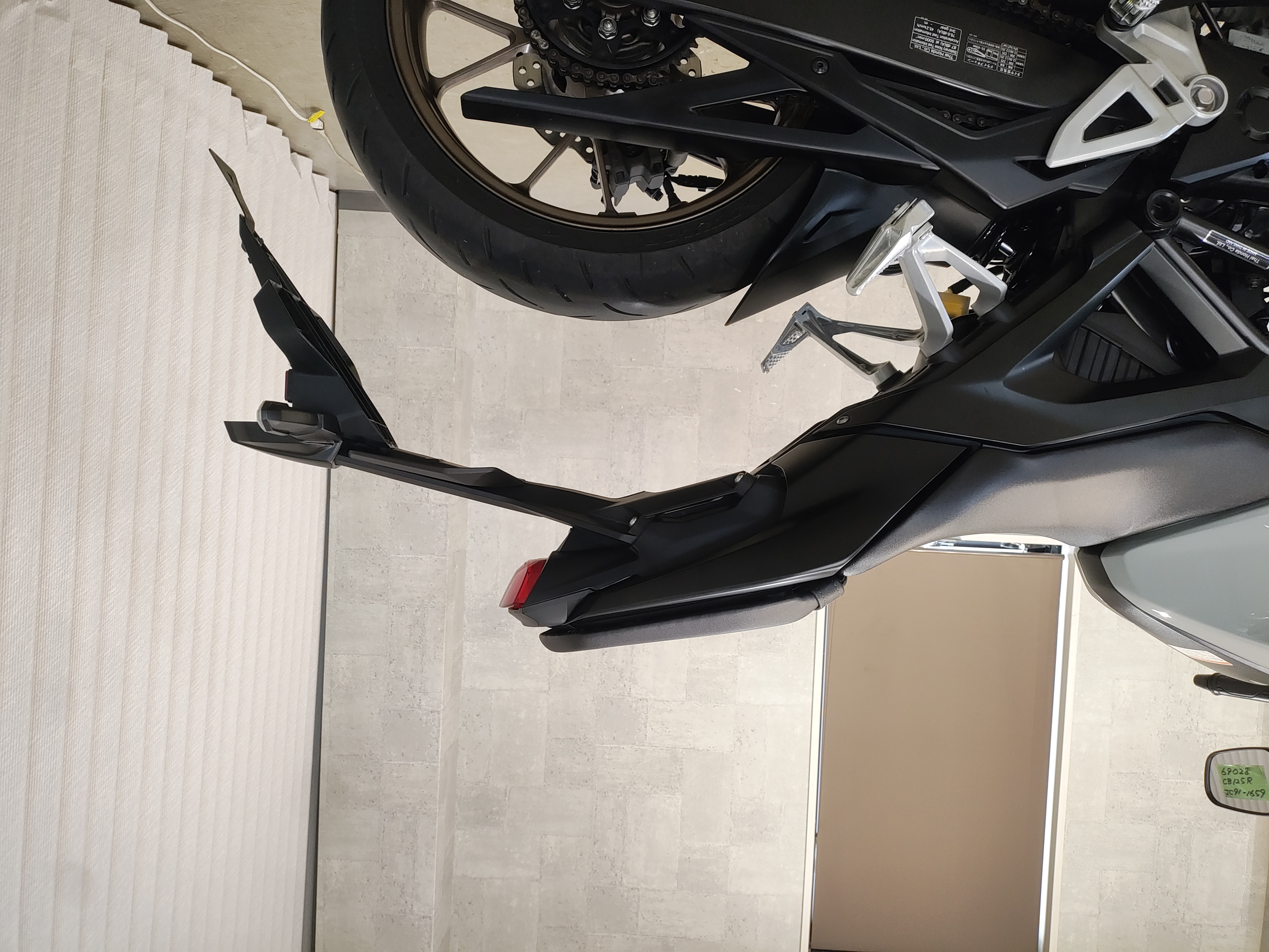 水冷DOHC4バルブエンジン搭載のJC91型現行モデル、SHOWA製SFF-BP倒立フォーク、ギヤポジションインジケーター付メーター