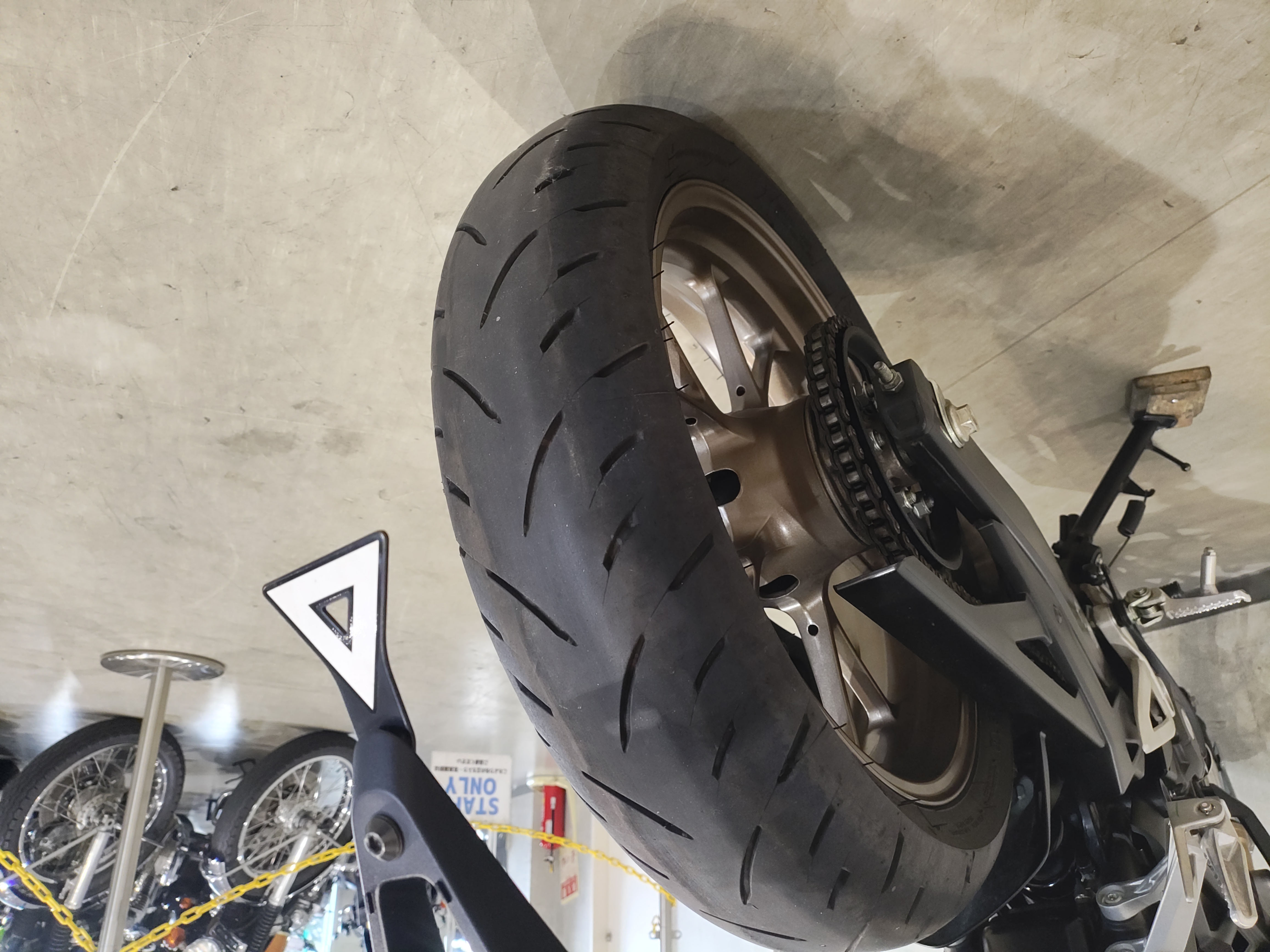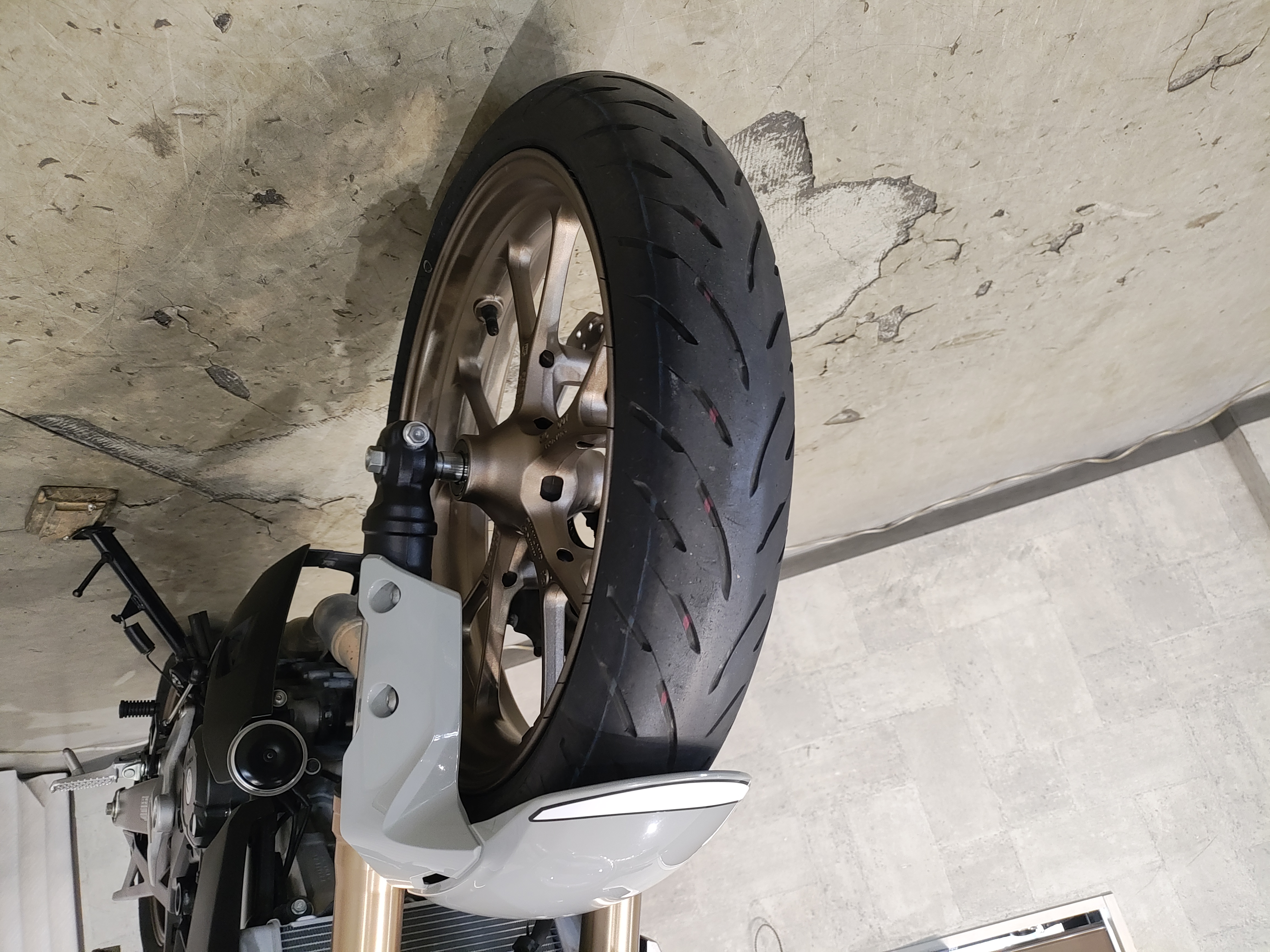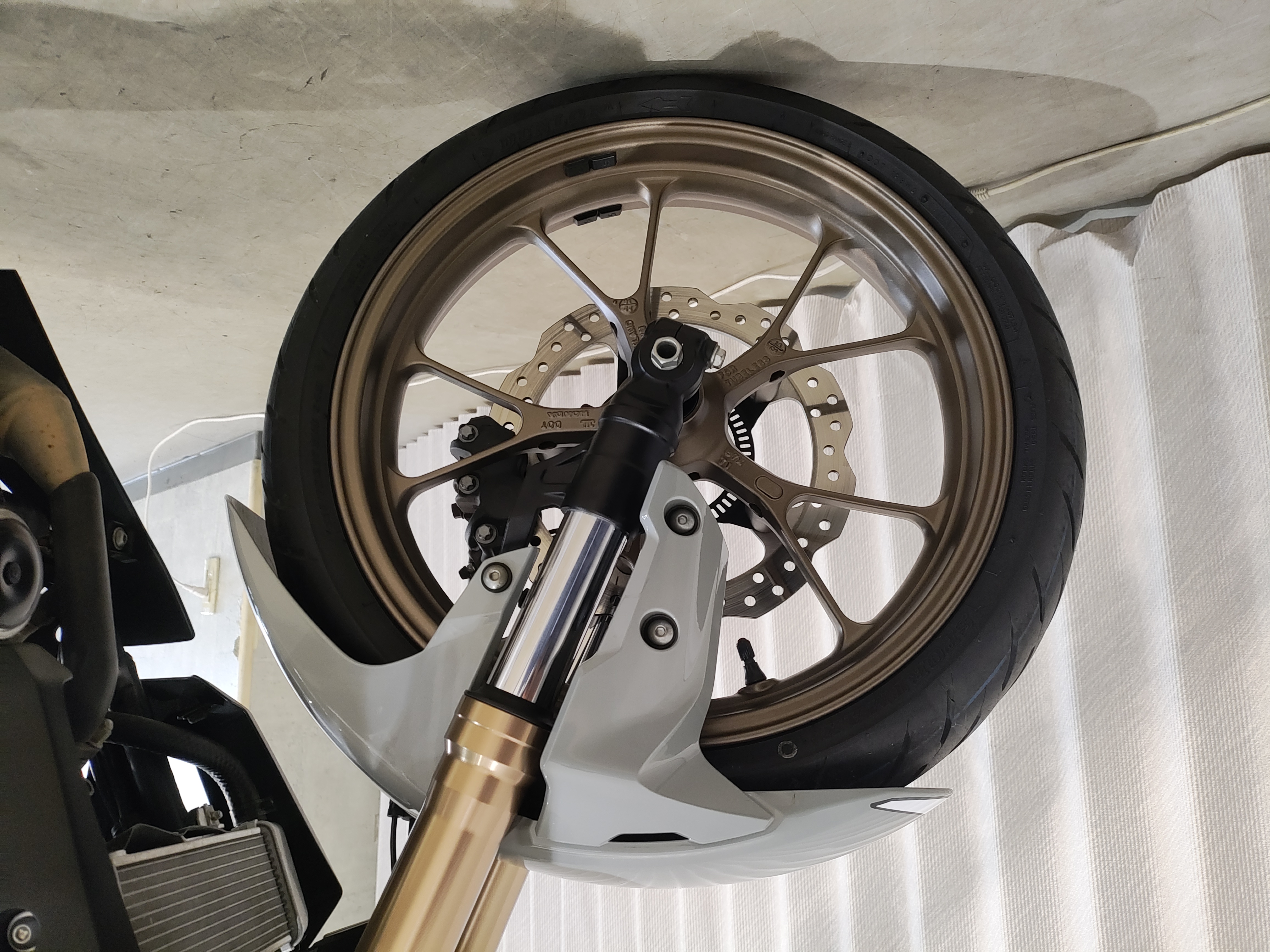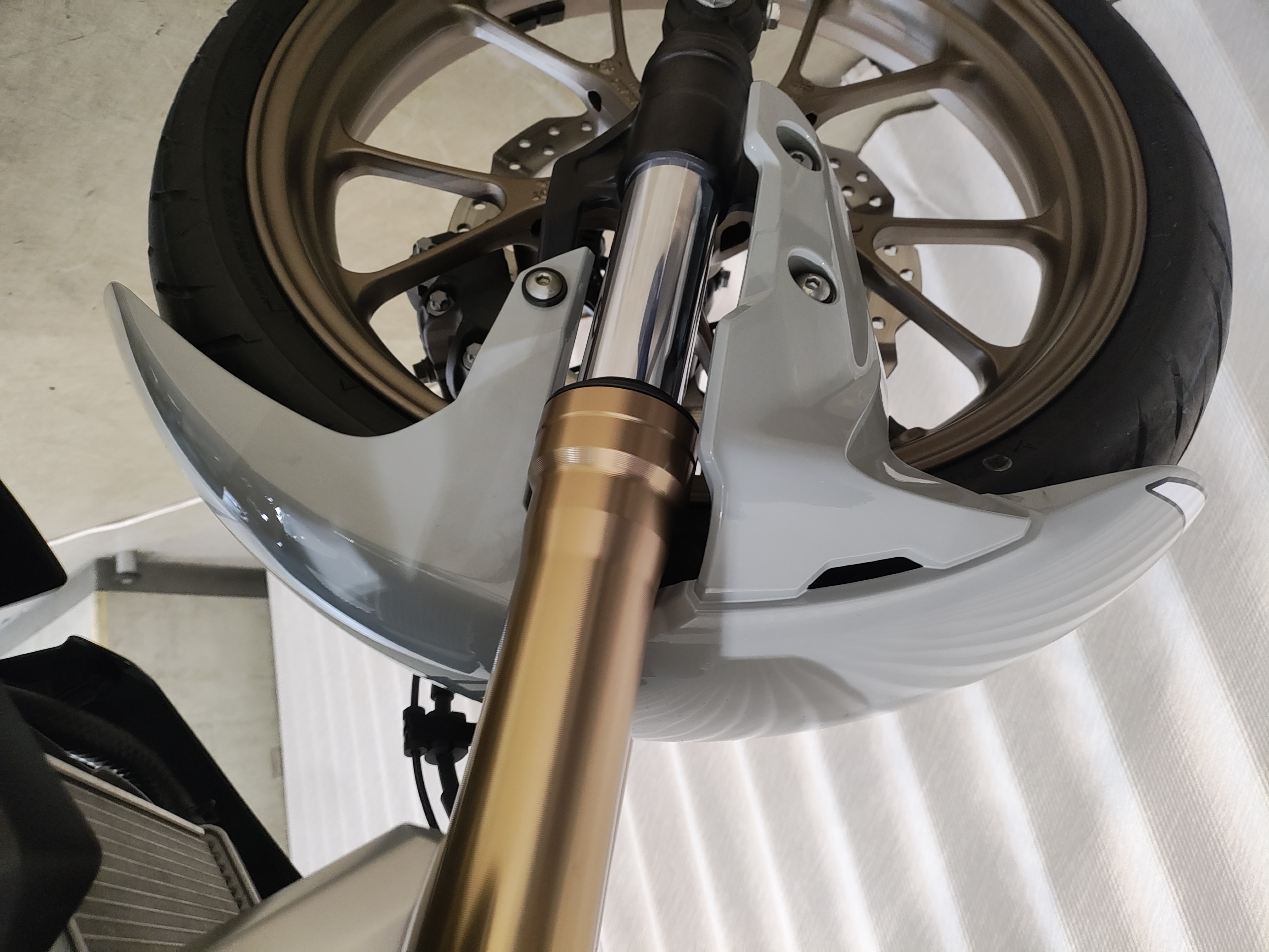 水冷DOHC4バルブエンジン搭載のJC91型現行モデル、SHOWA製SFF-BP倒立フォーク、ギヤポジションインジケーター付メーター