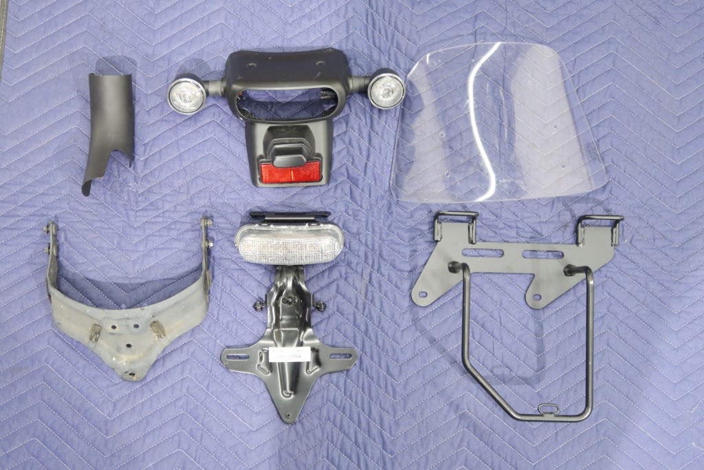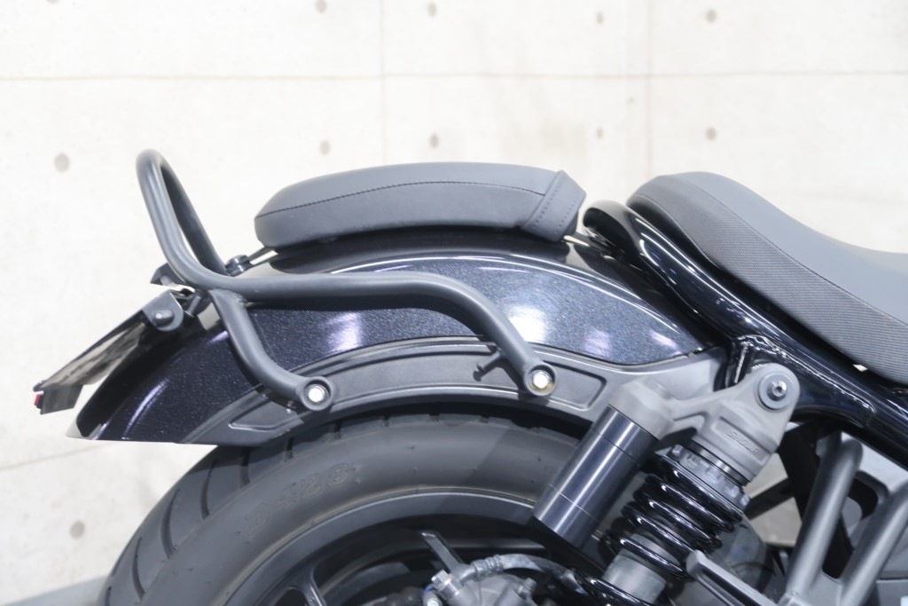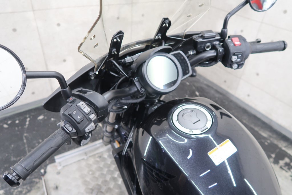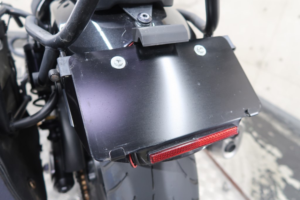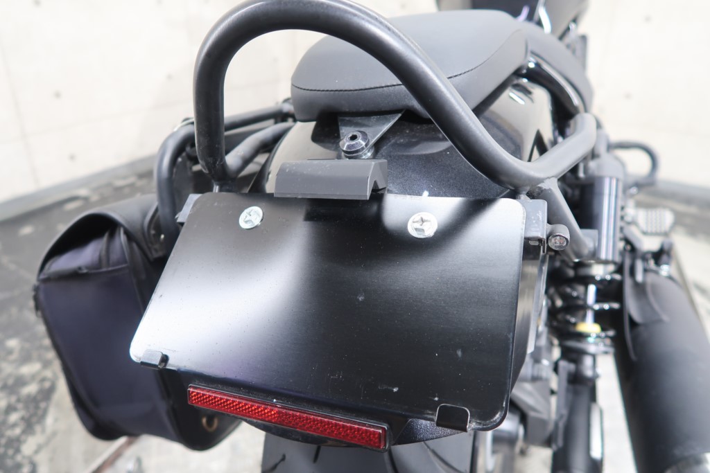社外カウル、リアフェンダーレス、エンジンガード、タンデムバー&バッグハンガー、左サドルバッグ、リア超小型LEDウインカー、純正グリップヒーター、ETC2.0標準装備