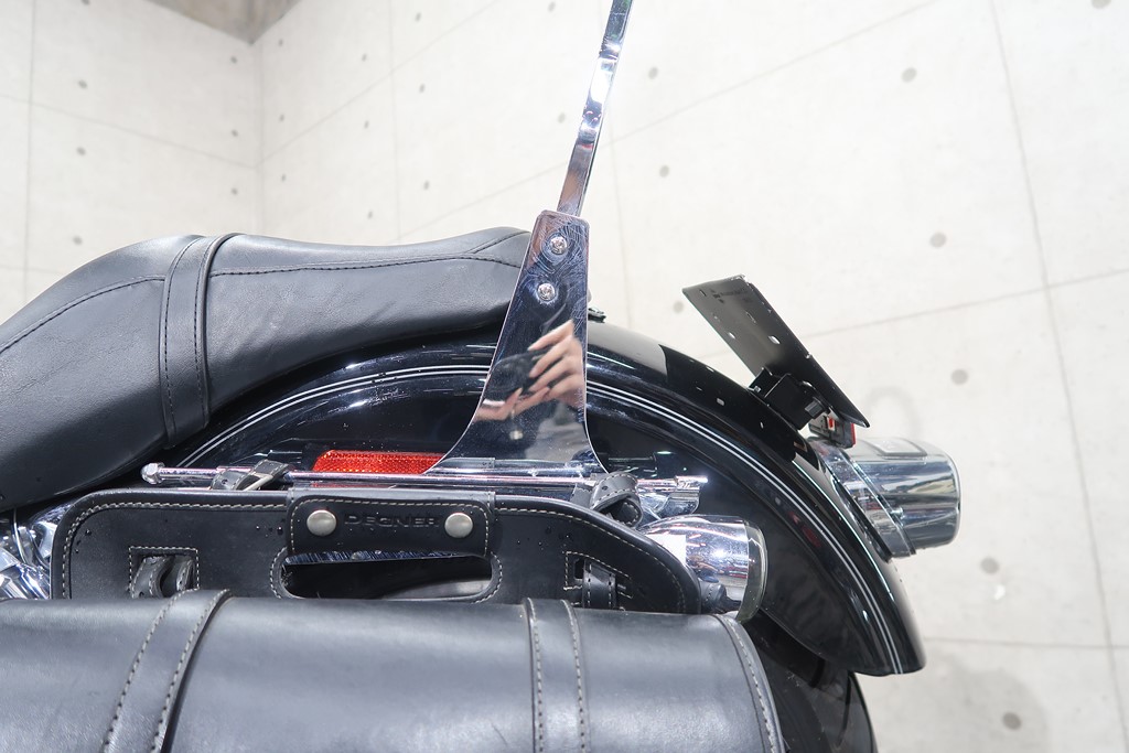 バックレスト、グリップヒーター、ペグ、ハイウェイペグ、デグナーサドルバッグ、サドルバッグサポート、メッキスイッチ、メッキスイングアーム、メッキベルトカバー、メッキスプロケット、ポップアップタンクキャップ、スクリーミンイーグルプラグコード、S&Sエアクリーナー、キャリパーカバー、アクスルキャップ、レバー、ETC