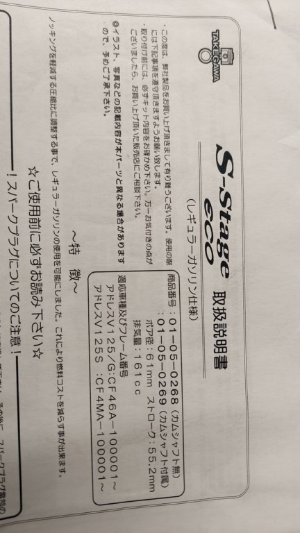 新車取り外し時のノーマルシリンダーとピストン付属します