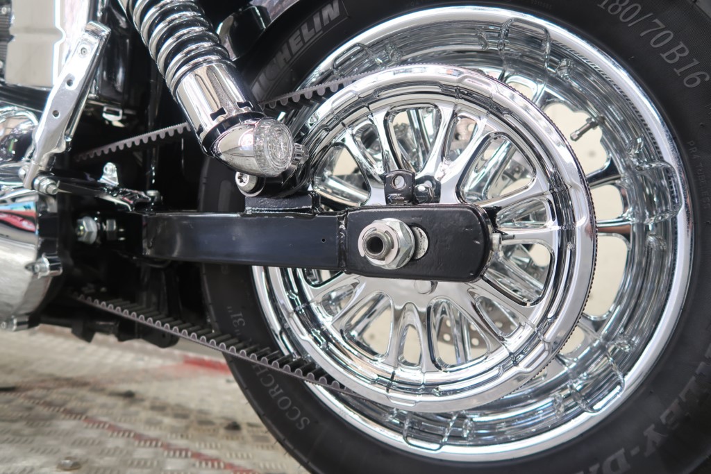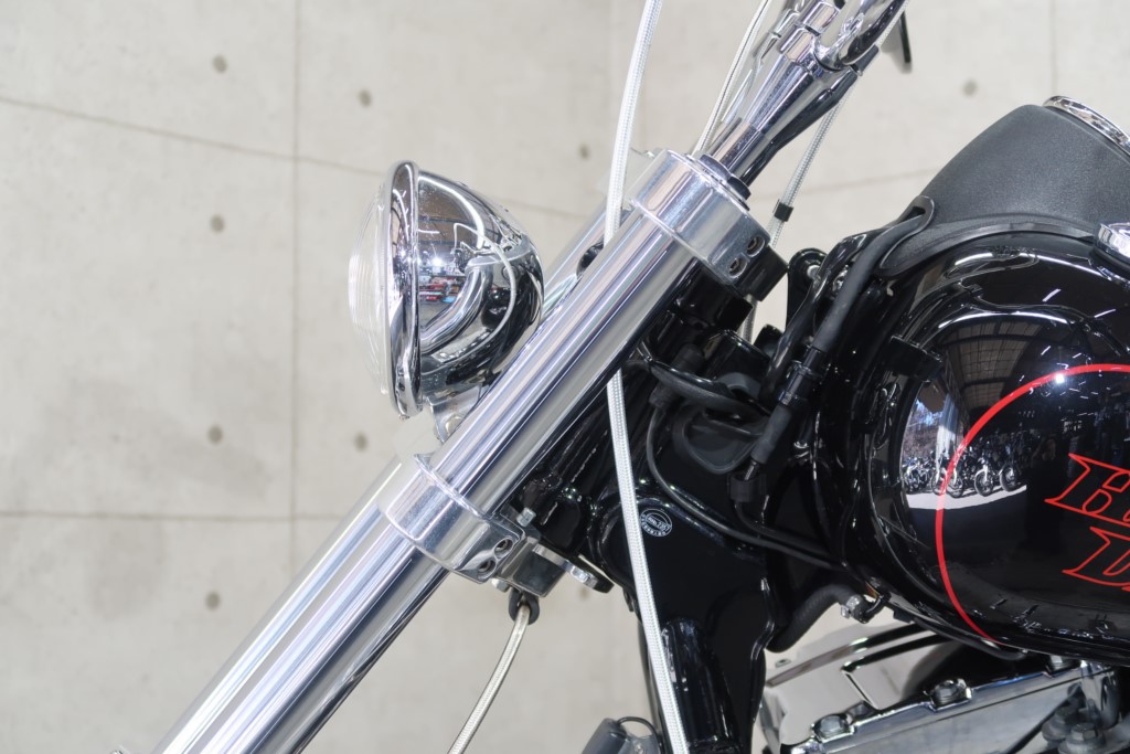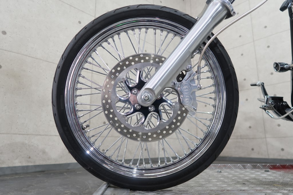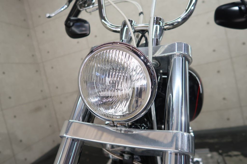 ロングFフォーク、トリプルツリー、ブレーキキャリパー、ショートフェンダー、アップハンドル、リアサスペンション、ステップ、マフラー、エアクリーナー、シート加工、シーシーバー、フロントスポークホイール、リアホイール、テールランプ、左右メッキスイッチボックス、ウインカー