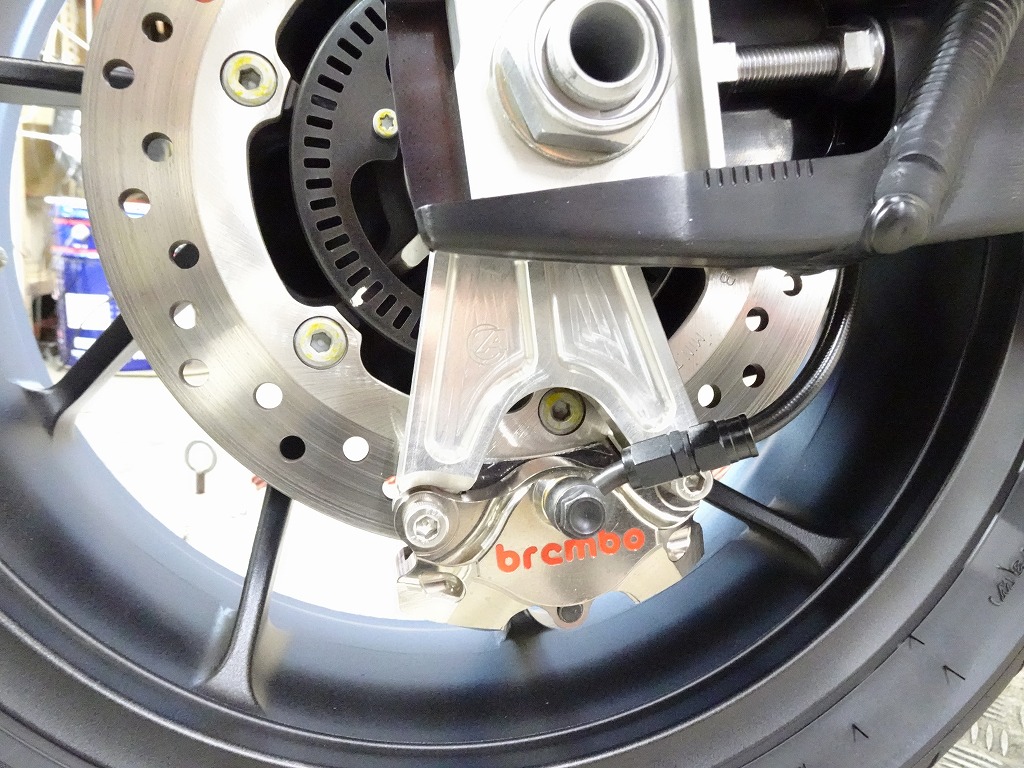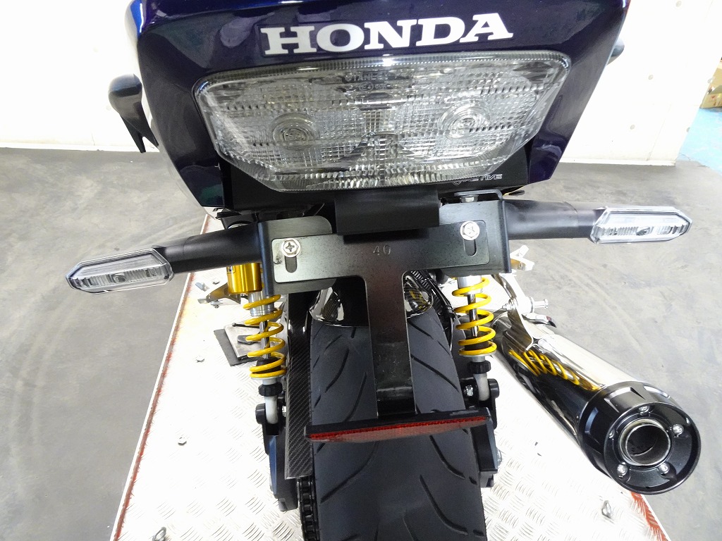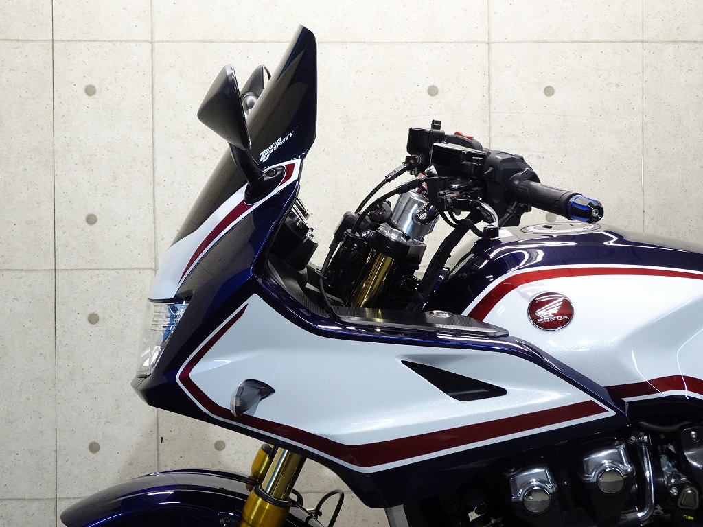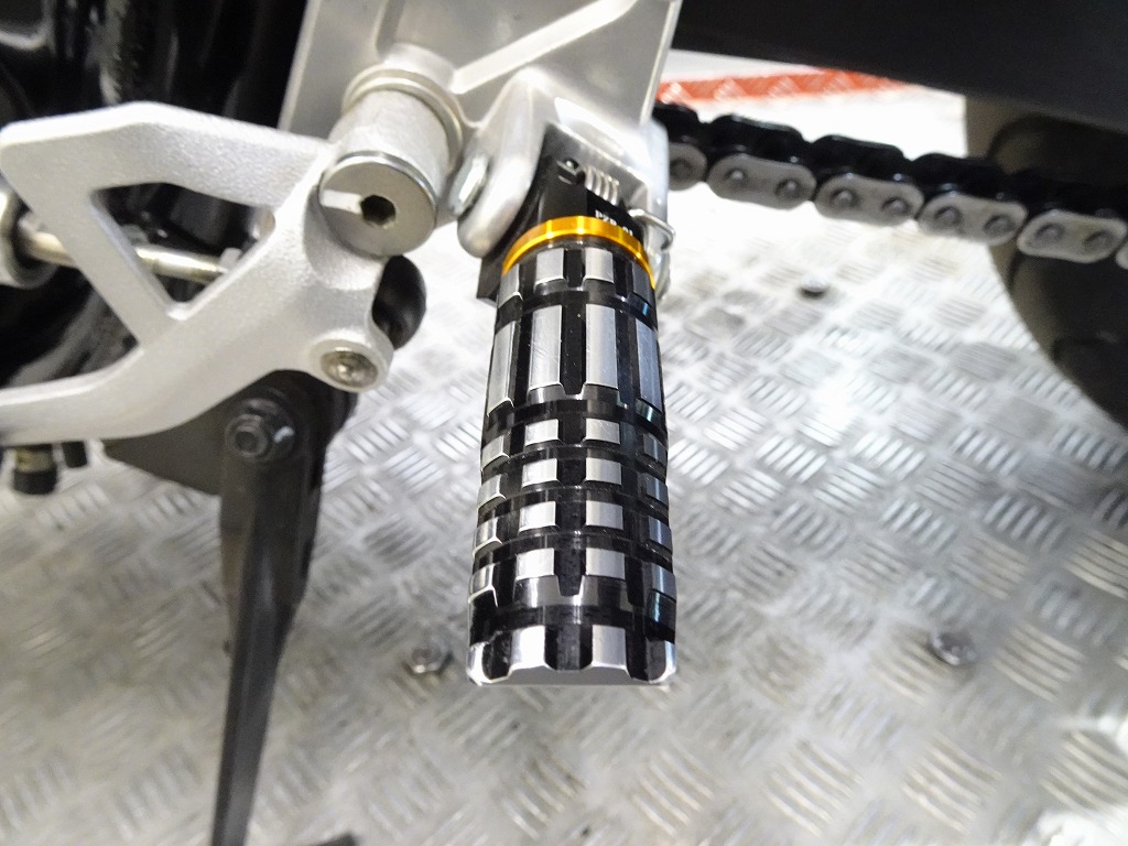 標準装備(グリップヒーター、ETC2.0車載器)、ゼログラビティ製スクリーン、カーボン調(インナーフェンダー、チェーンカバー)、グリップエンド、ハンドルブレース、エンジンスライダー、アクティブ製フェンダーレス、ステップ、ブレーキレバー&クラッチレバー、タンクパッド、オイルキャップ、前後ブレーキワイヤーメッシュホース等
