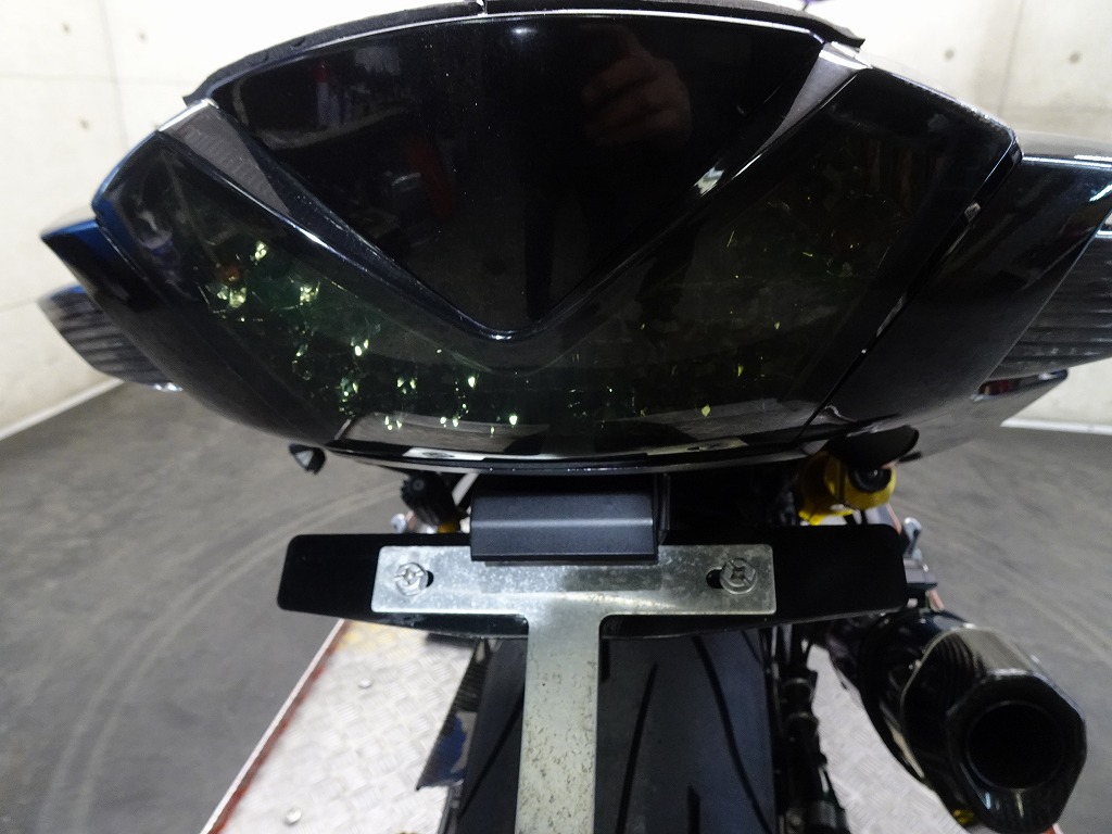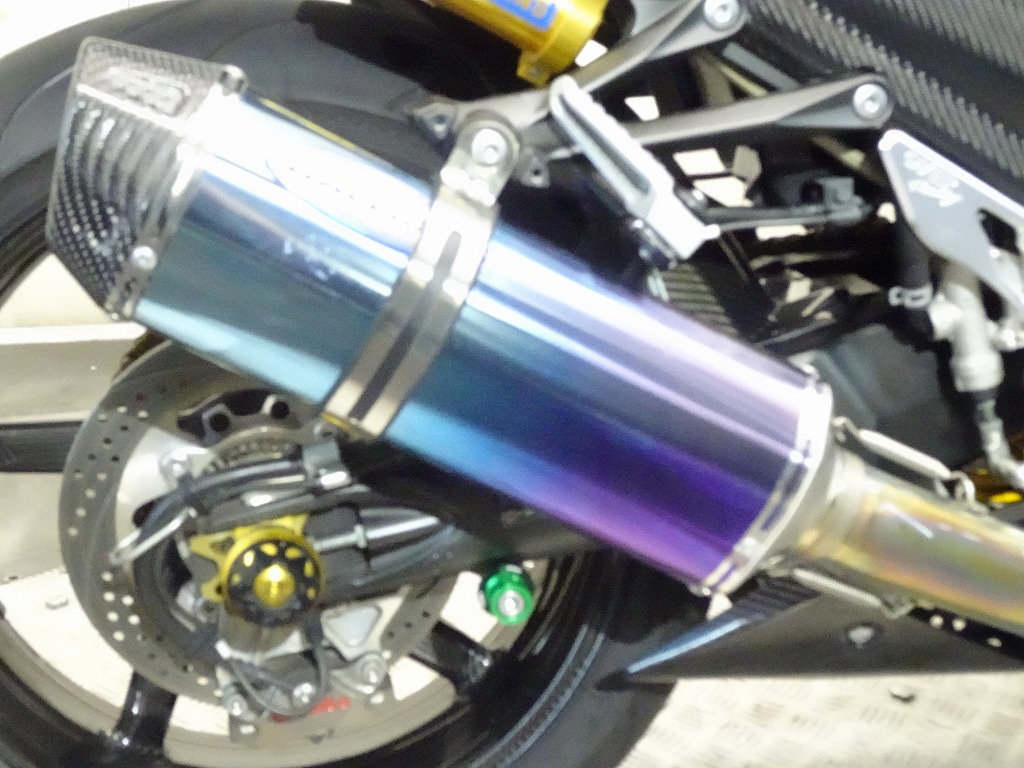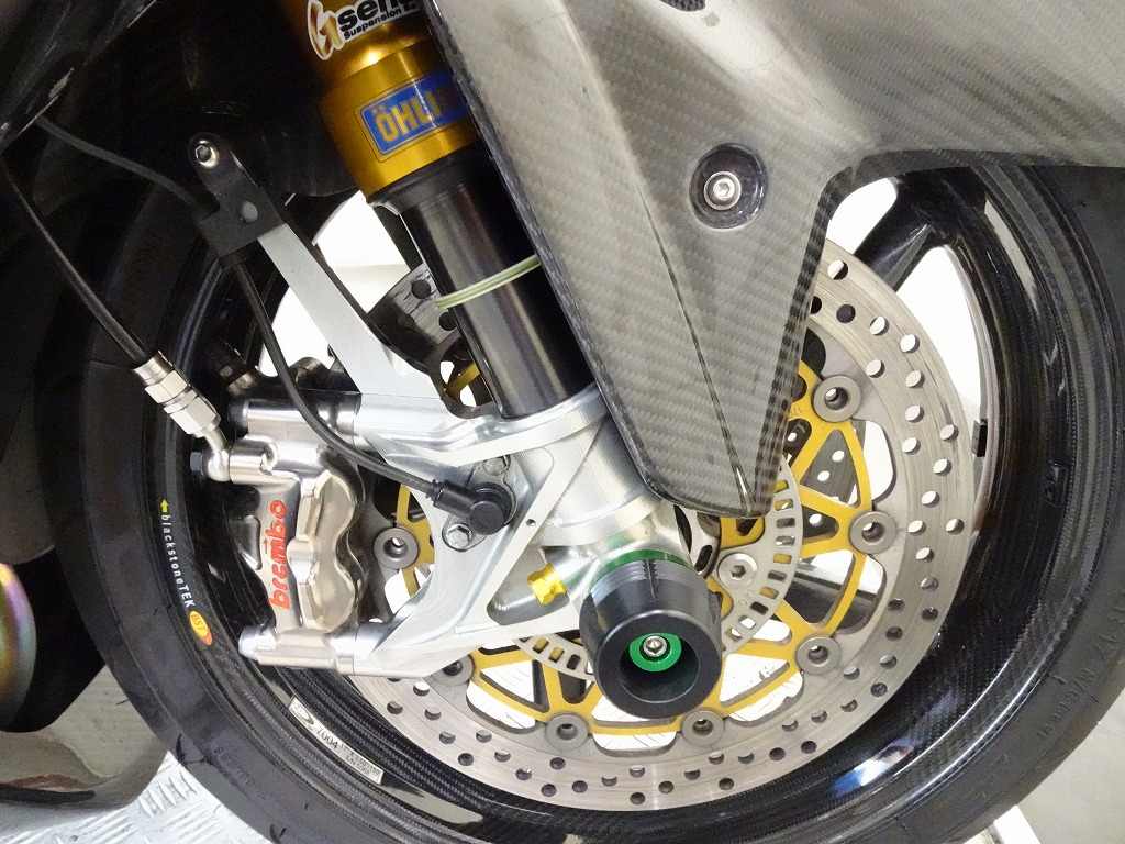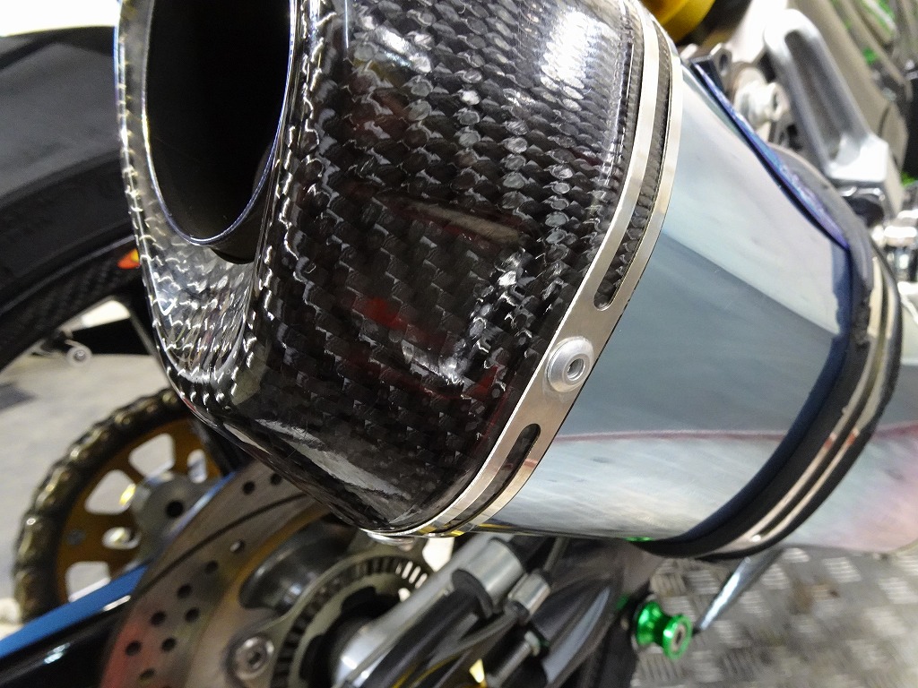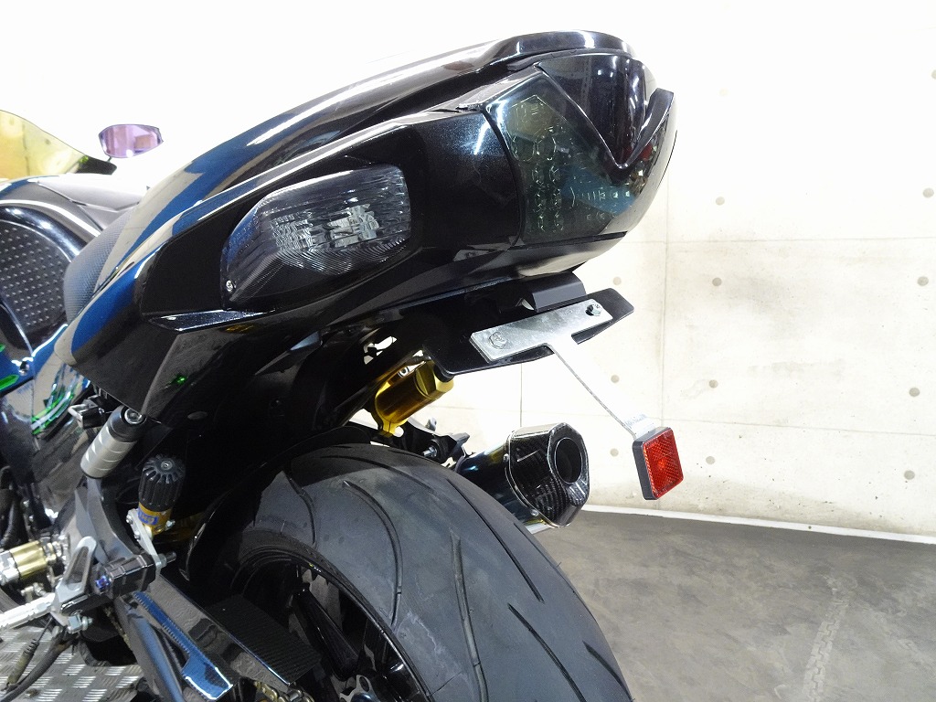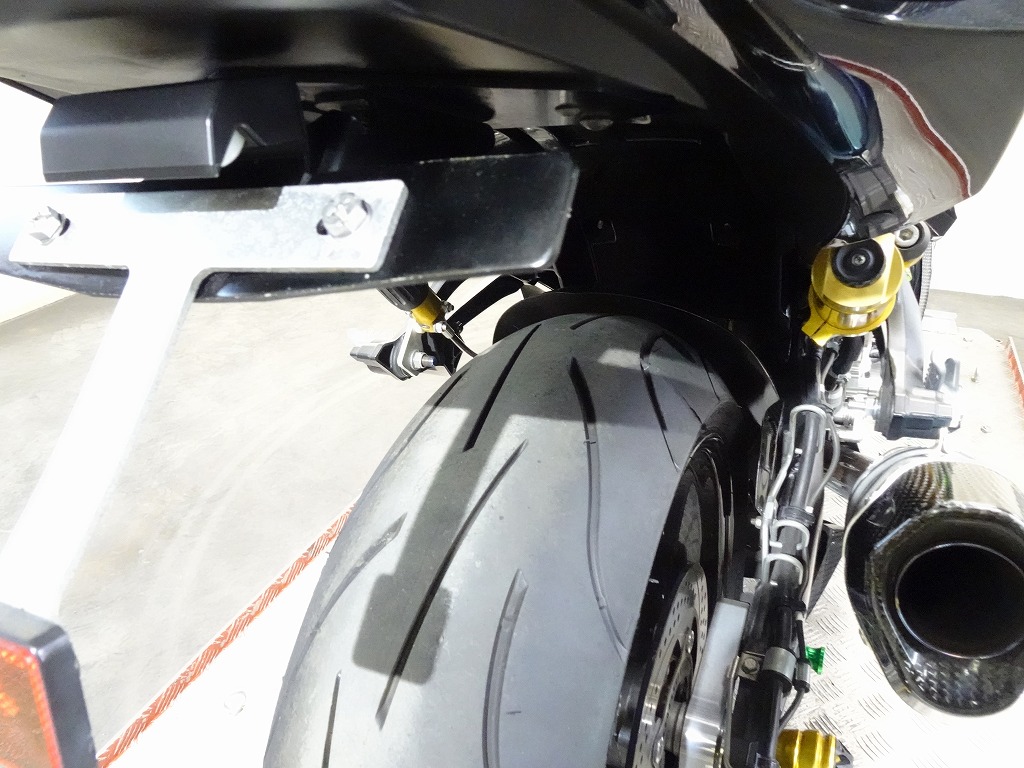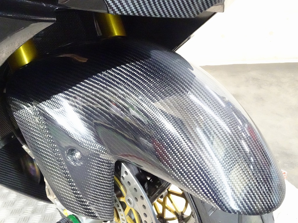 前後オーリンズサス、前後ブレンボキャリパー、フロントブレンボブレーキディスク、リアサンスターブレーキディスク、マーベリックチタンサイレンサー、R’sギアソニックエキパイ、バックステップ、カーボンパーツ(フロントフェンダー、フレームカバー、アンダーカウル、アンダースポイラー、リアインナーフェンダー)カーボン風アッパーカウル、インナーカウル、BST前後カーボンホイール、タンクパッド、前後アクスルスライダー、フレームスライダー、スケルトンクラッチカバー、Kファクトリークラッチレリーズシリンダー、リアフェンダーレス、シングルシートカウル、灯火類LED、イカリング、ETC車載器、他