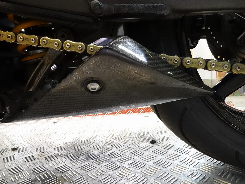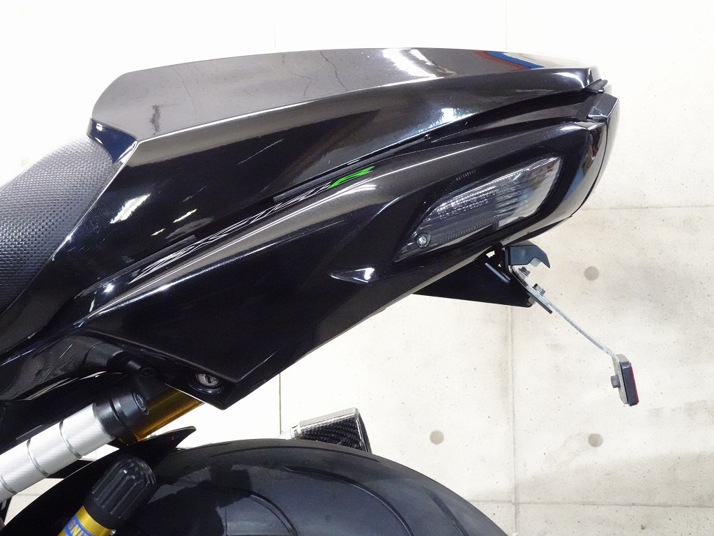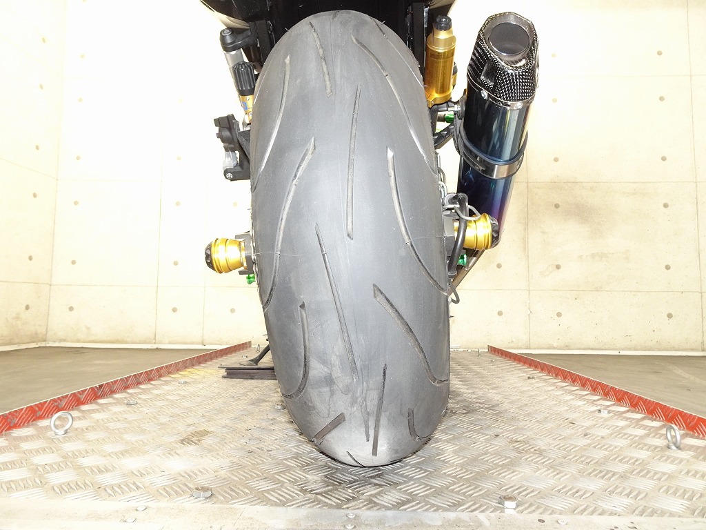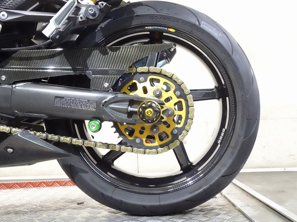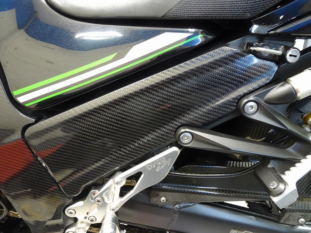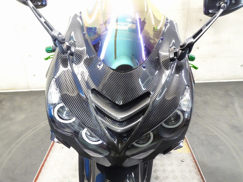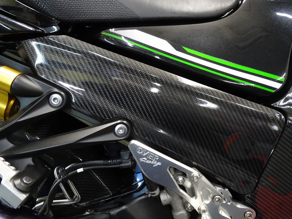 前後オーリンズサス、前後ブレンボキャリパー、フロントブレンボブレーキディスク、リアサンスターブレーキディスク、マーベリックチタンサイレンサー、R’sギアソニックエキパイ、バックステップ、カーボンパーツ(フロントフェンダー、フレームカバー、アンダーカウル、アンダースポイラー、リアインナーフェンダー)カーボン風アッパーカウル、インナーカウル、BST前後カーボンホイール、タンクパッド、前後アクスルスライダー、フレームスライダー、スケルトンクラッチカバー、Kファクトリークラッチレリーズシリンダー、リアフェンダーレス、シングルシートカウル、灯火類LED、イカリング、ETC車載器、他