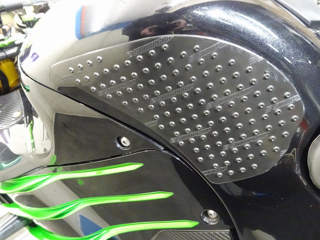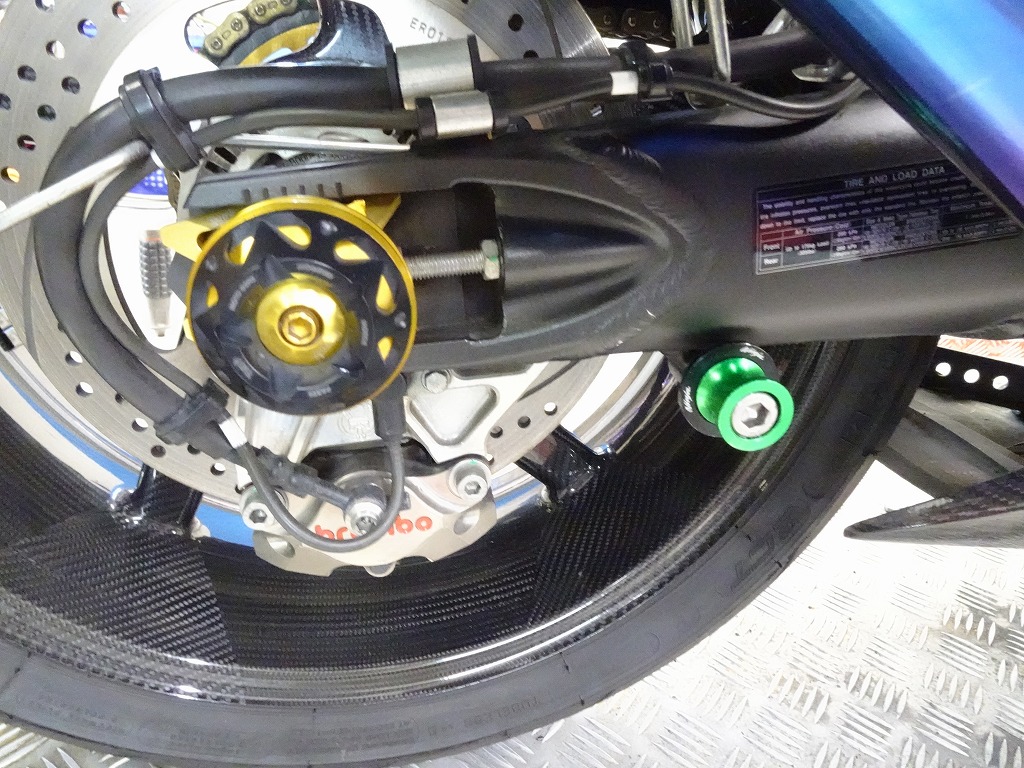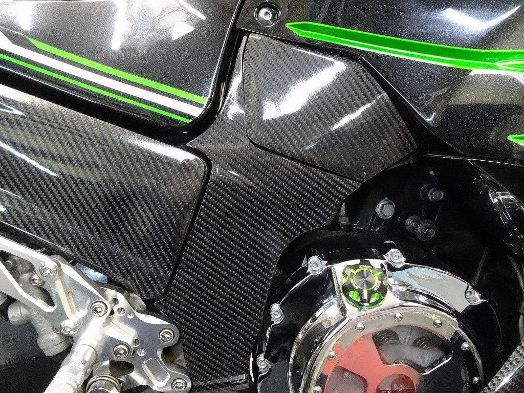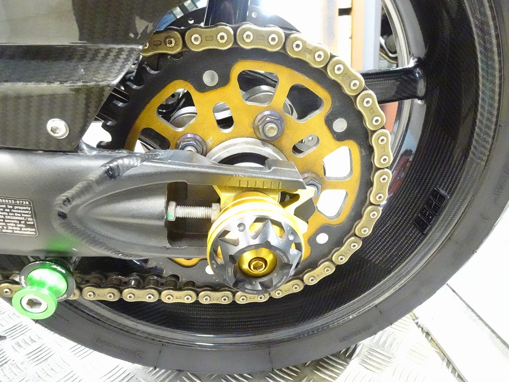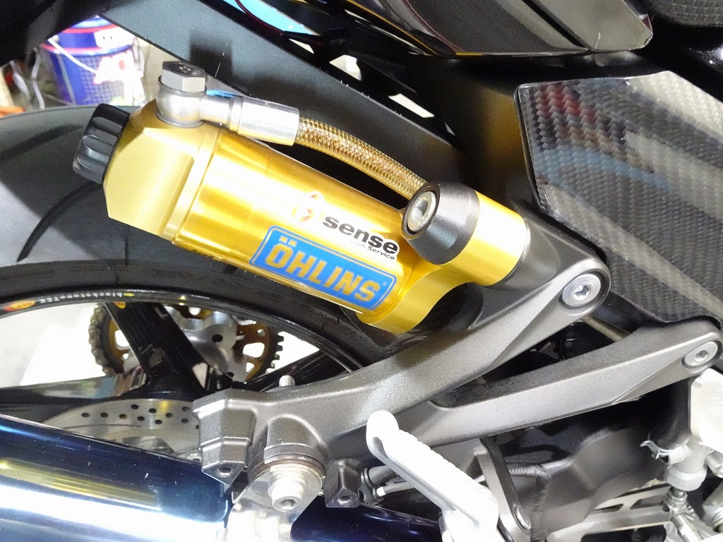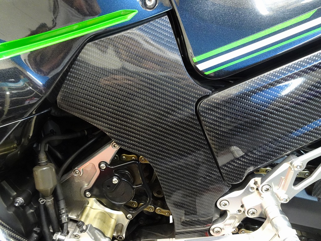 前後オーリンズサス、前後ブレンボキャリパー、フロントブレンボブレーキディスク、リアサンスターブレーキディスク、マーベリックチタンサイレンサー、R’sギアソニックエキパイ、バックステップ、カーボンパーツ(フロントフェンダー、フレームカバー、アンダーカウル、アンダースポイラー、リアインナーフェンダー)カーボン風アッパーカウル、インナーカウル、BST前後カーボンホイール、タンクパッド、前後アクスルスライダー、フレームスライダー、スケルトンクラッチカバー、Kファクトリークラッチレリーズシリンダー、リアフェンダーレス、シングルシートカウル、灯火類LED、イカリング、ETC車載器、他