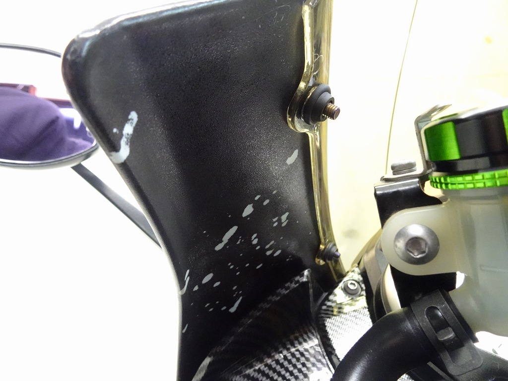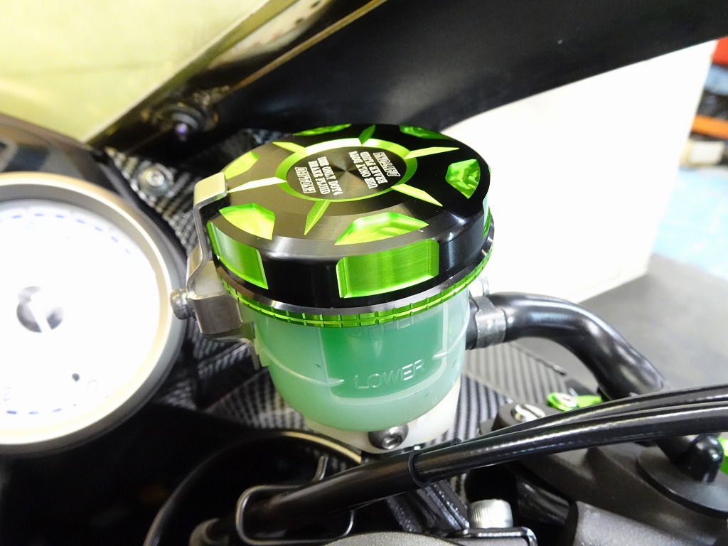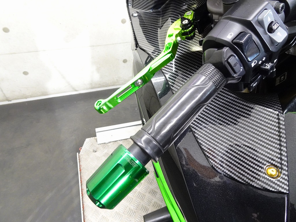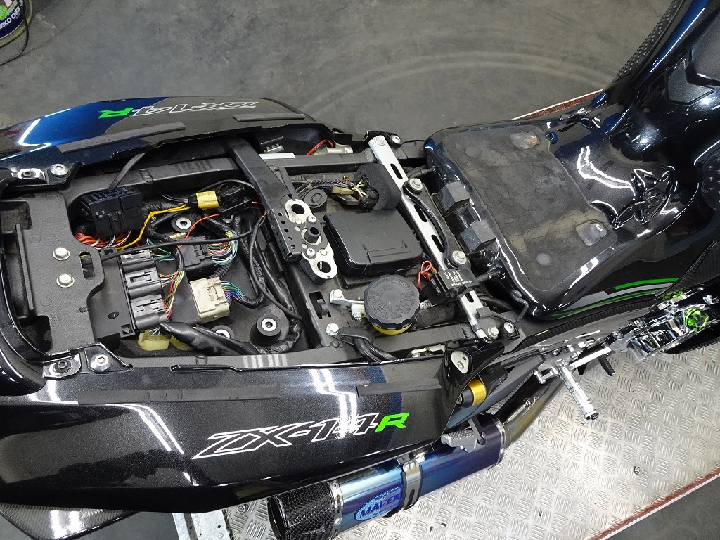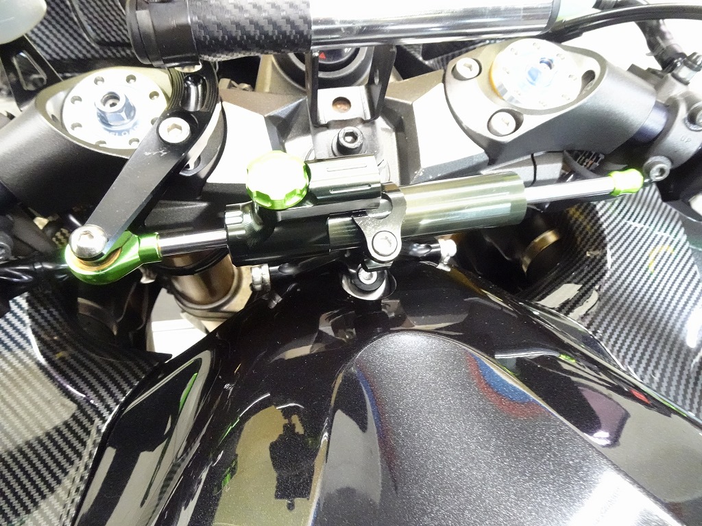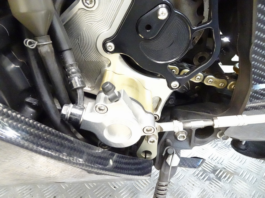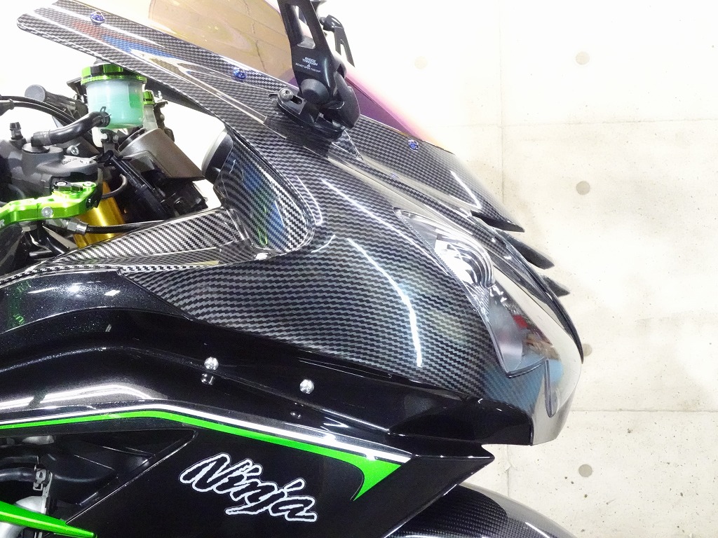 前後オーリンズサス、前後ブレンボキャリパー、フロントブレンボブレーキディスク、リアサンスターブレーキディスク、マーベリックチタンサイレンサー、R’sギアソニックエキパイ、バックステップ、カーボンパーツ(フロントフェンダー、フレームカバー、アンダーカウル、アンダースポイラー、リアインナーフェンダー)カーボン風アッパーカウル、インナーカウル、BST前後カーボンホイール、タンクパッド、前後アクスルスライダー、フレームスライダー、スケルトンクラッチカバー、Kファクトリークラッチレリーズシリンダー、リアフェンダーレス、シングルシートカウル、灯火類LED、イカリング、ETC車載器、他