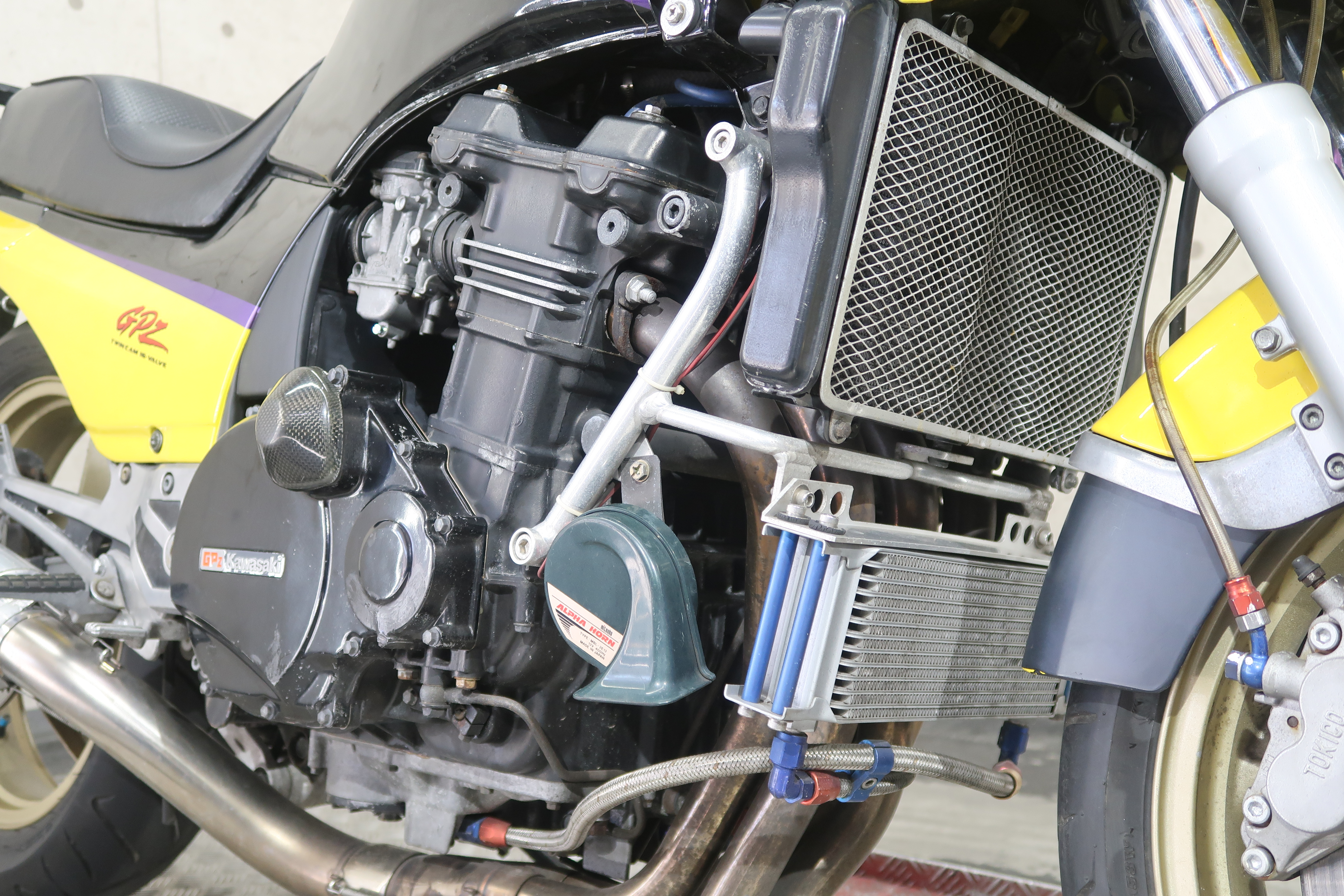 オイルクーラー、フェンダーレス、メッシュホース、トップブリッジ、社外セパハン、