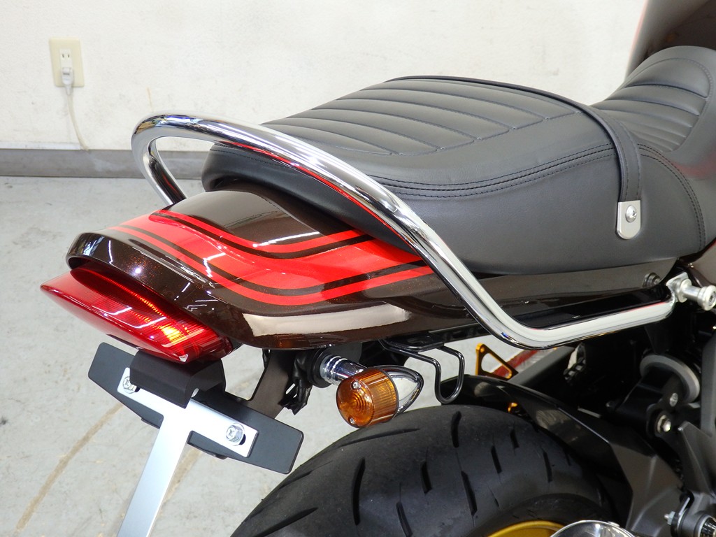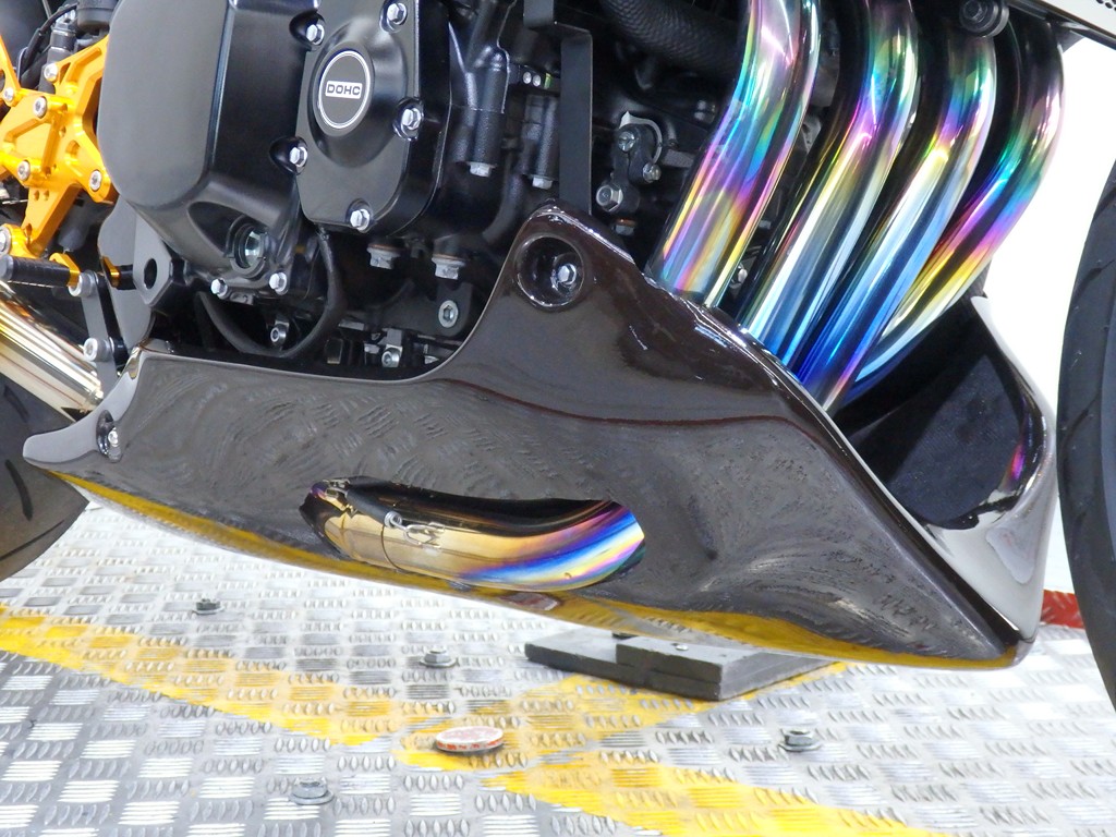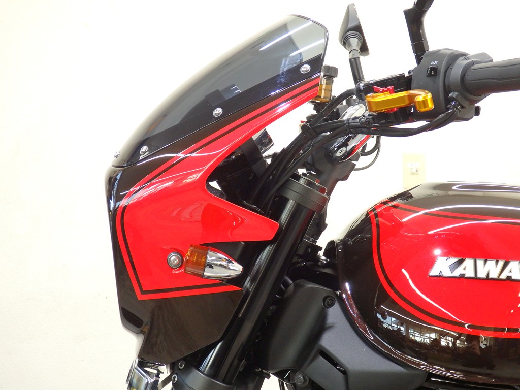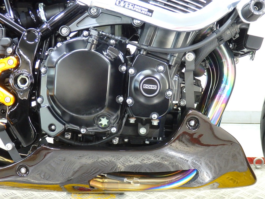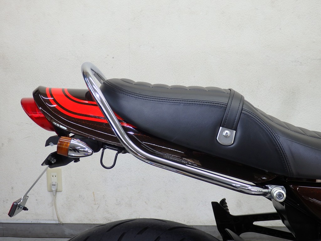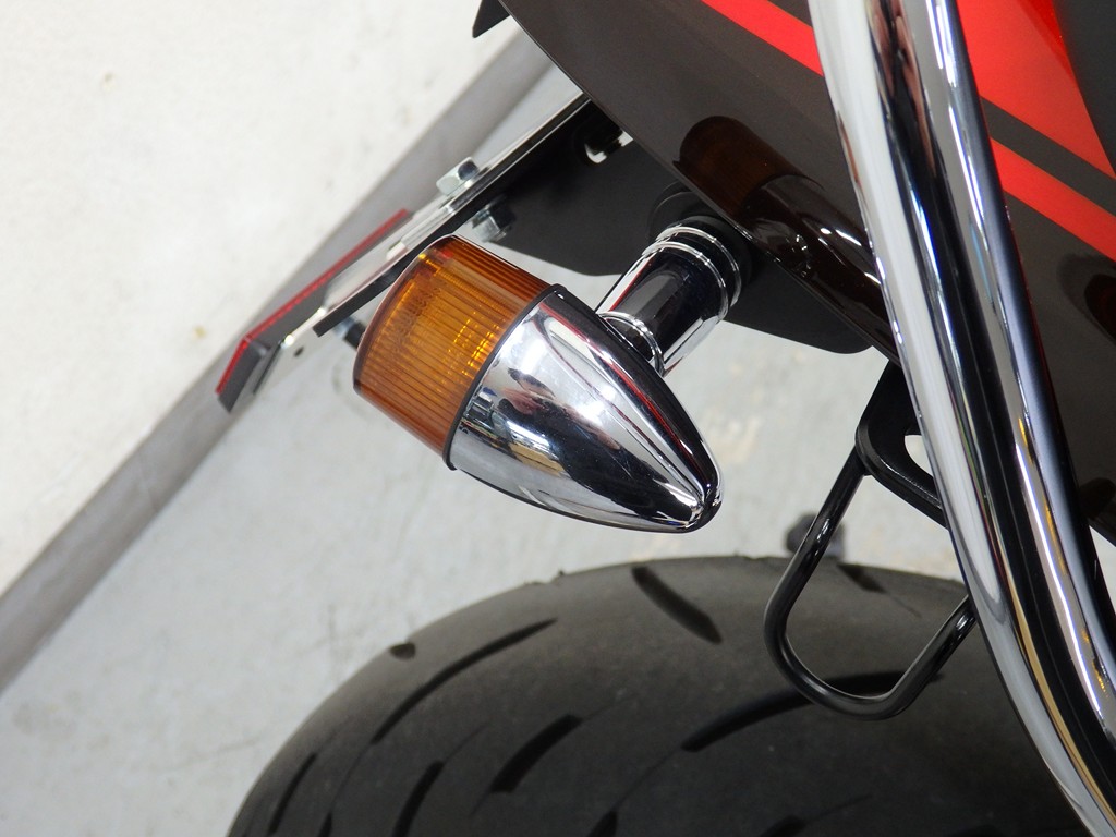 【カスタム】アールズギア製ワイバンクラシックR・UPタイプフルエキゾースト(定価272,800円:JMCA1018089106)、オーバーレーシング製【エンジンスライダー(定価23,100円)、サブフレームキット(定価51,700円)】、ベビーフェイス製バックステップ(定価60,000円)、シックデザイン製マスカロードビキニカウル、アクティブ製フェンダーレス、KAWASAKIフロントエンブレム、純正オプションラジエーターガード、バーエンド、レバー、ミラー、ウインカー、グラブバー、アンダーカウル