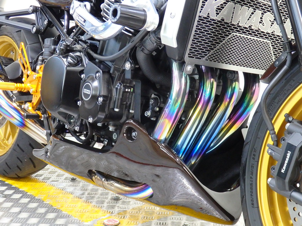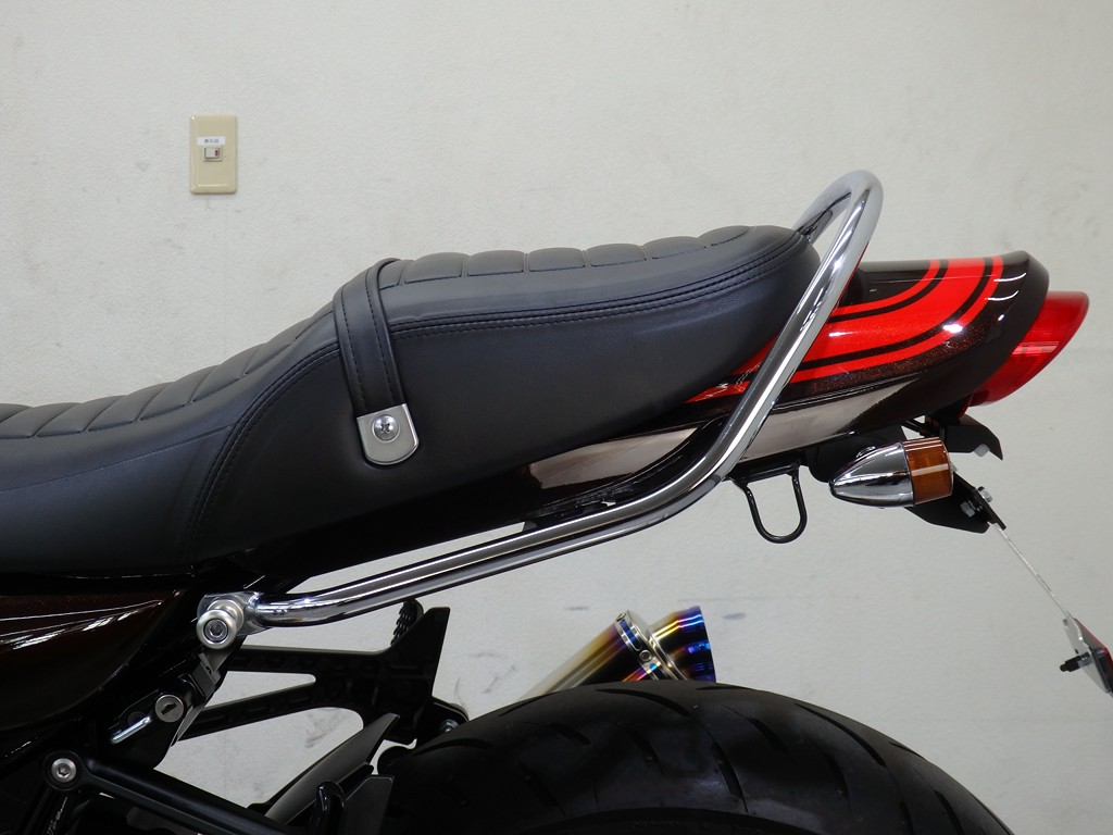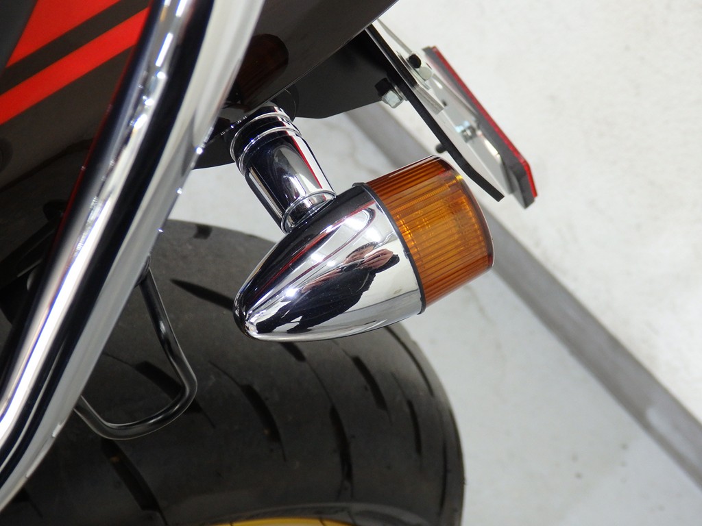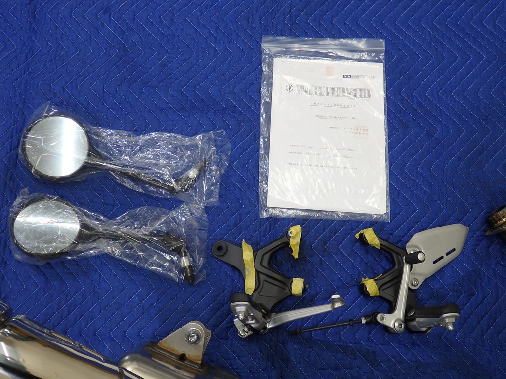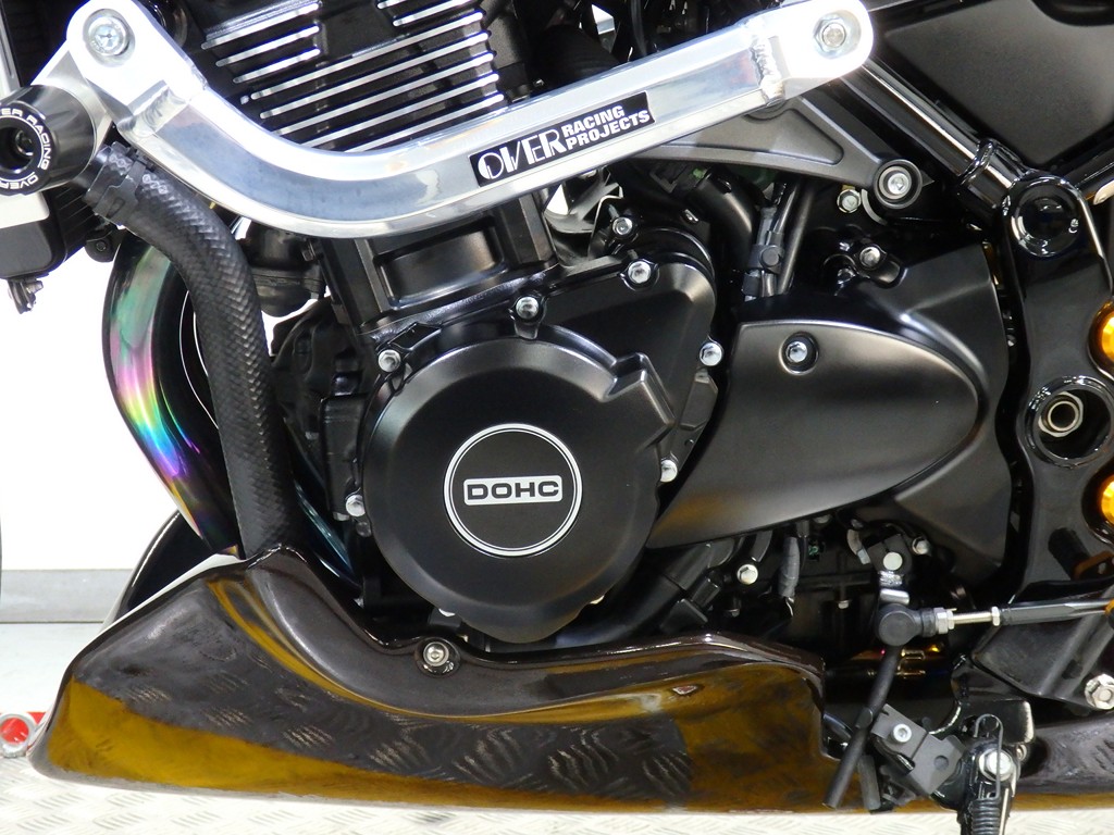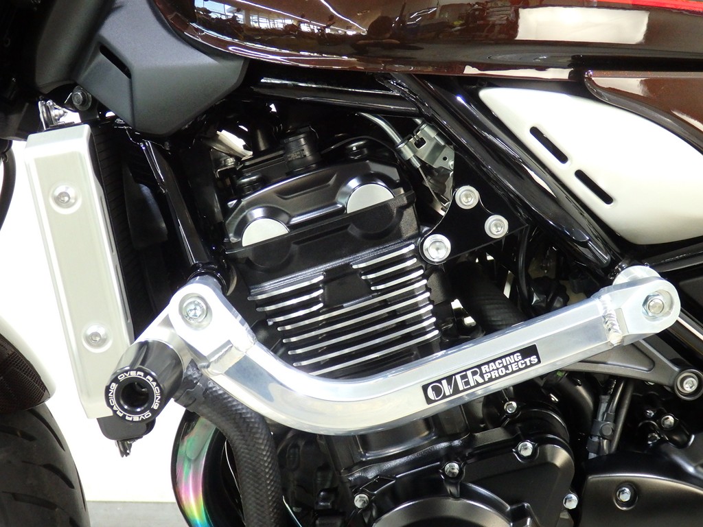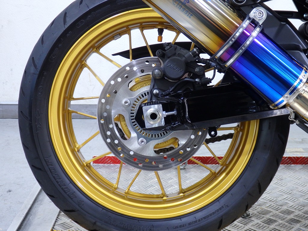 【カスタム】アールズギア製ワイバンクラシックR・UPタイプフルエキゾースト(定価272,800円:JMCA1018089106)、オーバーレーシング製【エンジンスライダー(定価23,100円)、サブフレームキット(定価51,700円)】、ベビーフェイス製バックステップ(定価60,000円)、シックデザイン製マスカロードビキニカウル、アクティブ製フェンダーレス、KAWASAKIフロントエンブレム、純正オプションラジエーターガード、バーエンド、レバー、ミラー、ウインカー、グラブバー、アンダーカウル