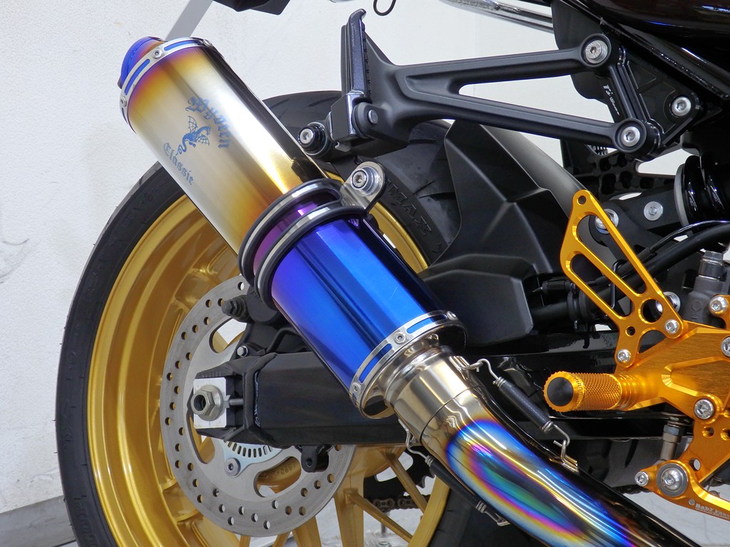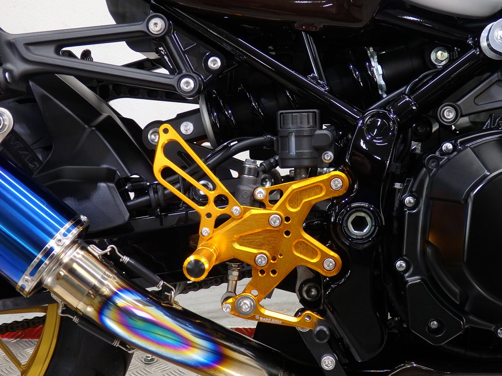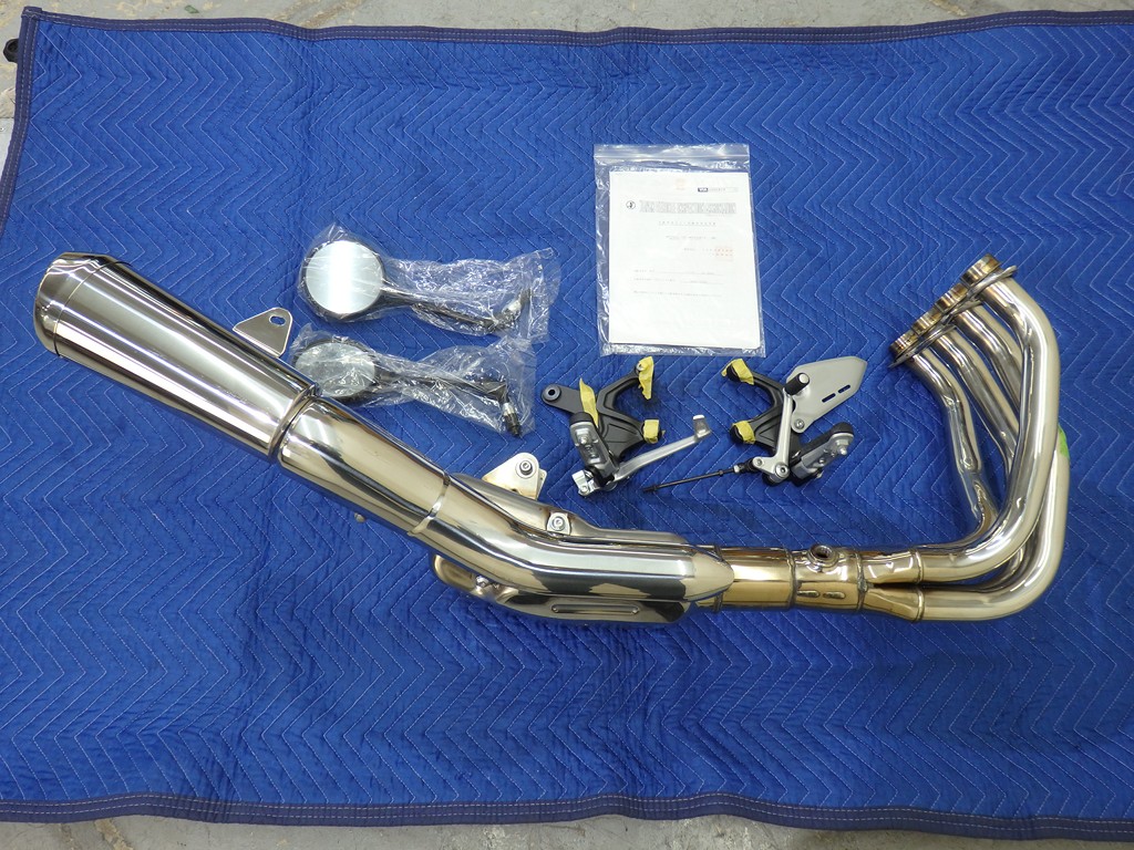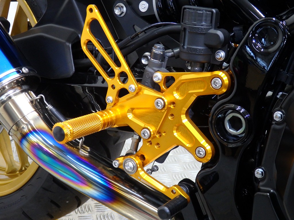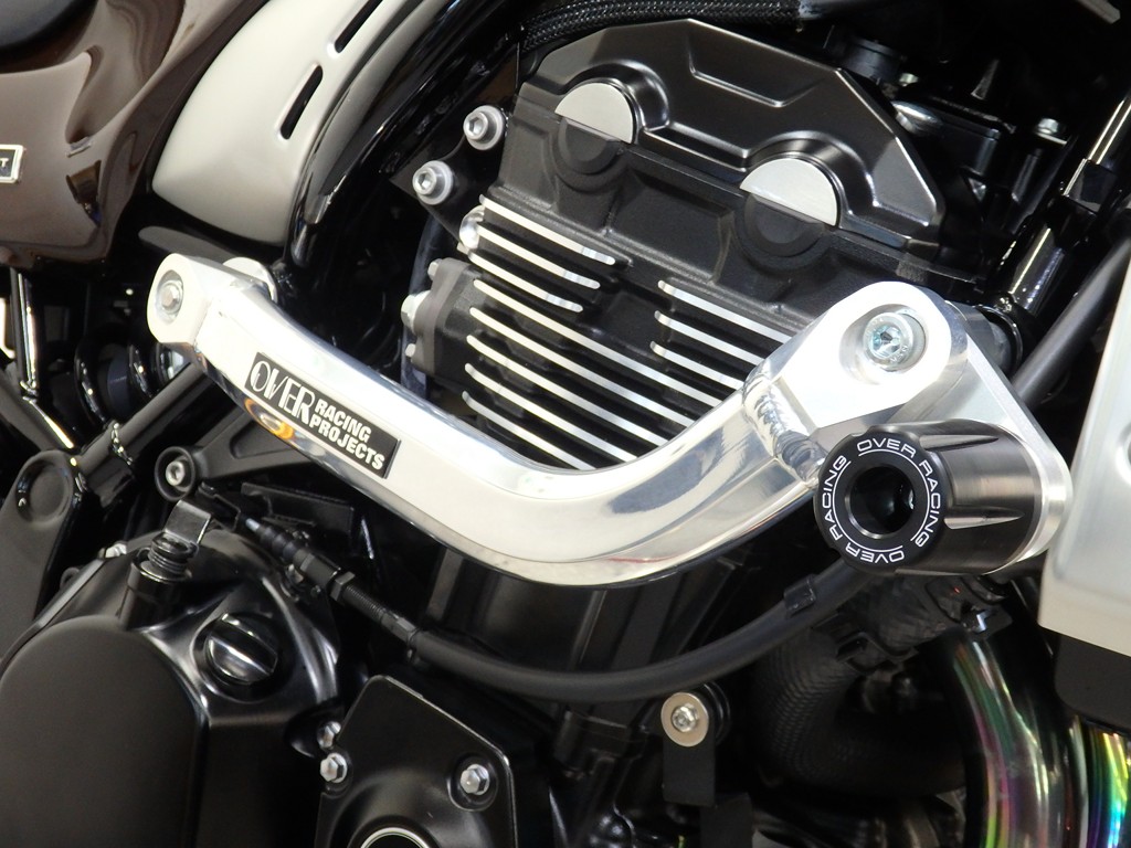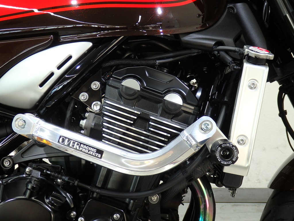 【カスタム】アールズギア製ワイバンクラシックR・UPタイプフルエキゾースト(定価272,800円:JMCA1018089106)、オーバーレーシング製【エンジンスライダー(定価23,100円)、サブフレームキット(定価51,700円)】、ベビーフェイス製バックステップ(定価60,000円)、シックデザイン製マスカロードビキニカウル、アクティブ製フェンダーレス、KAWASAKIフロントエンブレム、純正オプションラジエーターガード、バーエンド、レバー、ミラー、ウインカー、グラブバー、アンダーカウル