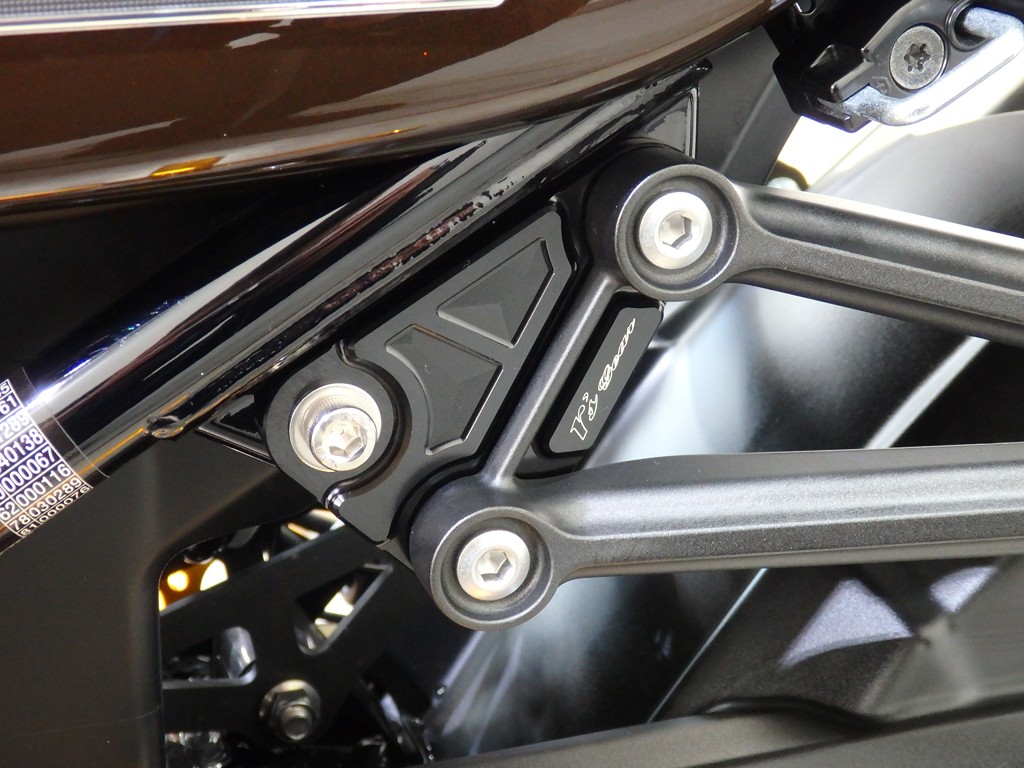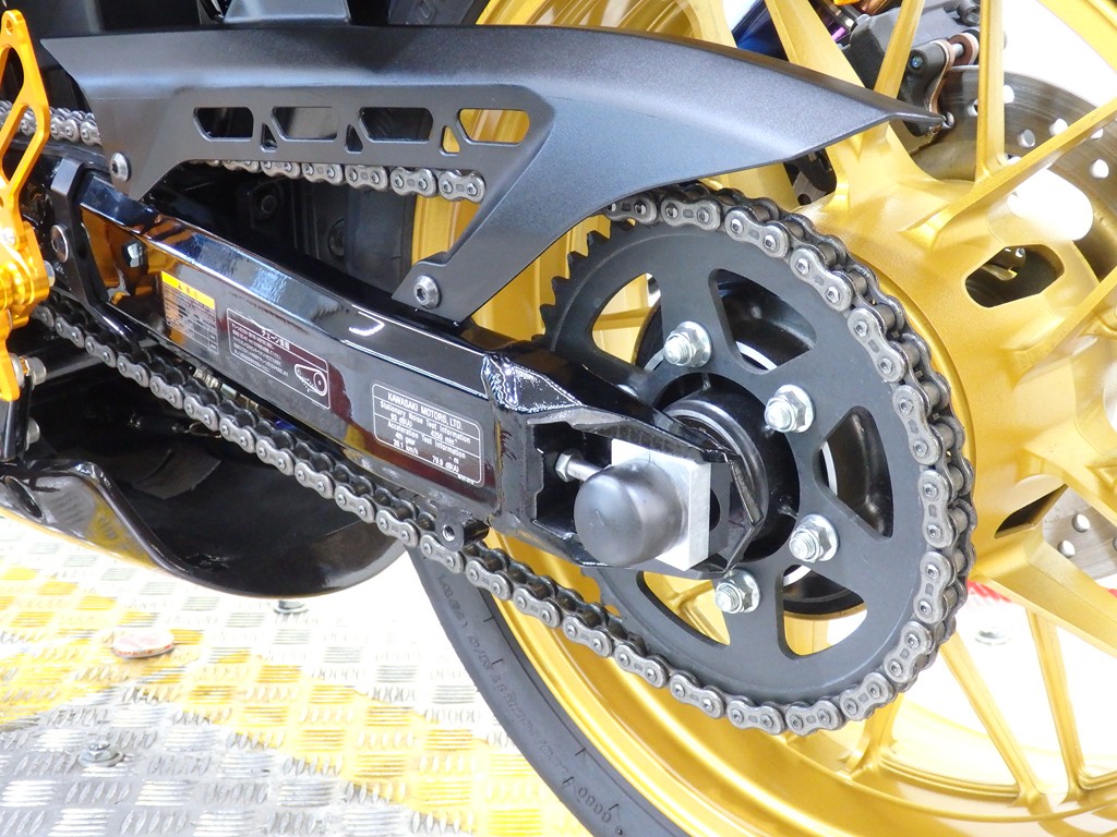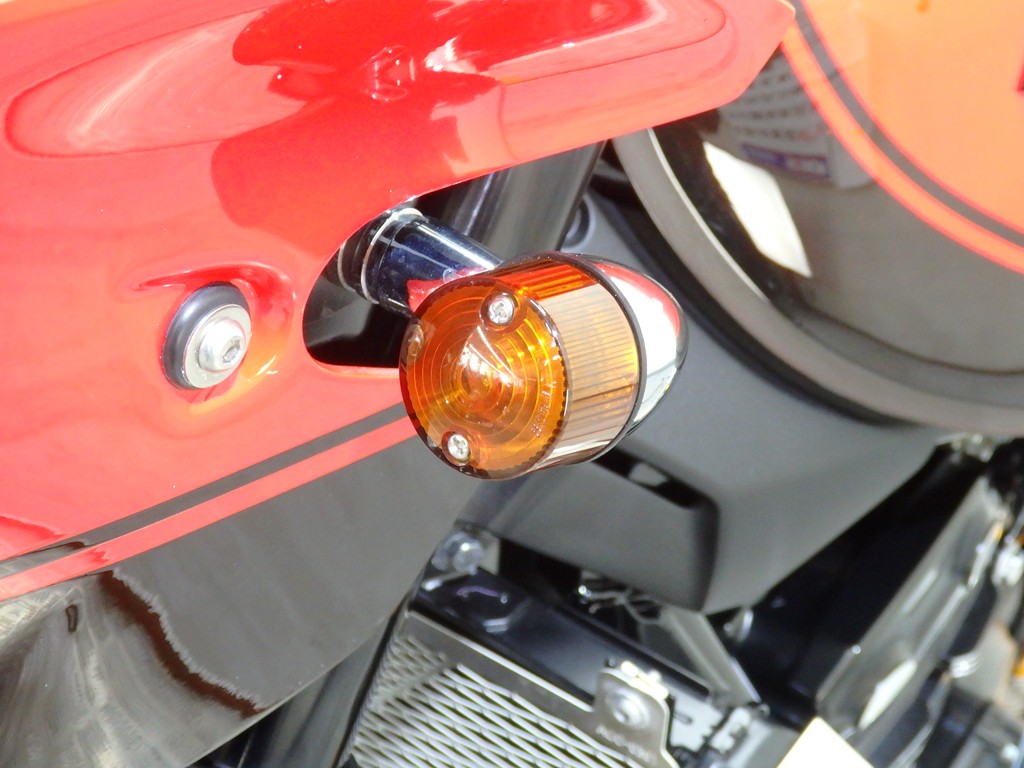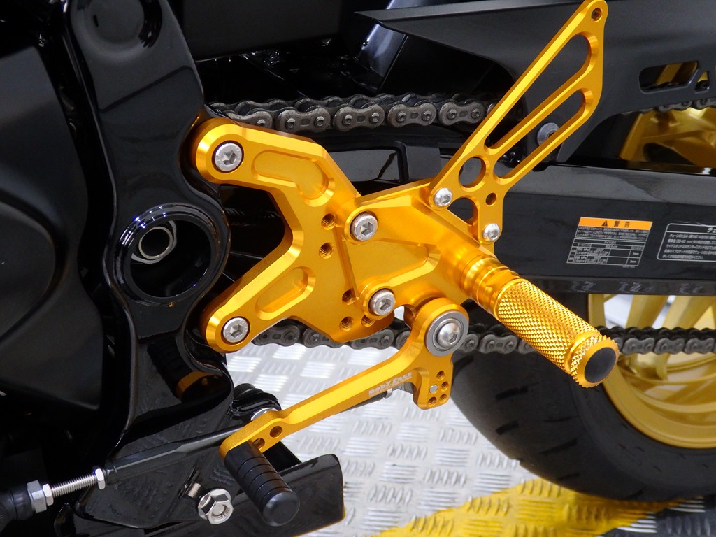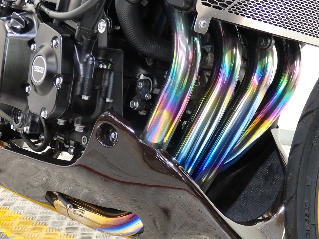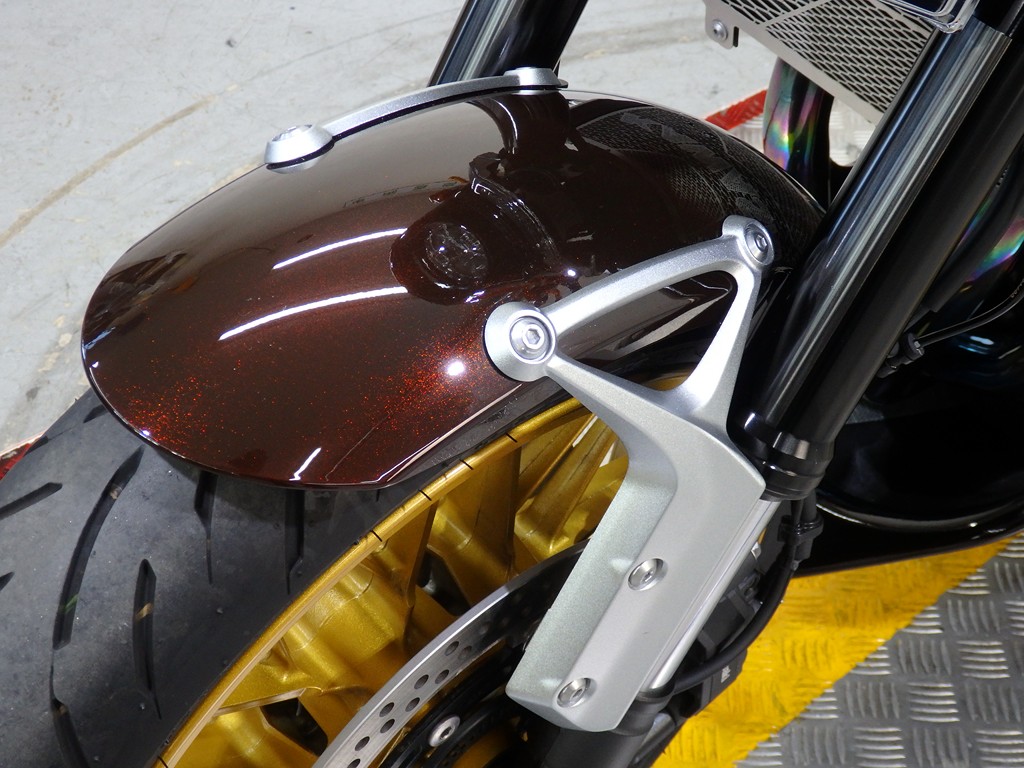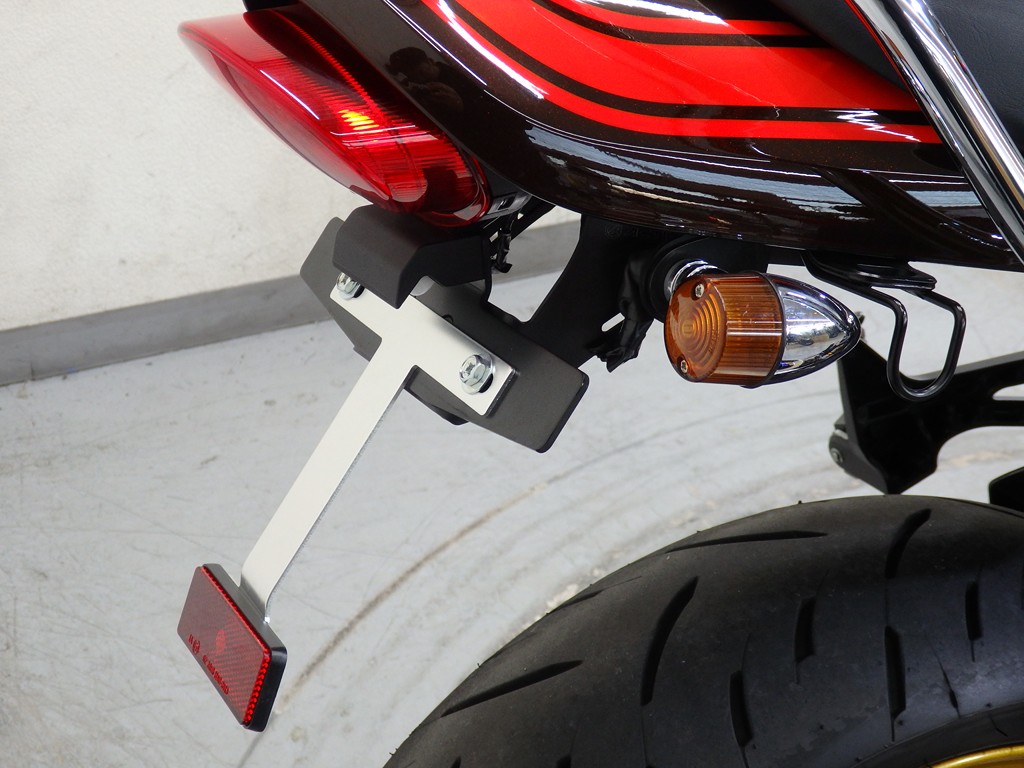 【カスタム】アールズギア製ワイバンクラシックR・UPタイプフルエキゾースト(定価272,800円:JMCA1018089106)、オーバーレーシング製【エンジンスライダー(定価23,100円)、サブフレームキット(定価51,700円)】、ベビーフェイス製バックステップ(定価60,000円)、シックデザイン製マスカロードビキニカウル、アクティブ製フェンダーレス、KAWASAKIフロントエンブレム、純正オプションラジエーターガード、バーエンド、レバー、ミラー、ウインカー、グラブバー、アンダーカウル