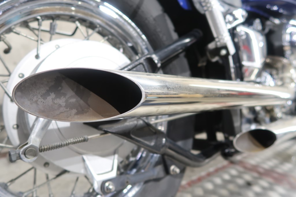 デイトナスラッシュカットマフラー(JMCA:2111002017、121,000円)サドルバッグサポート、カスタムシート、グリップ、ミラー、ステップ、ペダル、ドライブシャフトカバー、バッグレスト、クリアレンズウインカー、USBポート、エンジンガード、ホーン