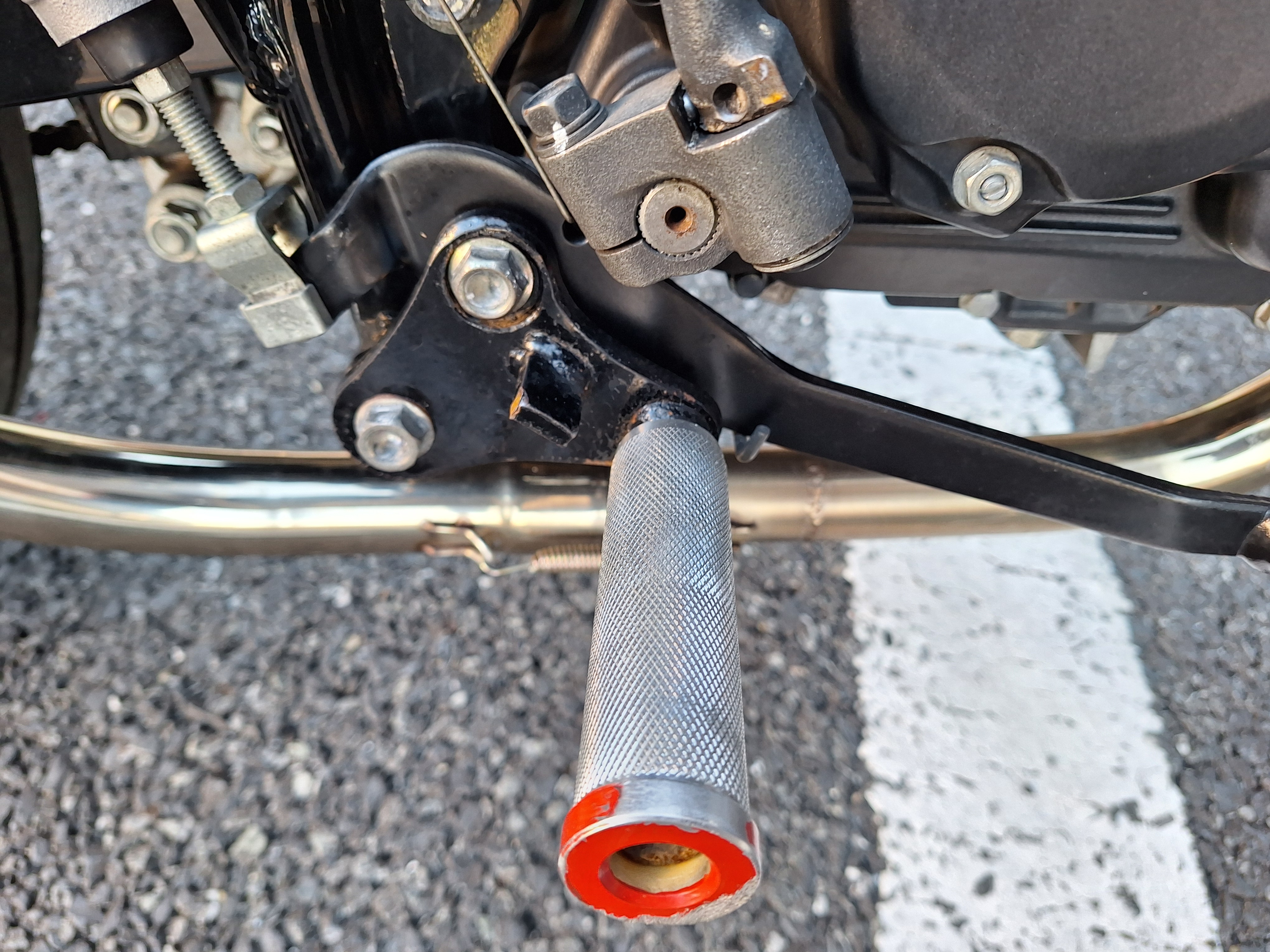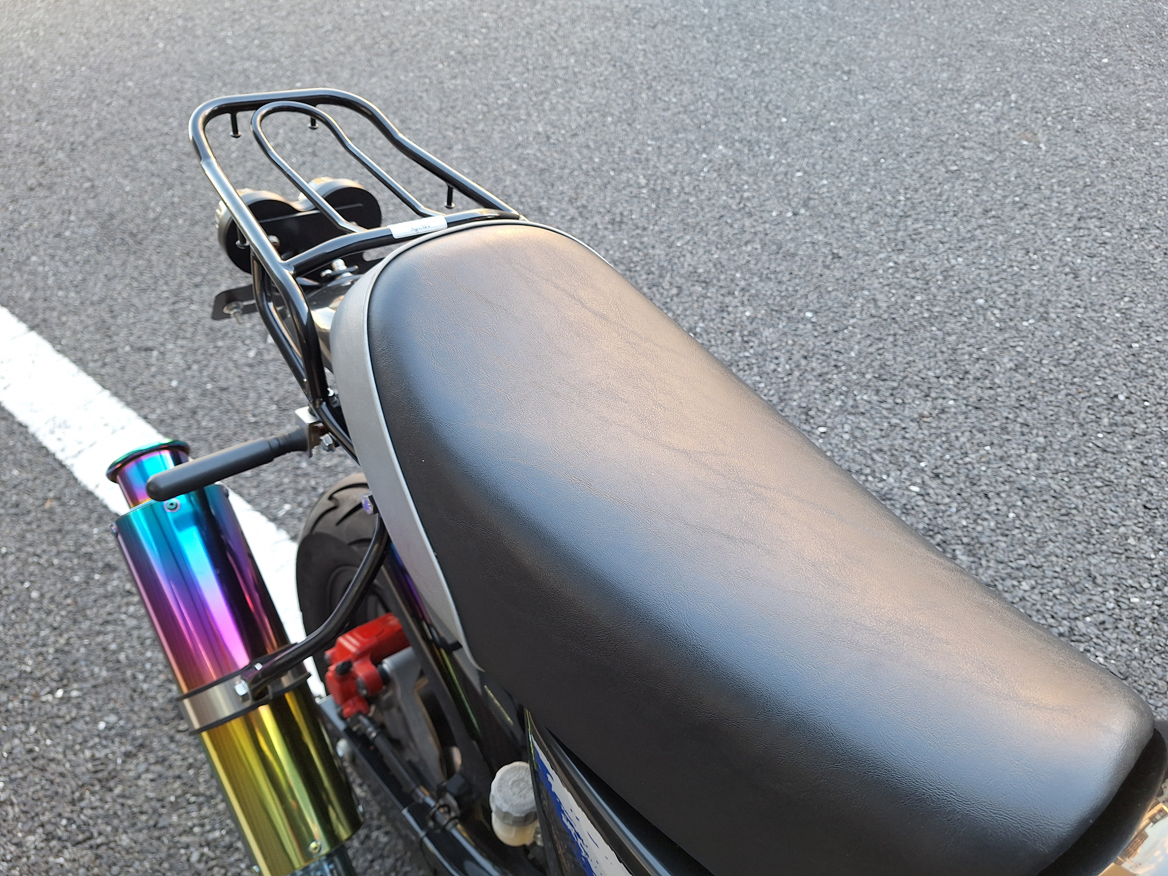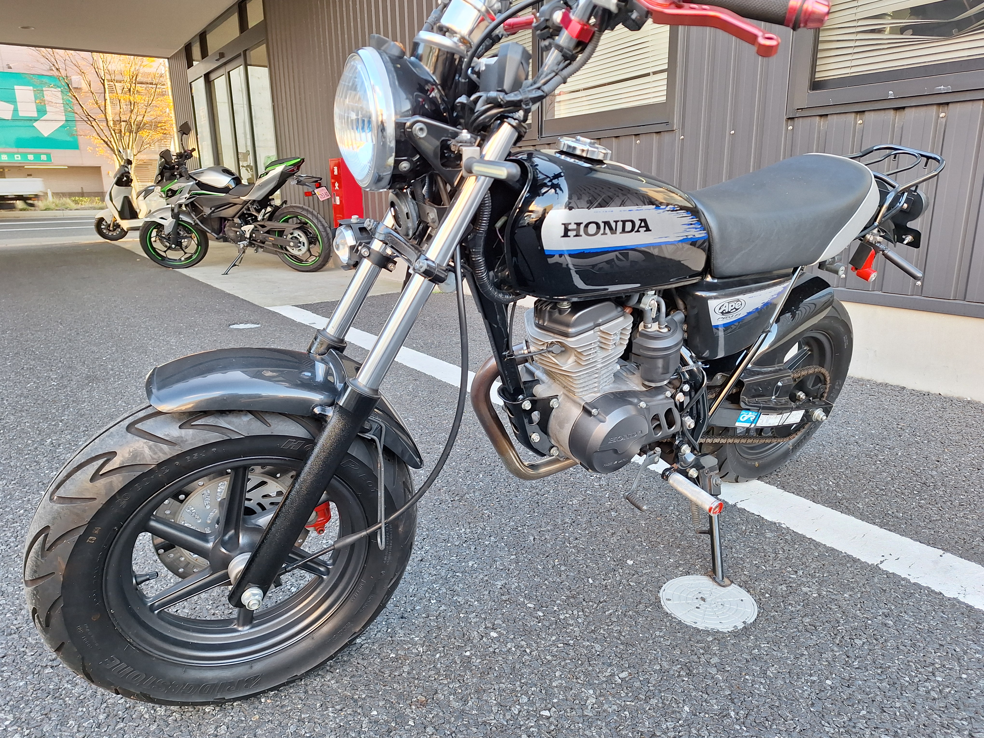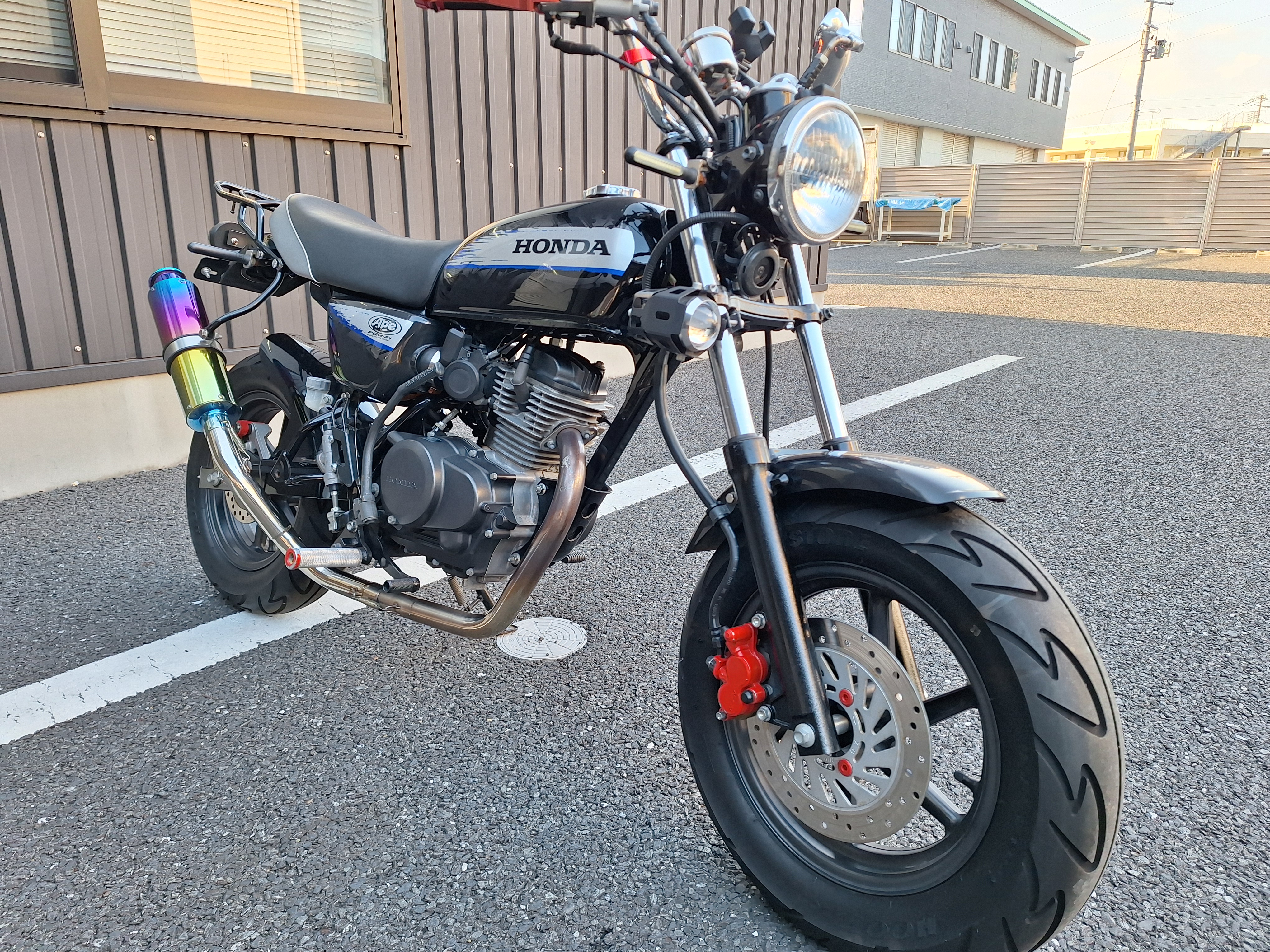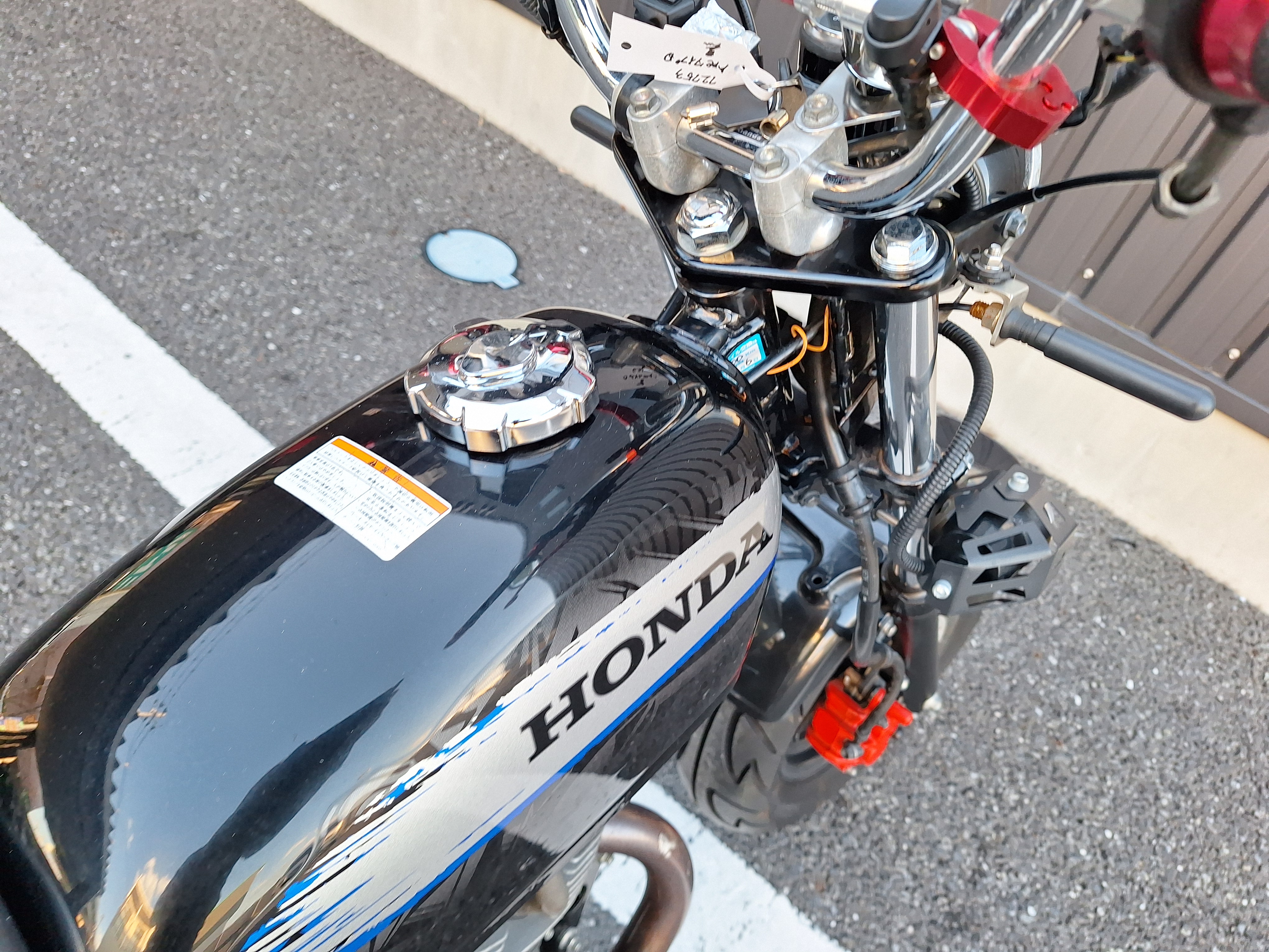 取付パーツ・社外チタンカラーマフラー、LEDウインカーセット、リヤフェンダーレスキット&テールライト、フロントダウンフェンダー、リヤインナーフェンダー、アルミステップバー、リヤキャリア、社外アジャストレバー、フォグランプ付