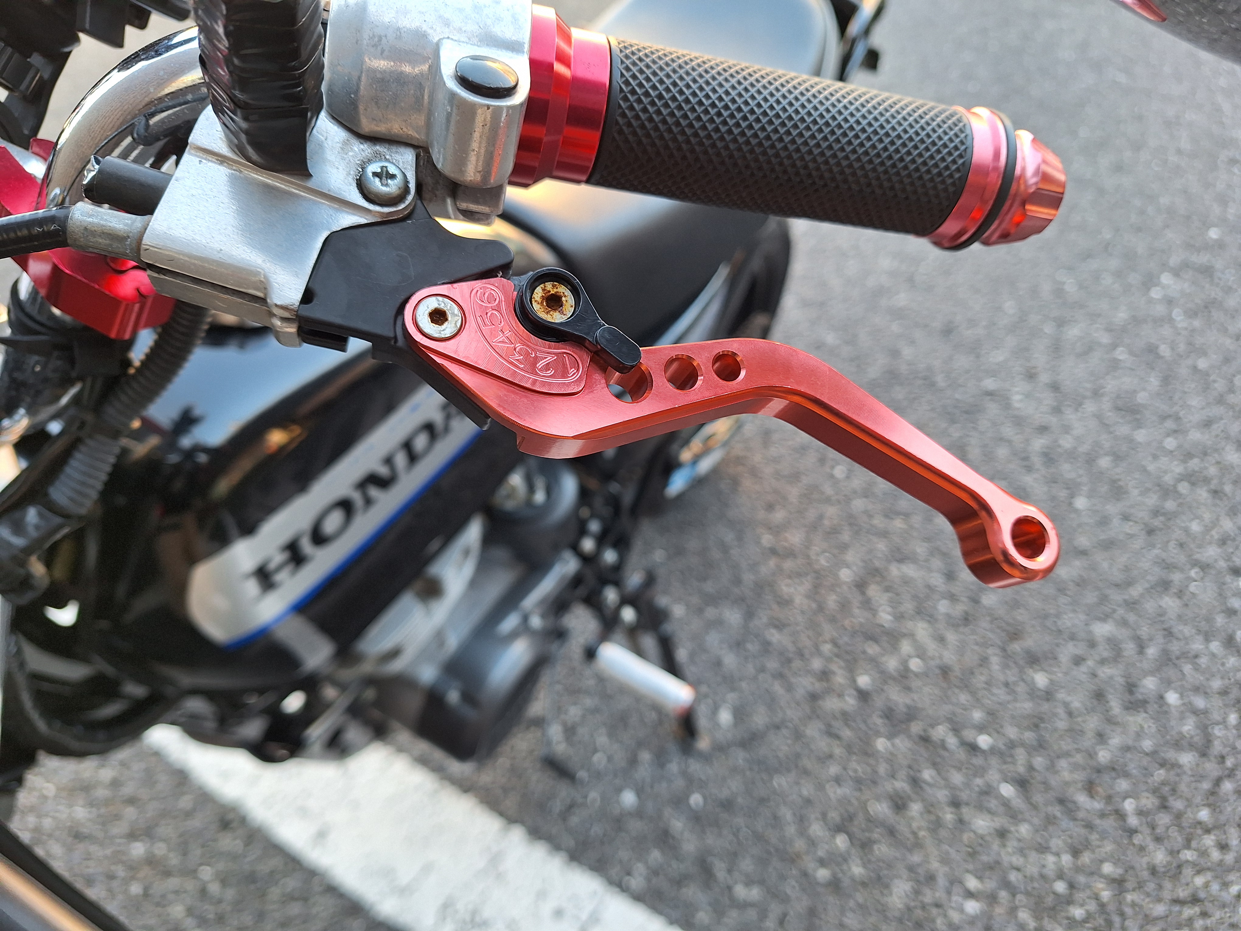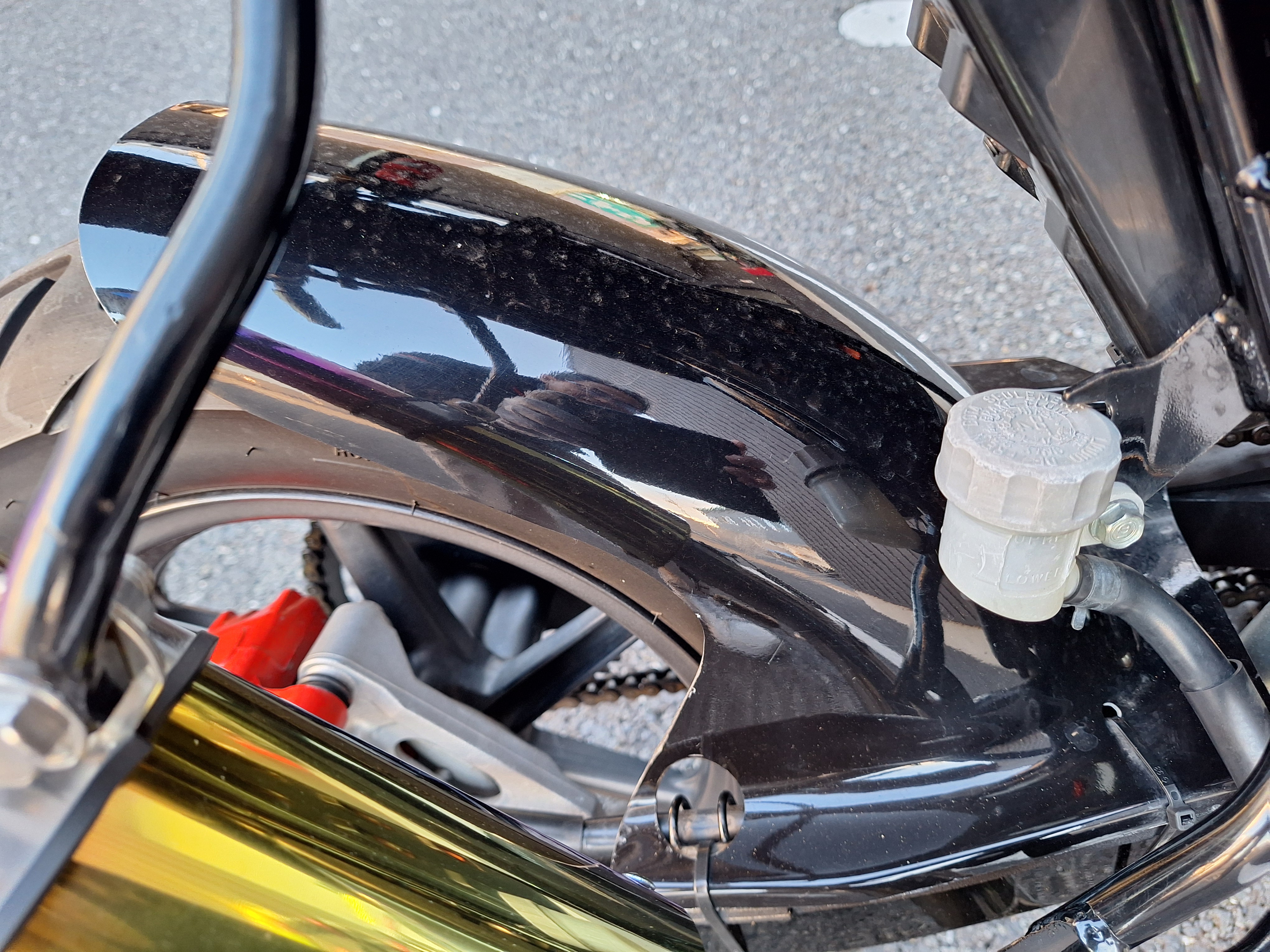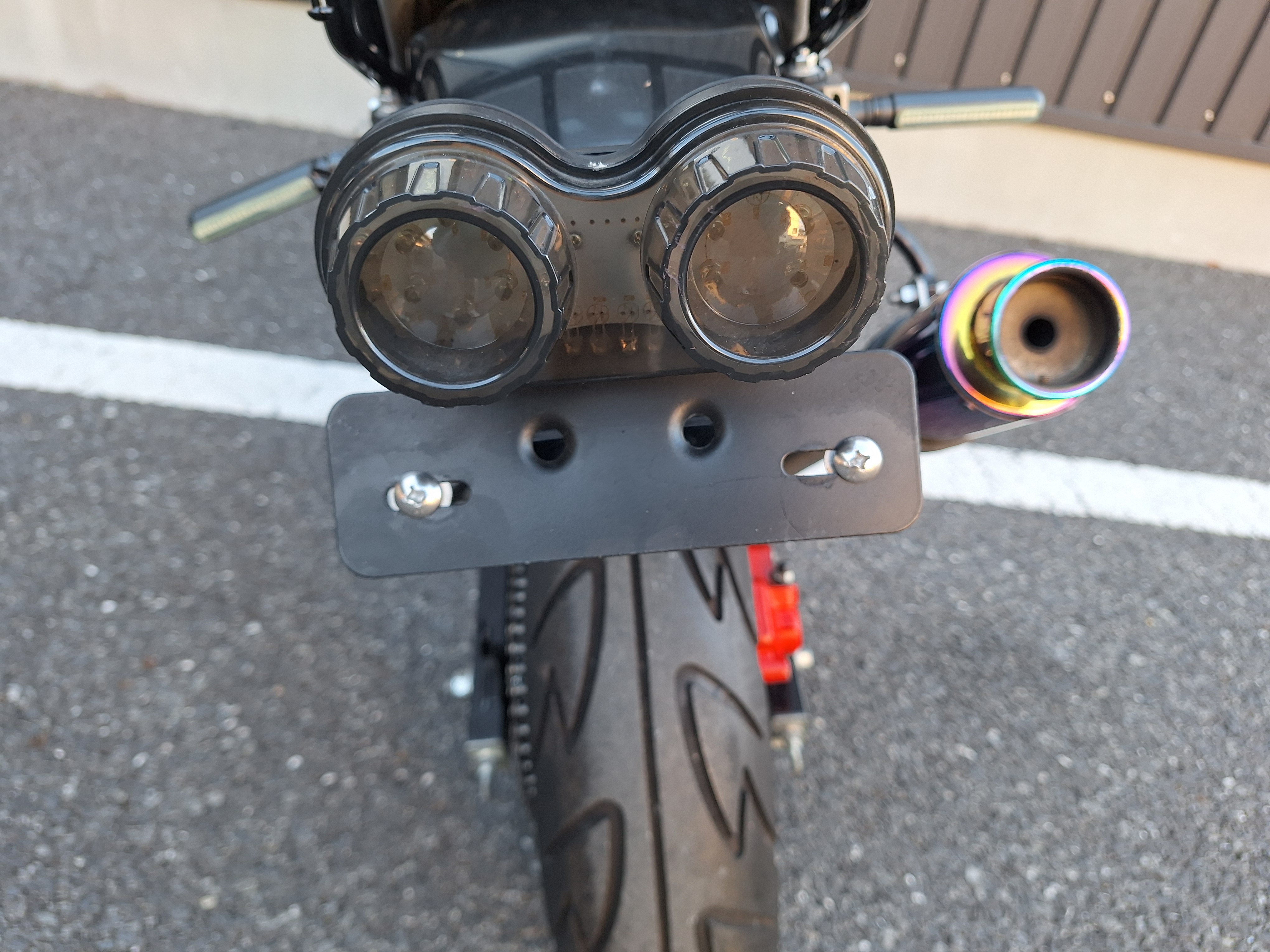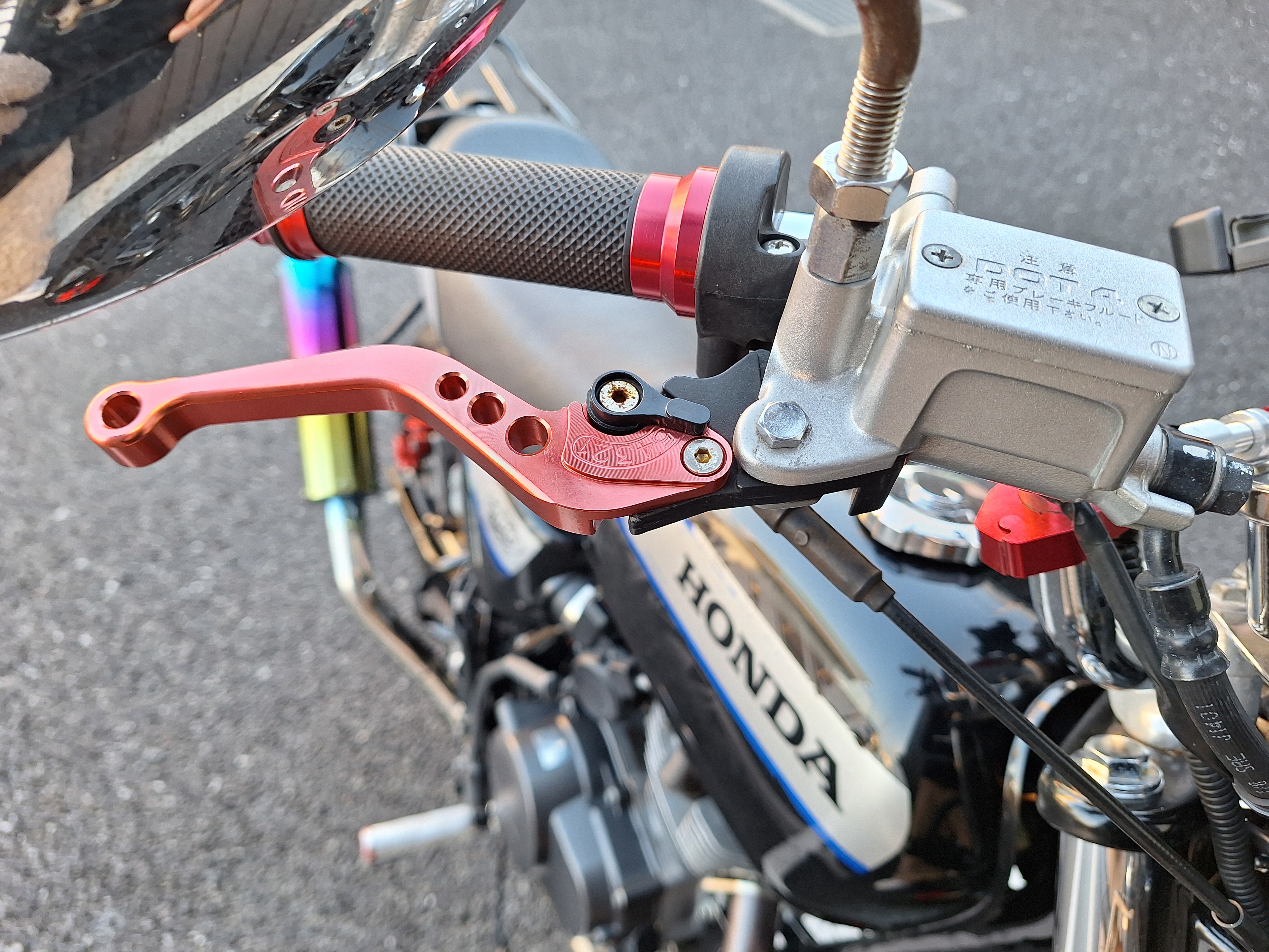 取付パーツ・社外チタンカラーマフラー、LEDウインカーセット、リヤフェンダーレスキット&テールライト、フロントダウンフェンダー、リヤインナーフェンダー、アルミステップバー、リヤキャリア、社外アジャストレバー、フォグランプ付