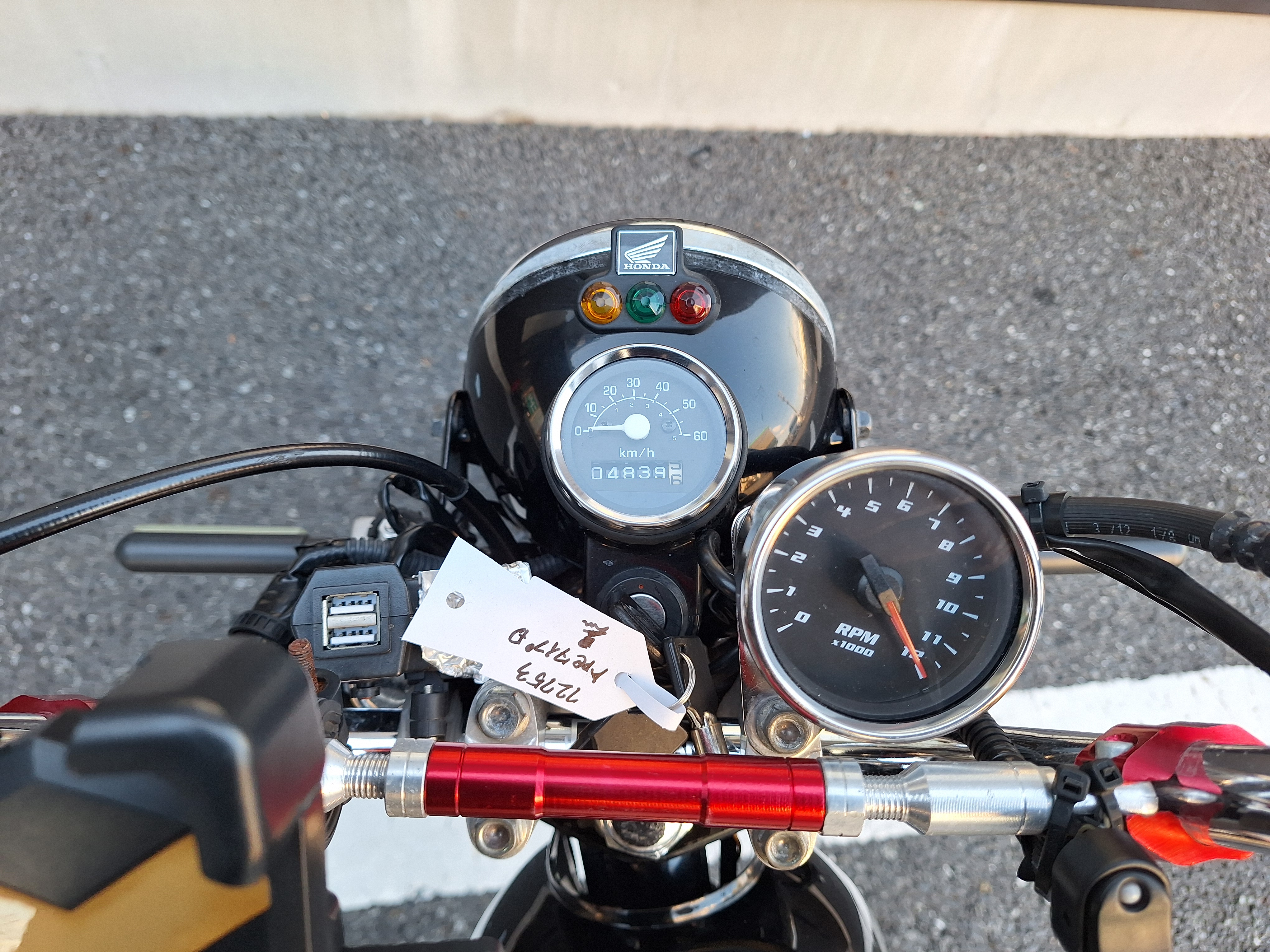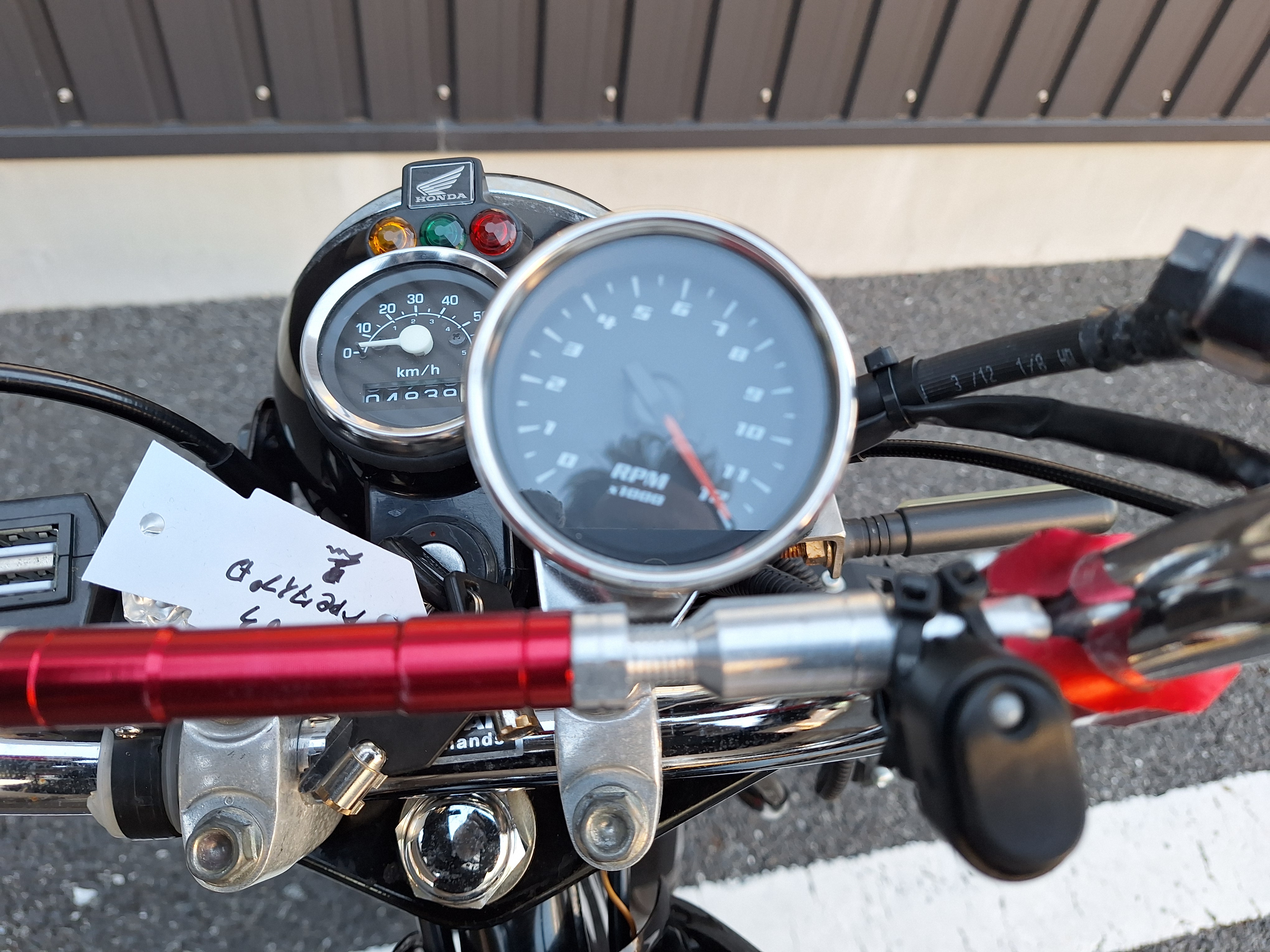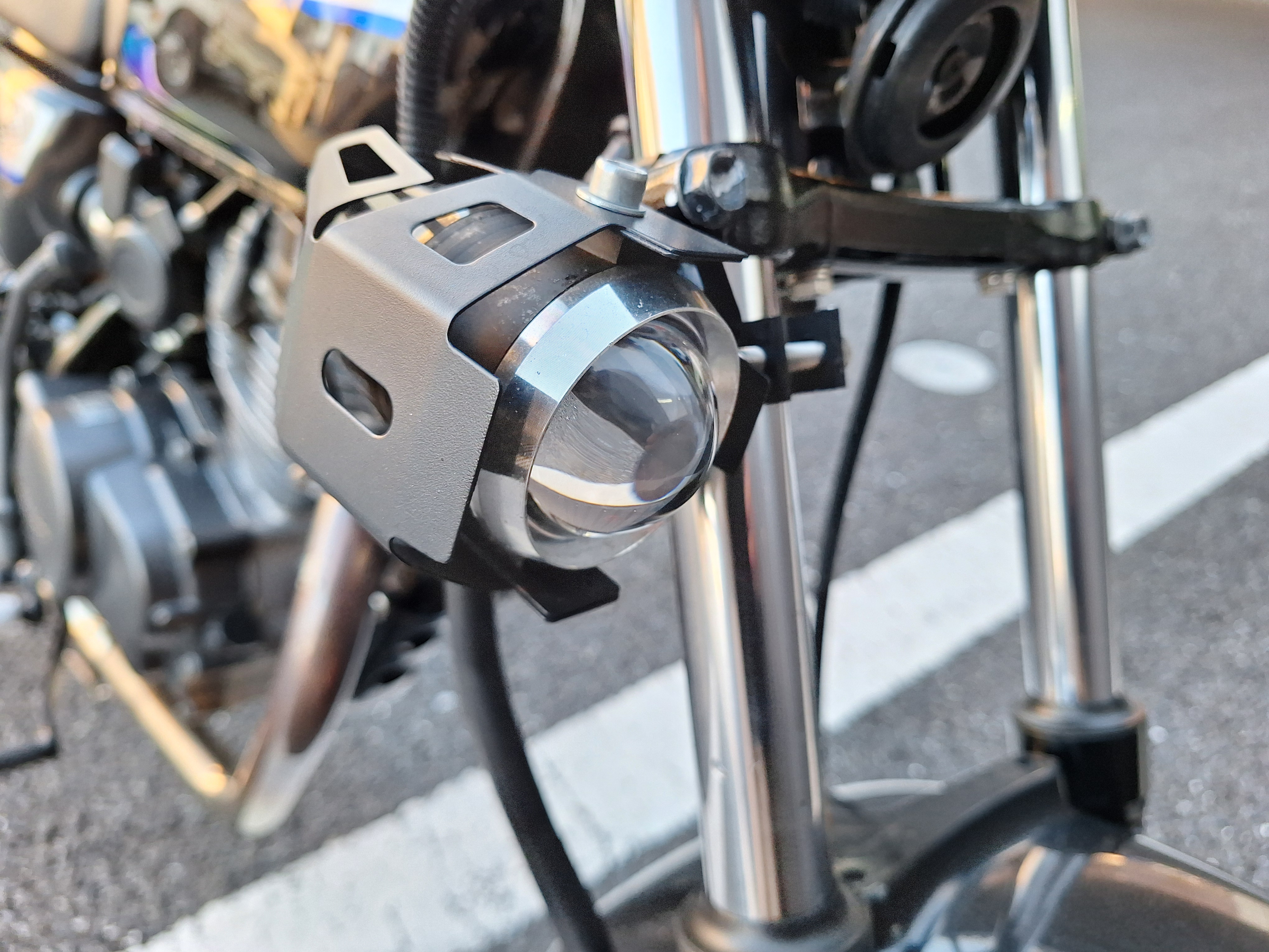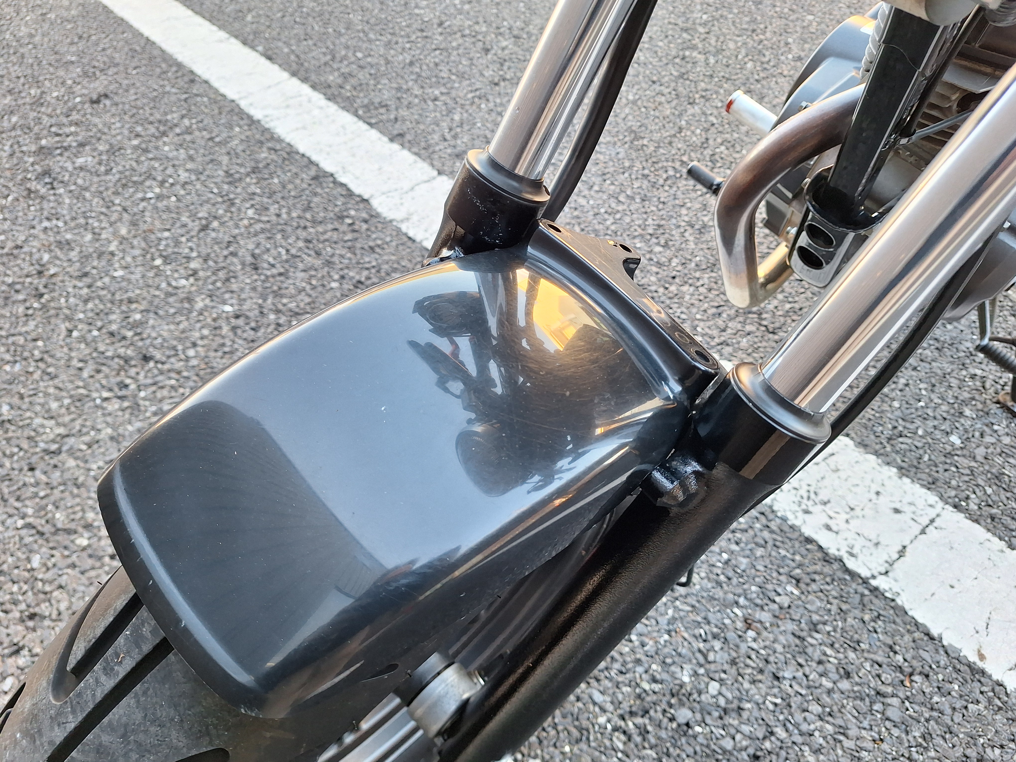 取付パーツ・社外チタンカラーマフラー、LEDウインカーセット、リヤフェンダーレスキット&テールライト、フロントダウンフェンダー、リヤインナーフェンダー、アルミステップバー、リヤキャリア、社外アジャストレバー、フォグランプ付