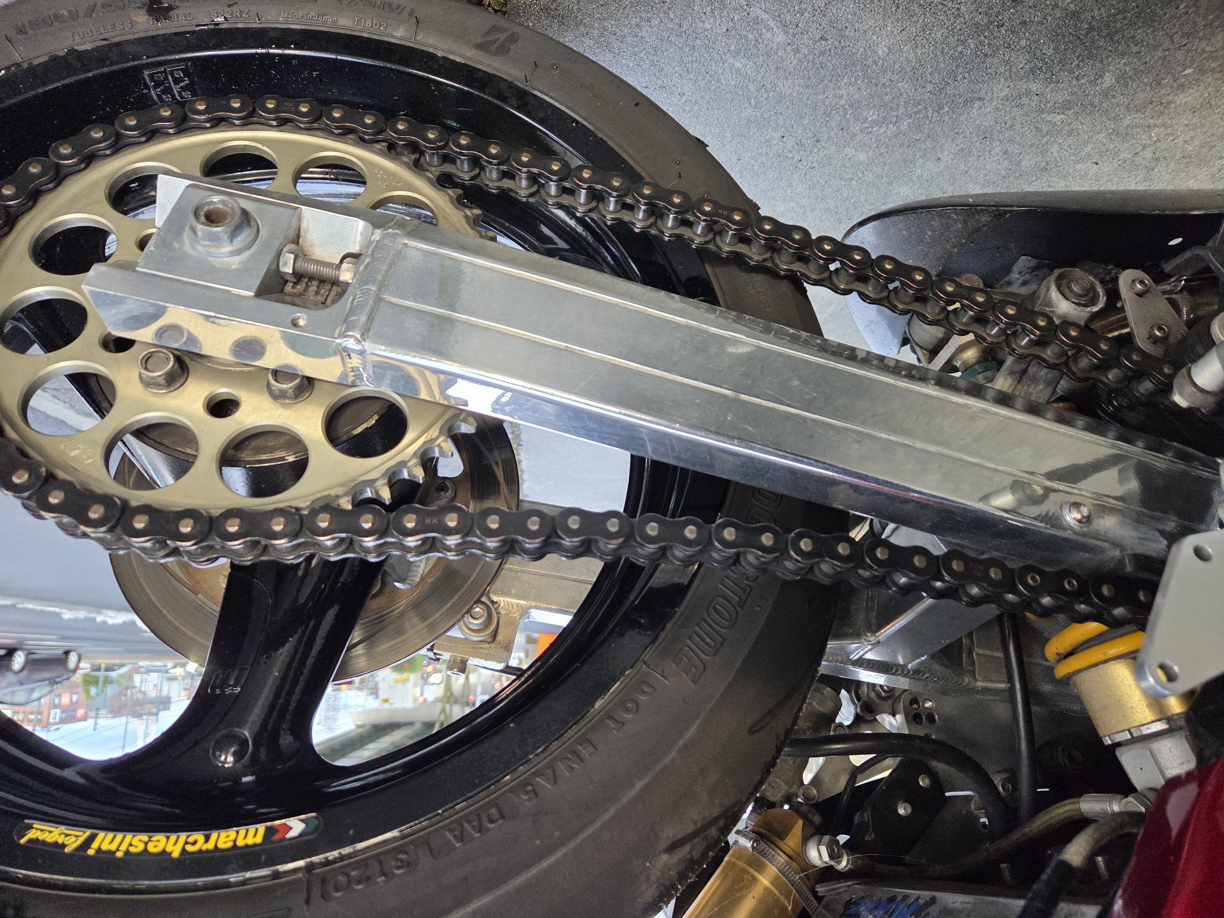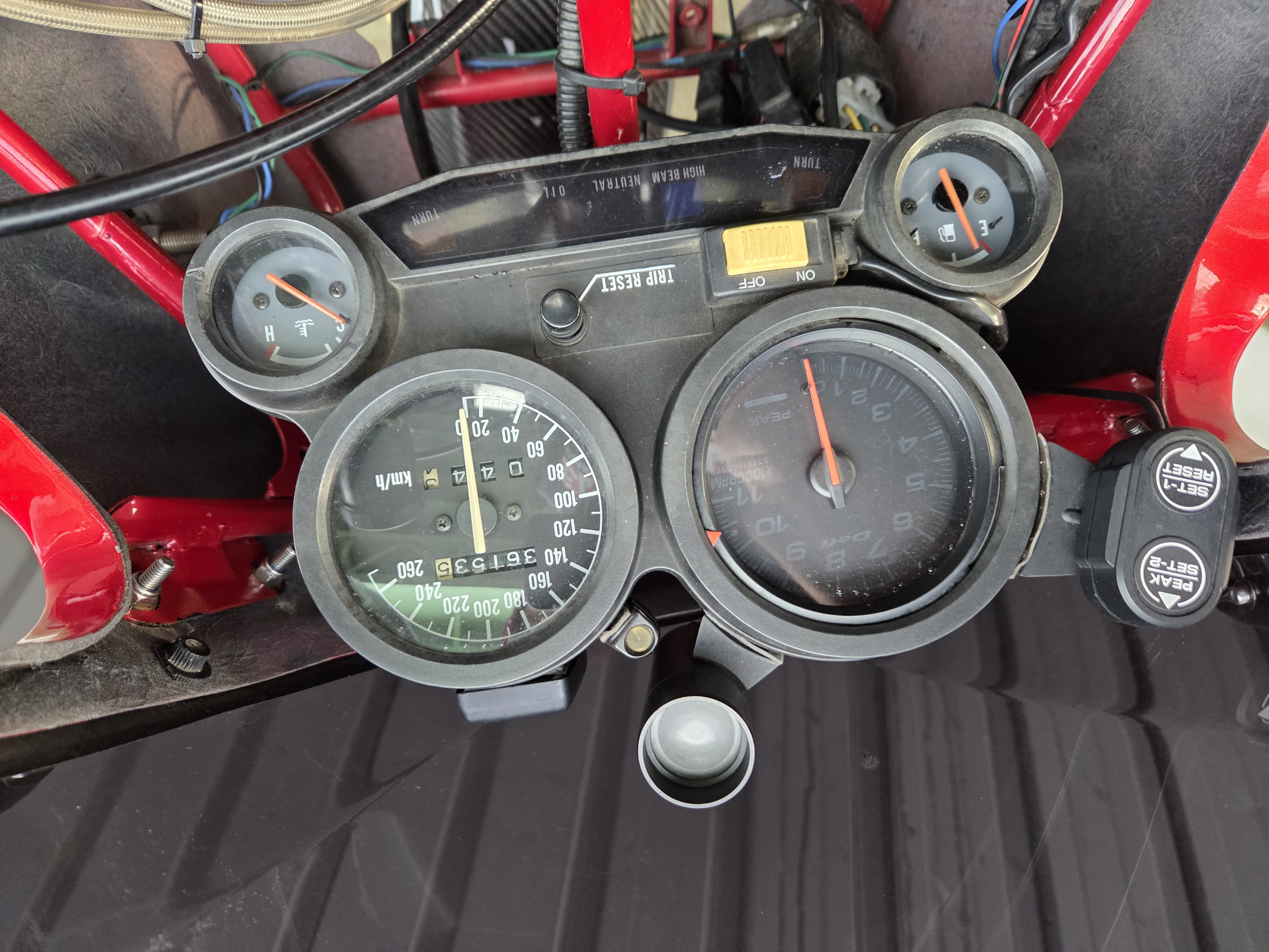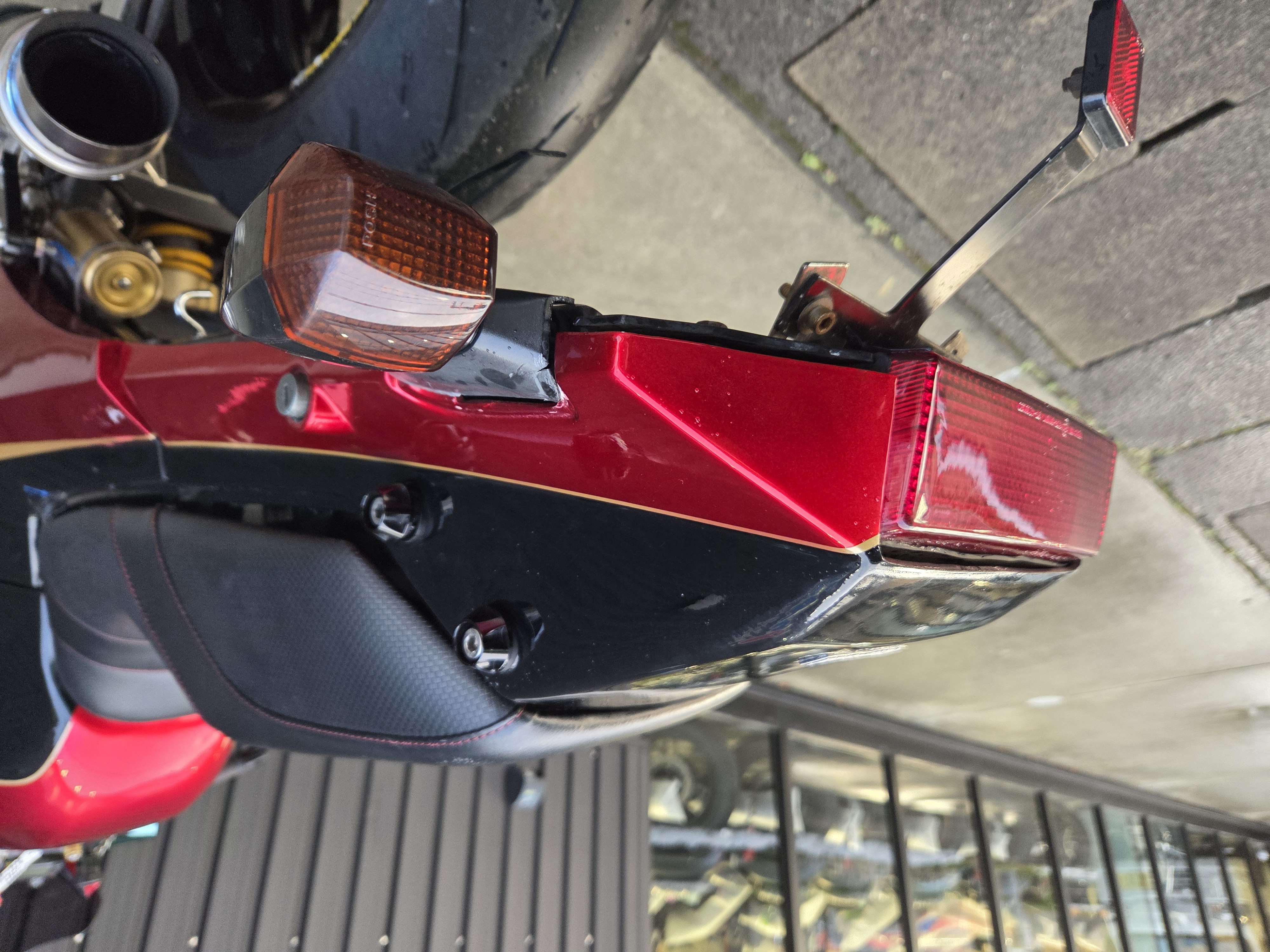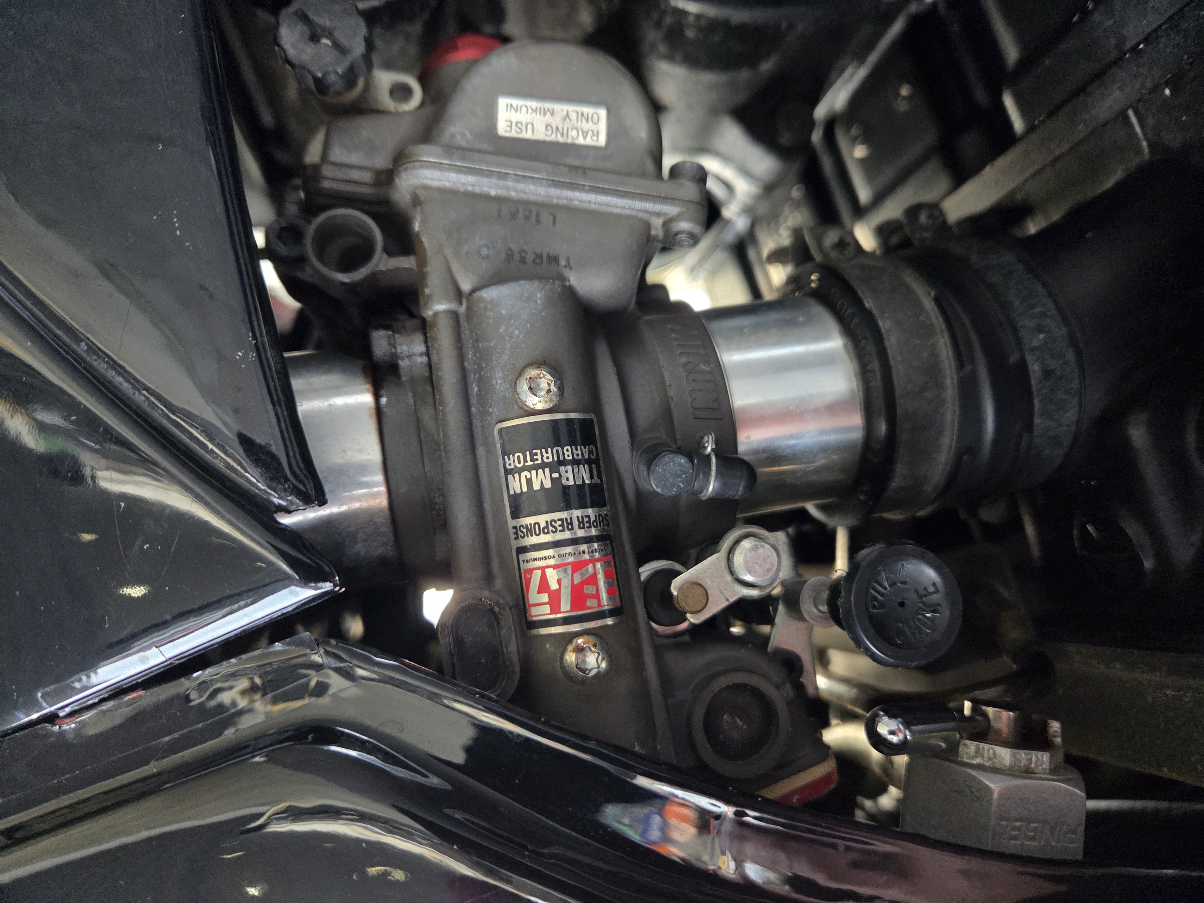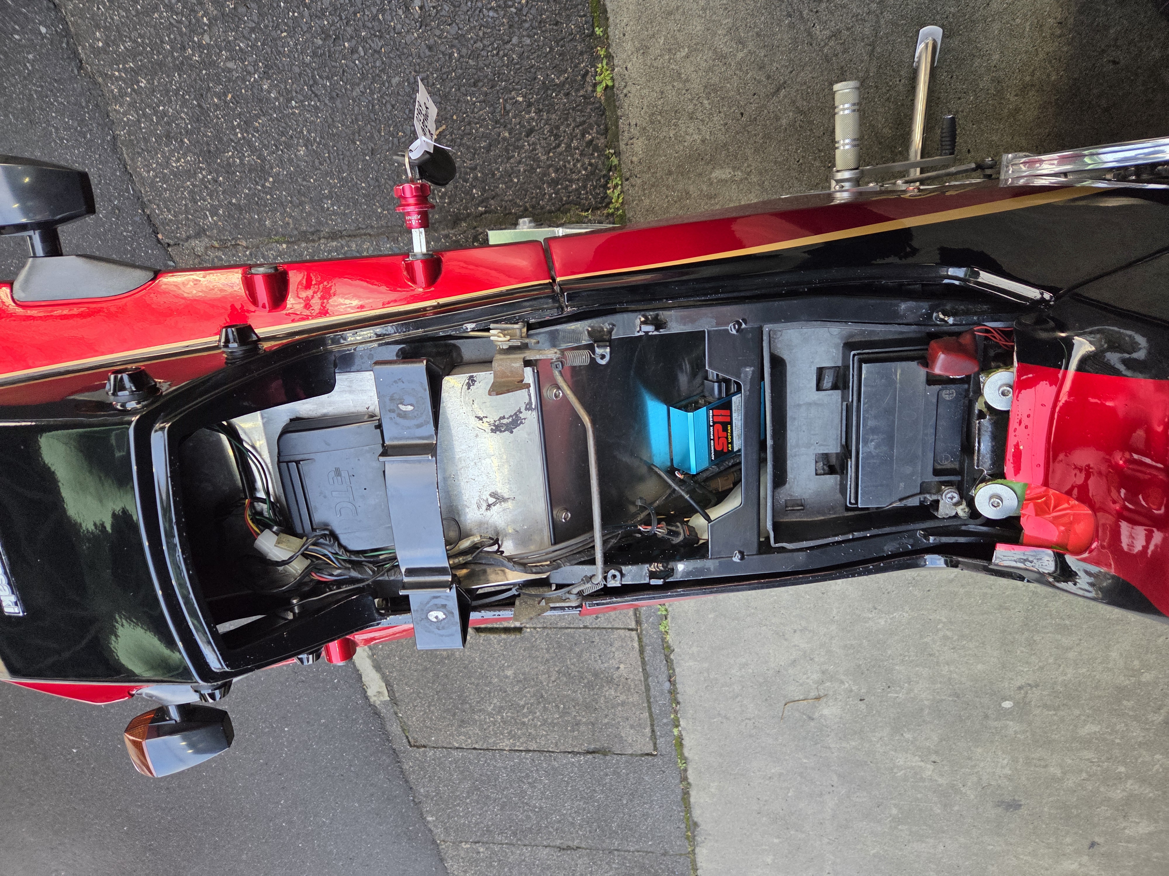 取付パーツ・マルケジーニM3R,ヨシムラTMR,前後オーリンズ、プロト17インチ用スイングアーム、NITROサイレンサー、FRブレンボキャリパー、Defiタコメーター、ETC,ウオタニSP2、ブレンボブレーキ&クラッチマスターシリンダー、オーバーバックステップ、アクティブダウンチューブ、マーベラスオリジナルシートフレーム、マーベラススクリーン、スペックエンジニアリング削り出しステムキット、FRPの外装一式タンクカバー他パーツ多数付