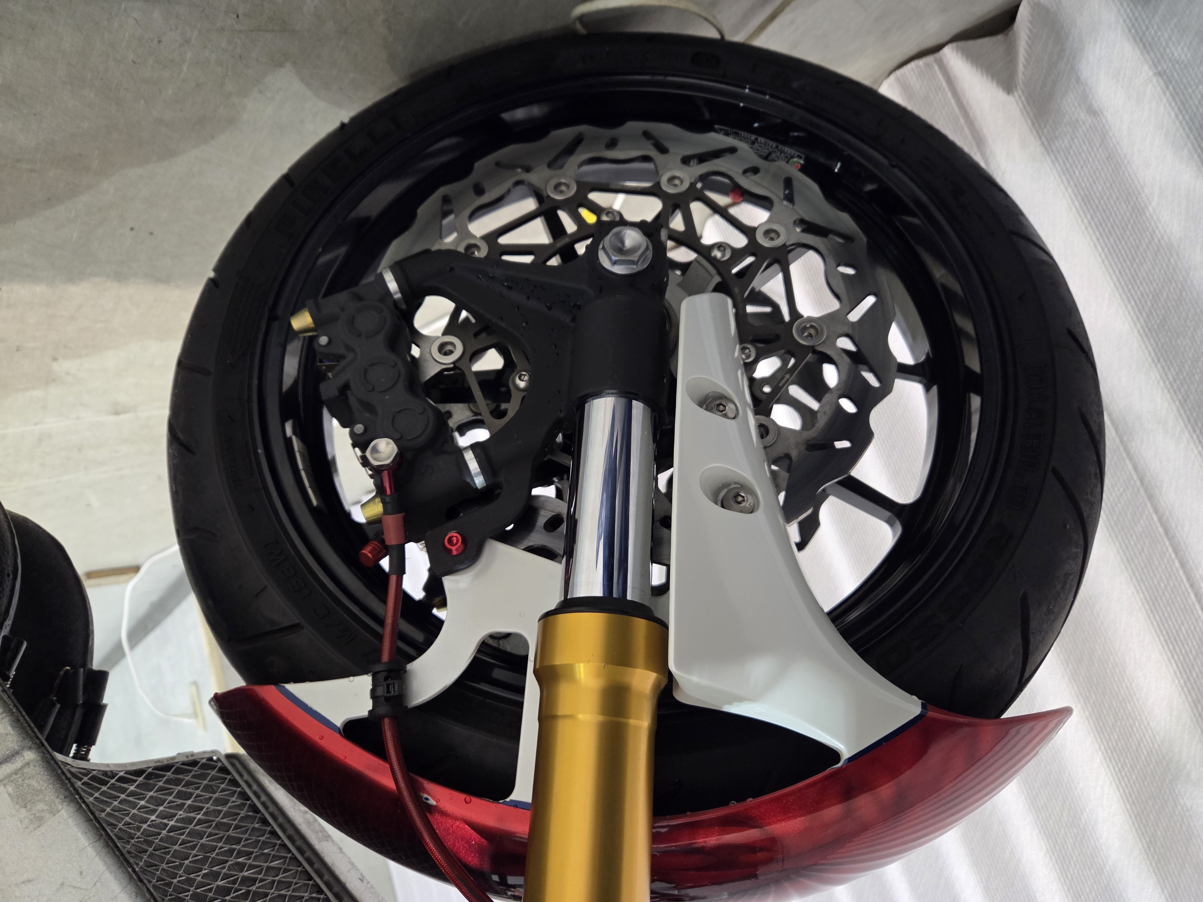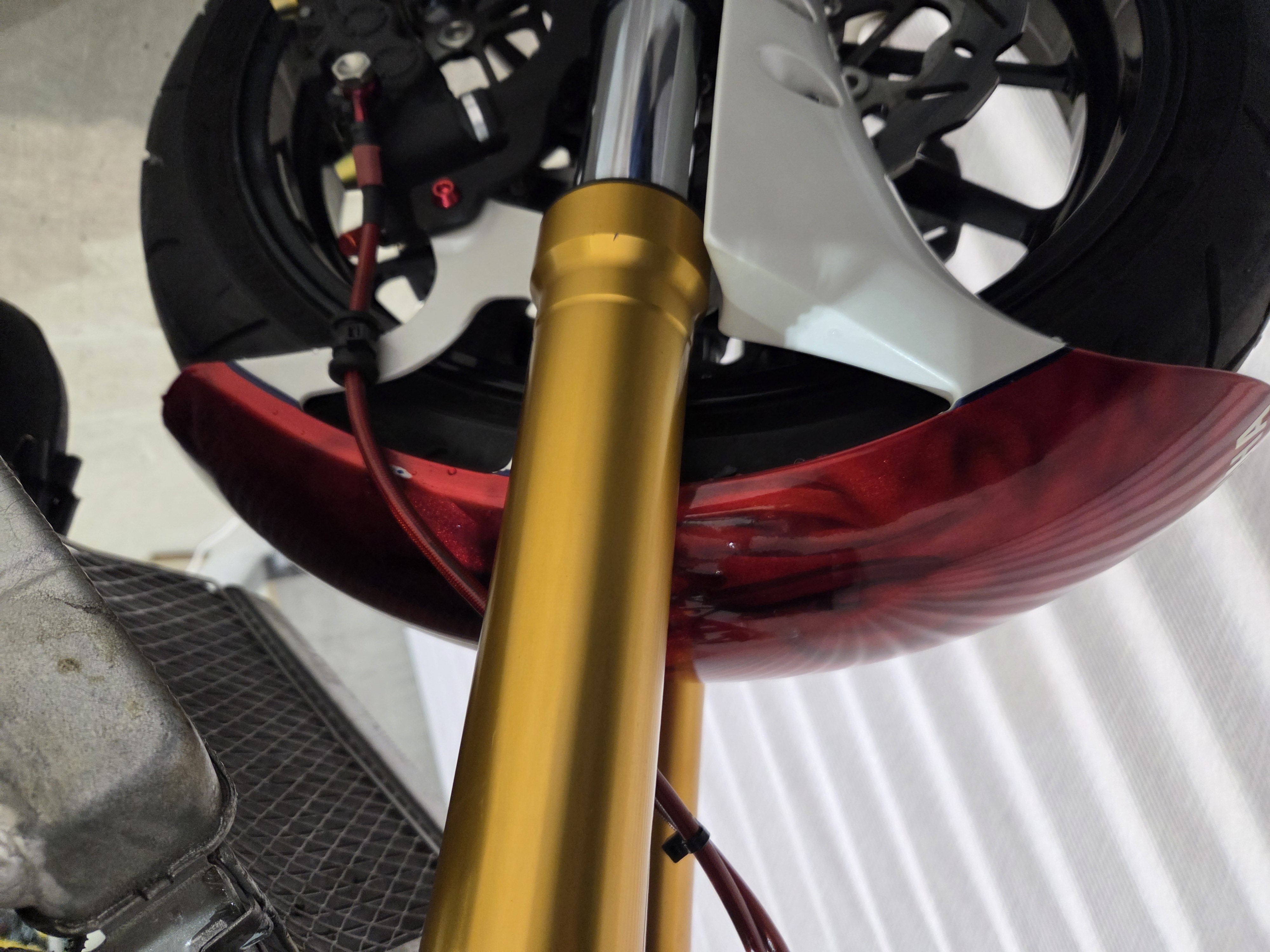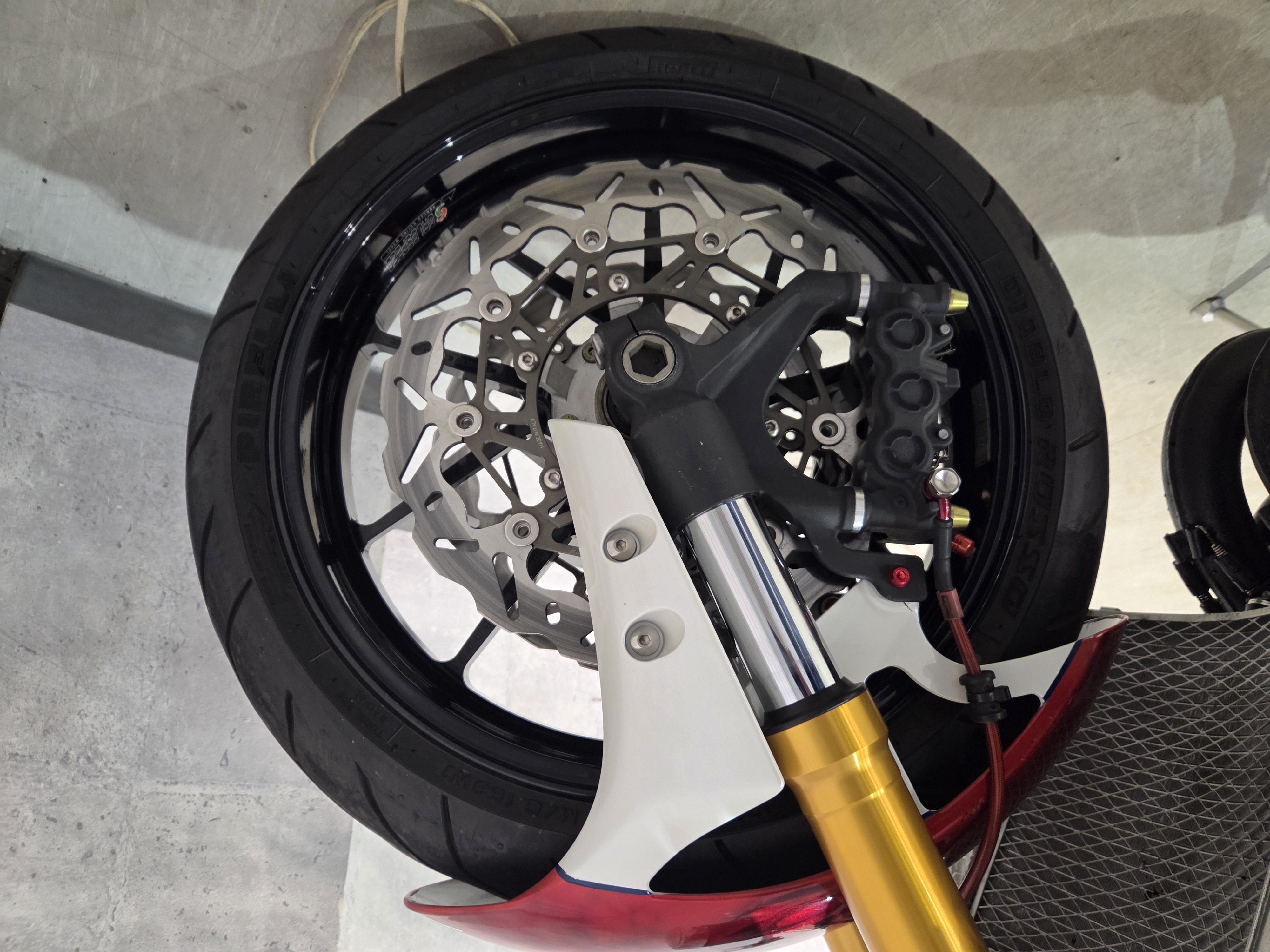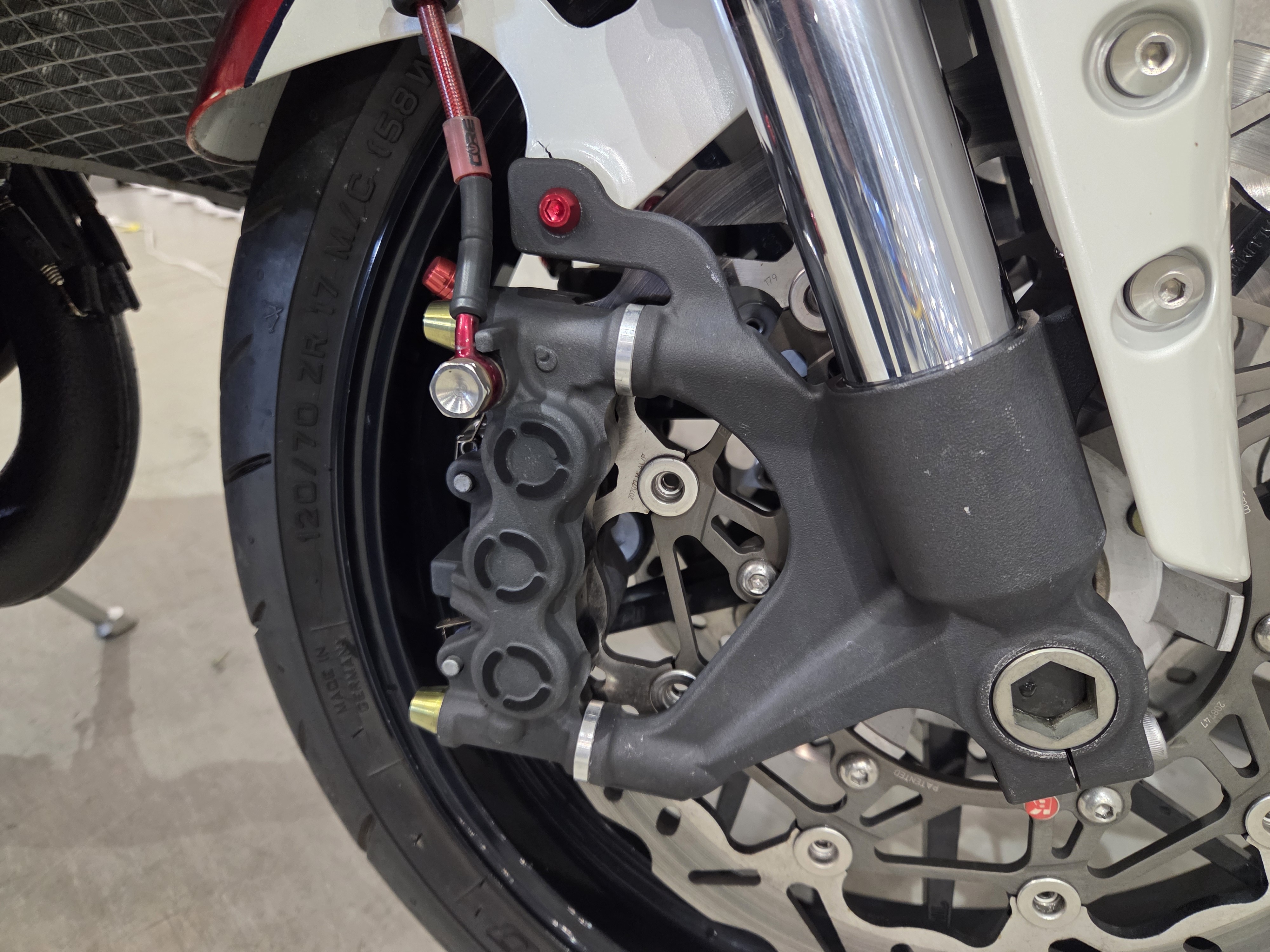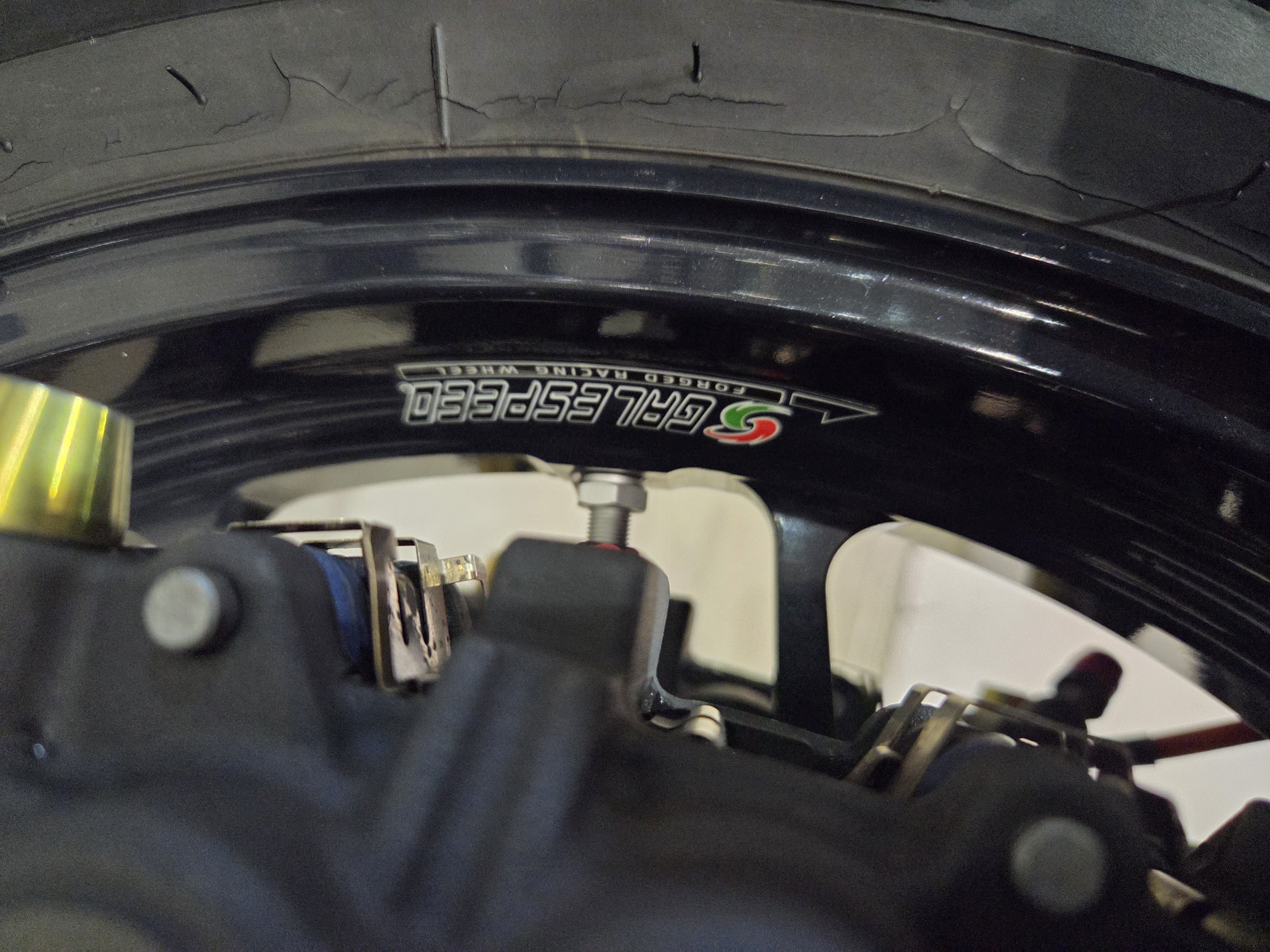 カスタムパーツ・SSイシイチャンバー、PWK28キャブ、エンジン350cc換装、オイルポンプ350用、YSSリアショック、フロント周りYZFR1流用、6ポッドキャリパー、ブレーキローター、スイングアームFZ6流用、キャリパー、ブレーキローター、前後ホイール、OSRCDI、リアフェンダーレス、ロックアップクラッチ、ケースカバー、アップハンドル、バックステップ、ストロボカラー・プロショップ全塗装、タンク上部キング・ケニー・ロバーツ氏の直筆サイン入り