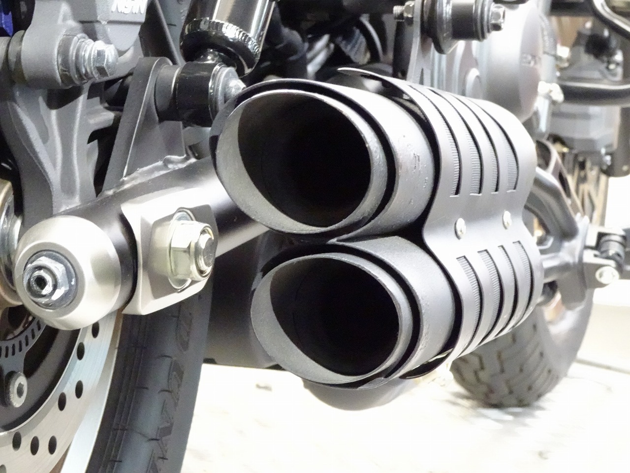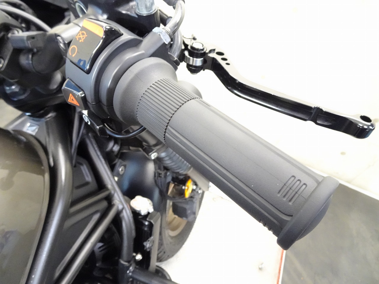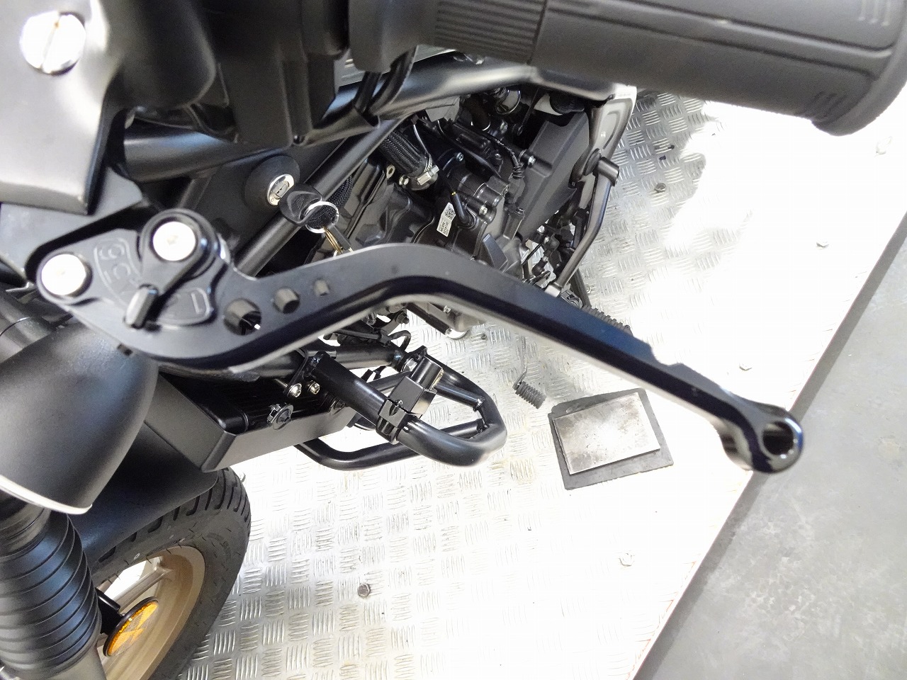 シーシーバー、サイドキャリア、デイトナ製USB、ブレーキレバー&クラッチレバー、社外マフラー、エンジンガード、ヘルメットホルダー