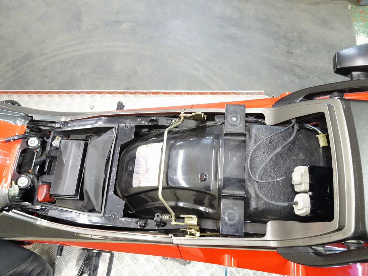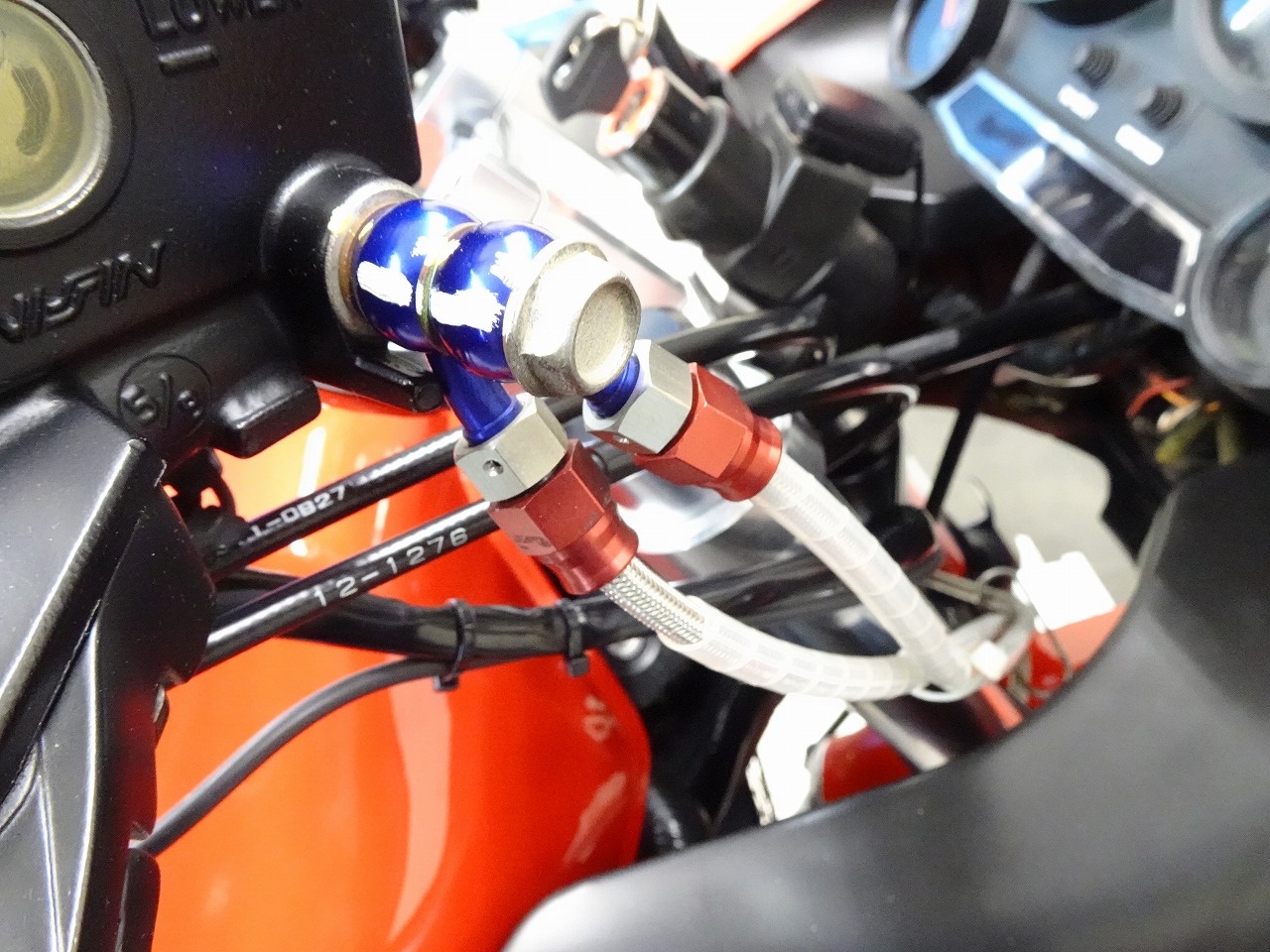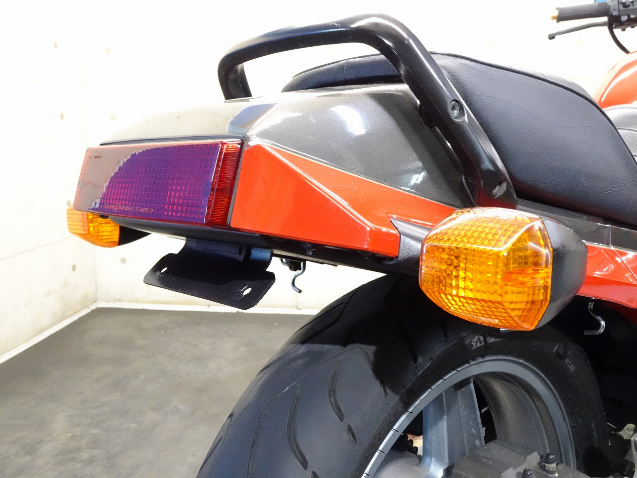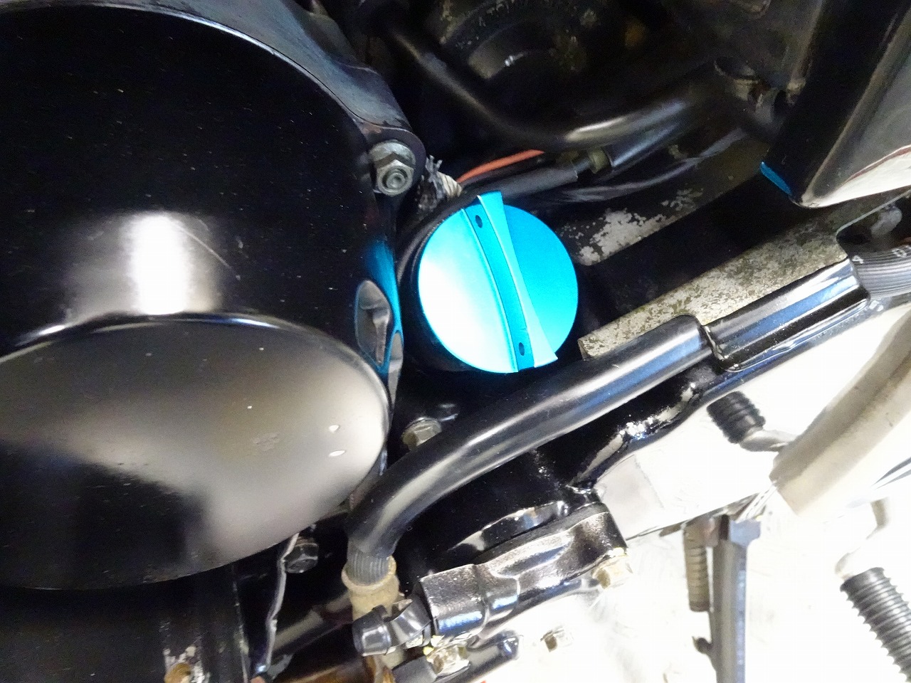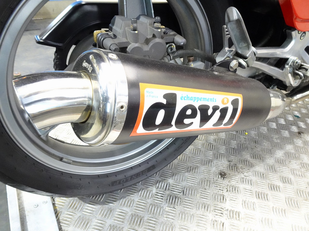 ETC車載器、DEVIL製マフラー、サイレンサー、スクリーン、ブレーキホース、ハリケーン製アップハンドル、ハンドルポスト、トップブリッジ、グリップ、シート、フェンダーレス、オイルフィラーキャップ、USB電源、ソケット