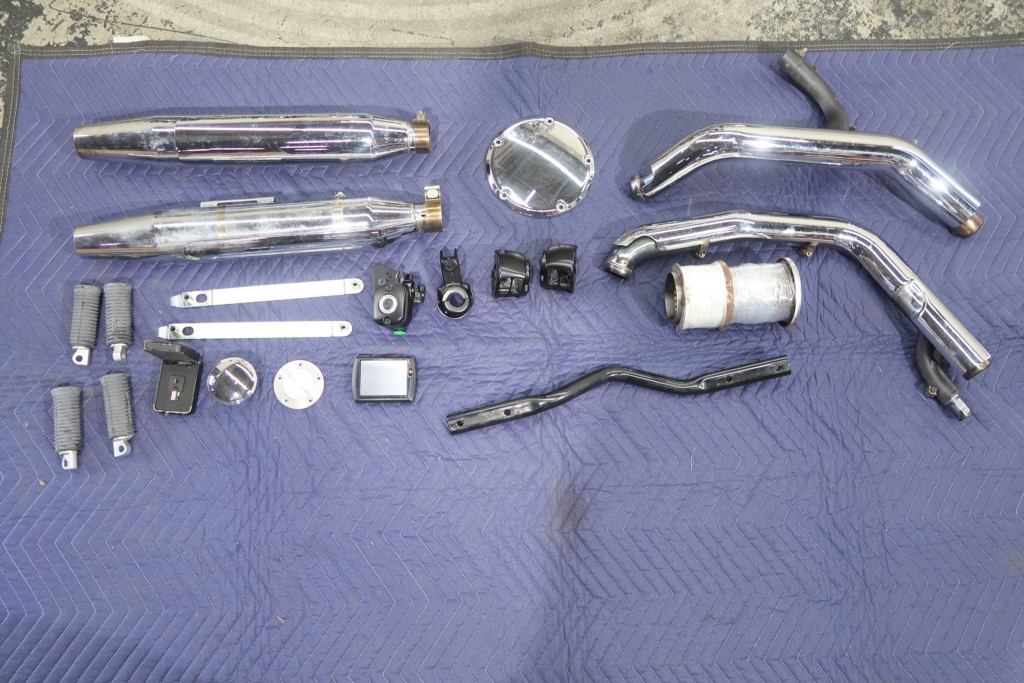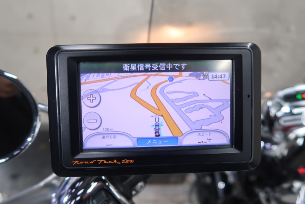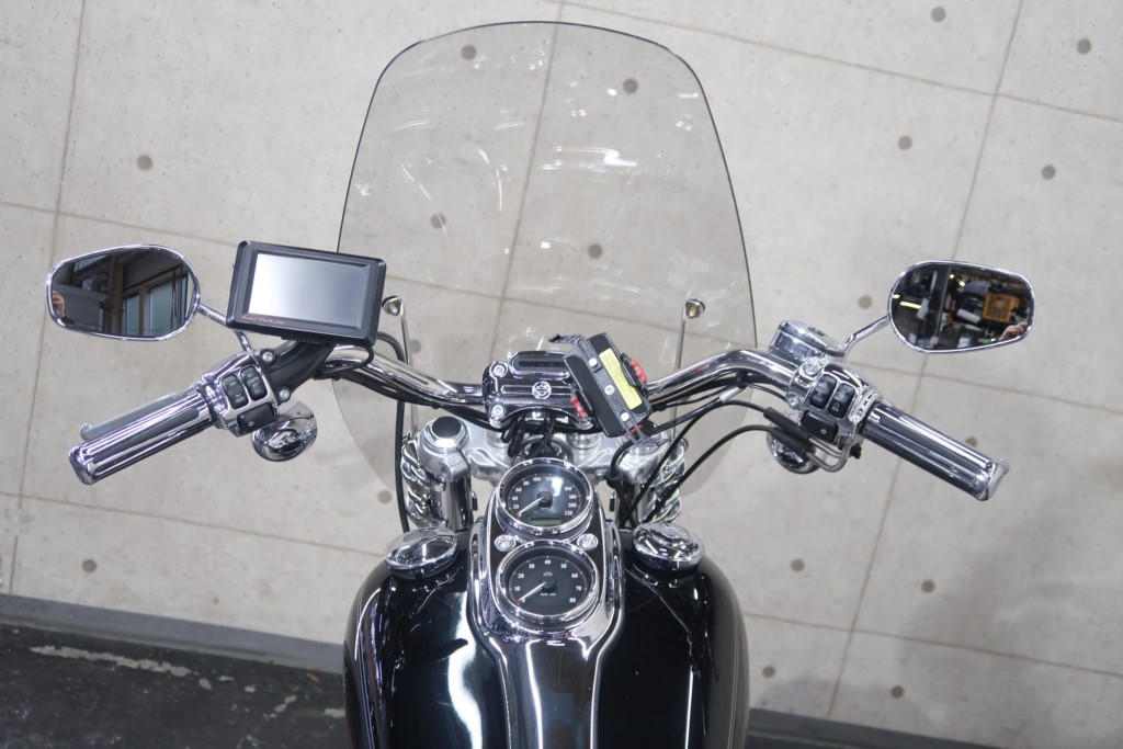 社外マフラー(VANCE&HINES)、バイク用ナビ、ウインドシールド、サドルバッグサポート、サドルバッグ、バッグレスト、ETC、メッキウインカー、メタルグリップ、スマホホルダー。