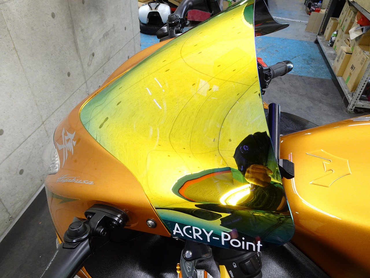 アクリポイントスクリーン、TANAXナポレオンミラー、ハリケーンセパレートハンドル、ZETAレーシングレバー、グリップヒーター、ハリケーンフェンダーレスキット、K-FACTORYエンジンスライダー、LEDヘッドライトバルブ、リムステッカー、マルチバー、USB電源、タンクパット
