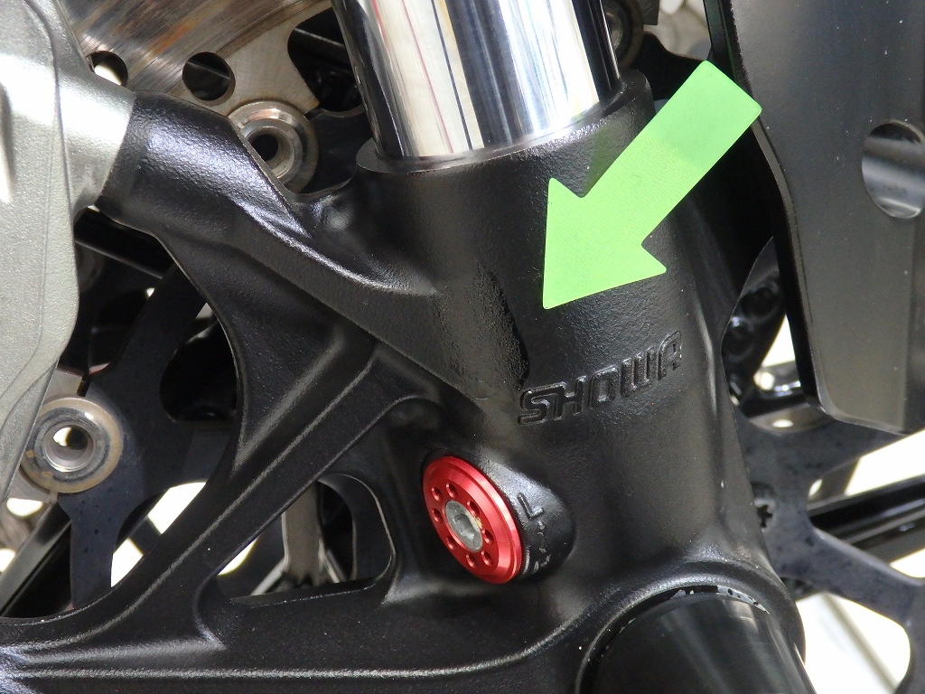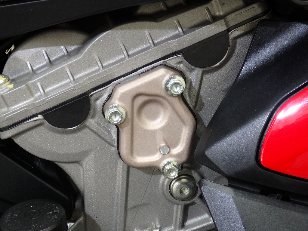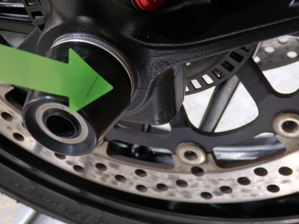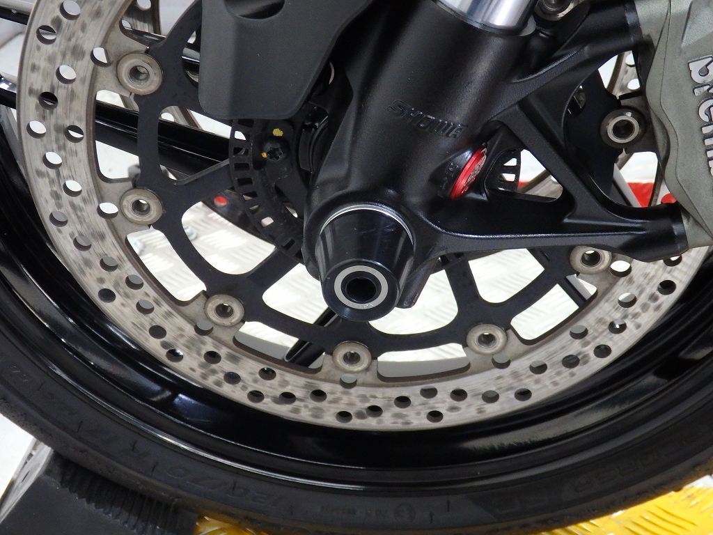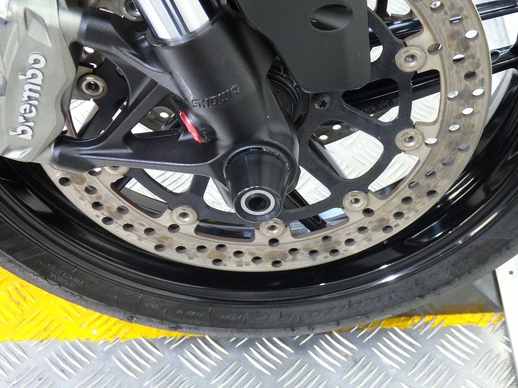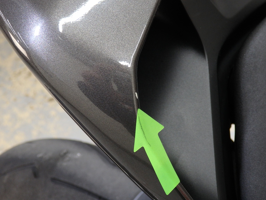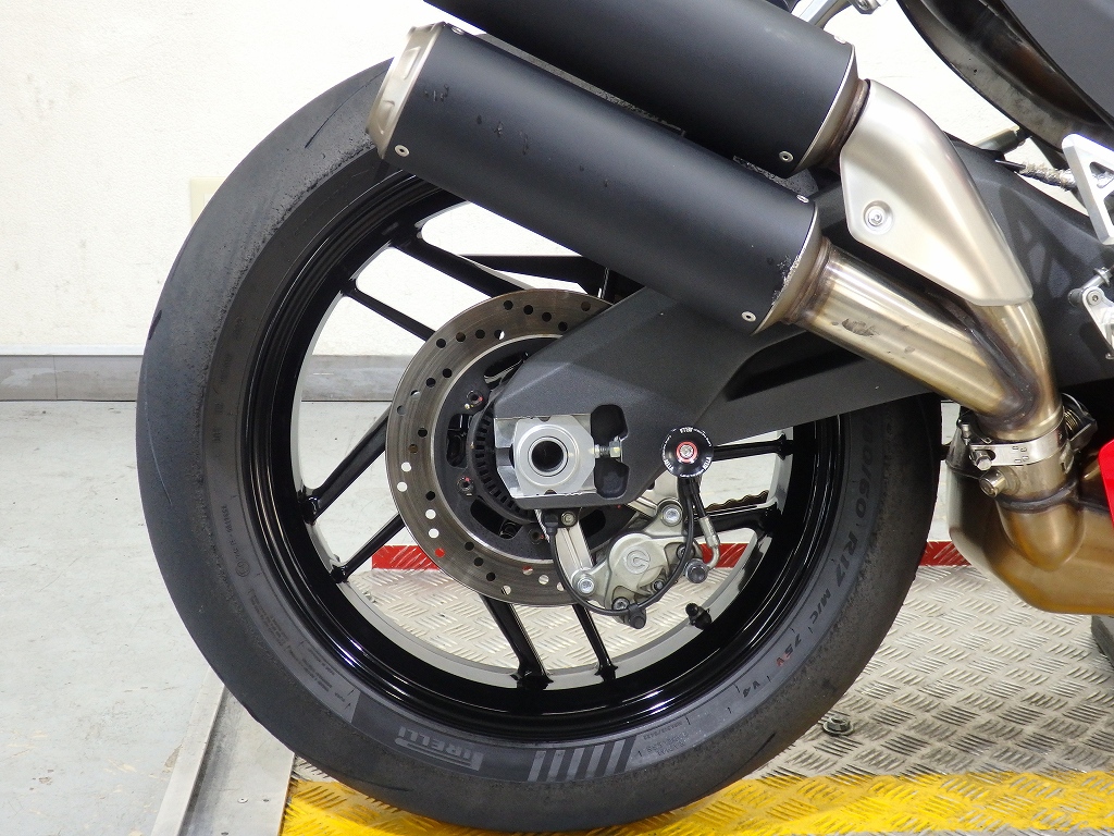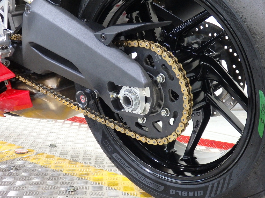 社外製シートカウル、フロントアクスルスライダー、アエラ製車高調整リンクロッド・レーシングスタンドフック・バックステップ、左右グリップ、可変ブレーキ・クラッチレバー、クラッチカバー、タンクパッド、ラジエターコアガード、