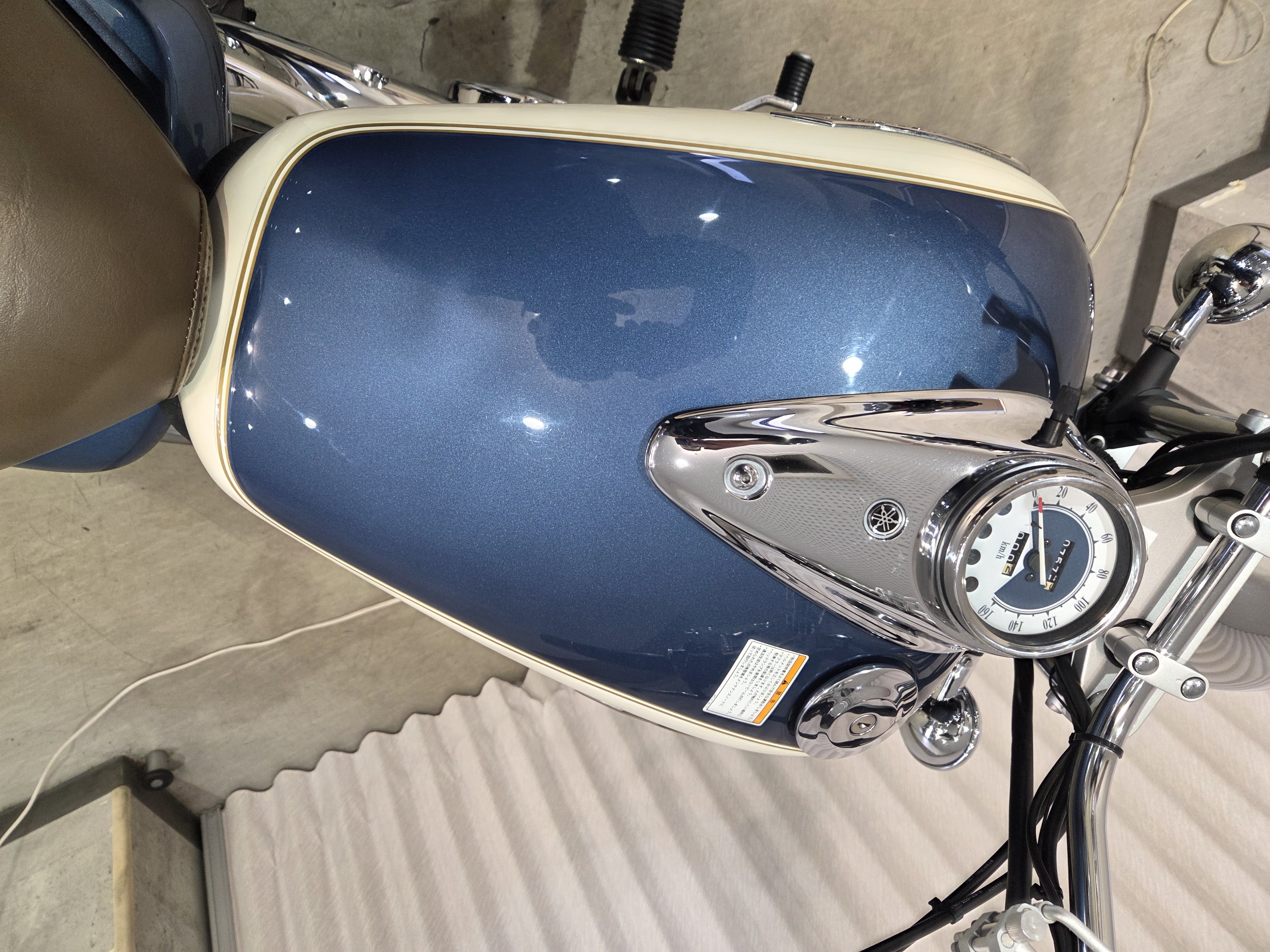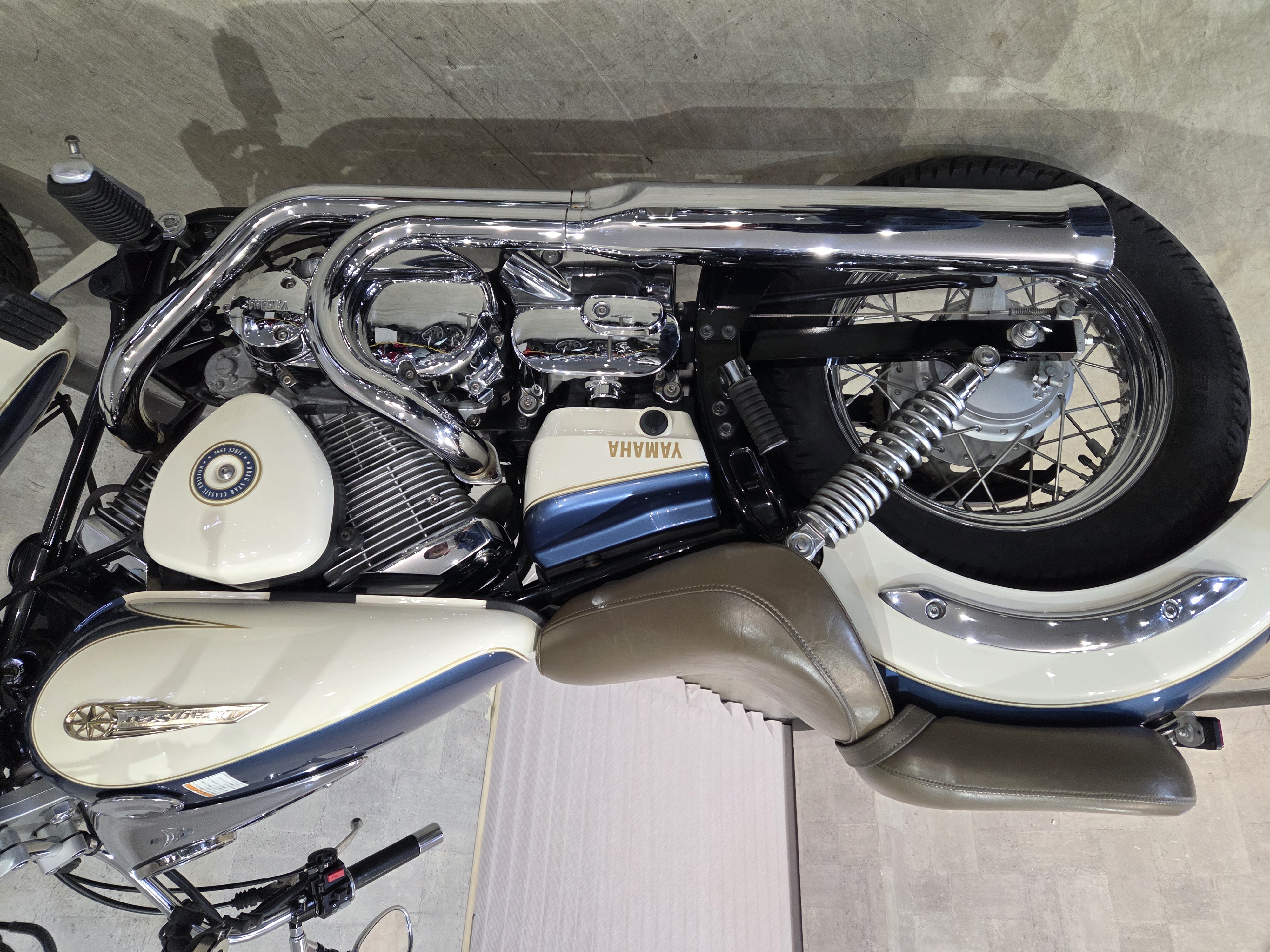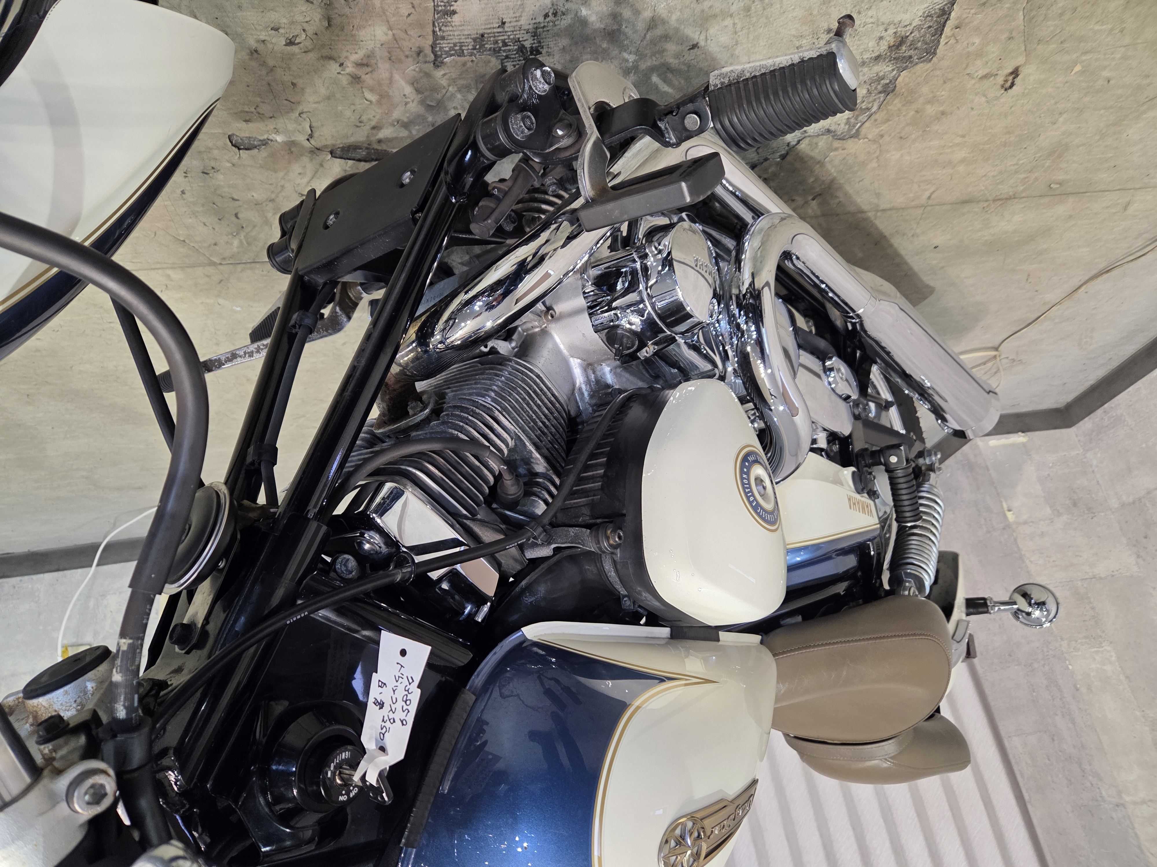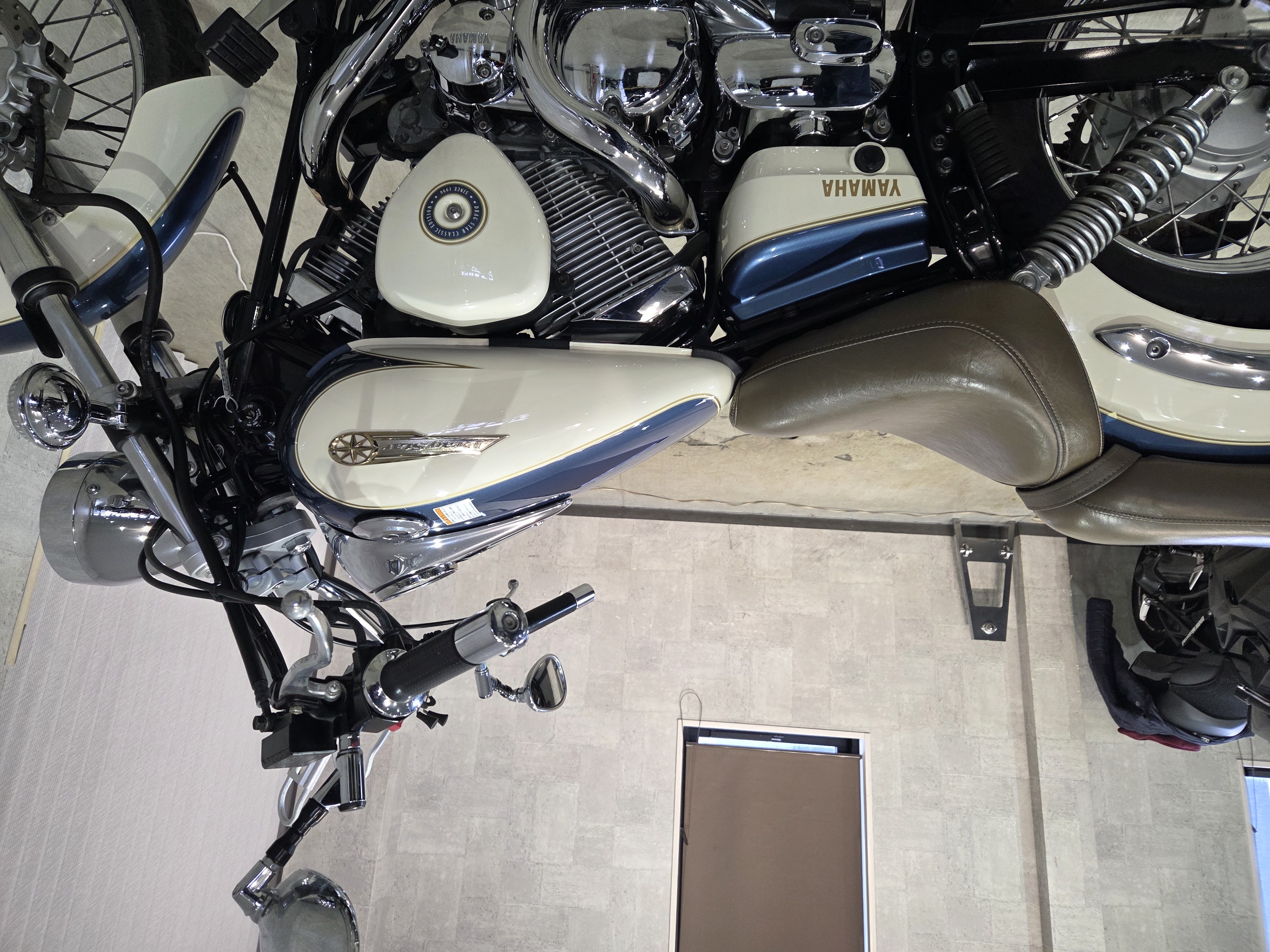 2012年クラシックエディション・タンク、前後フェンダー、サイドカバー等ホワイトツートーンカラー、ブラウンカラーの専用シート