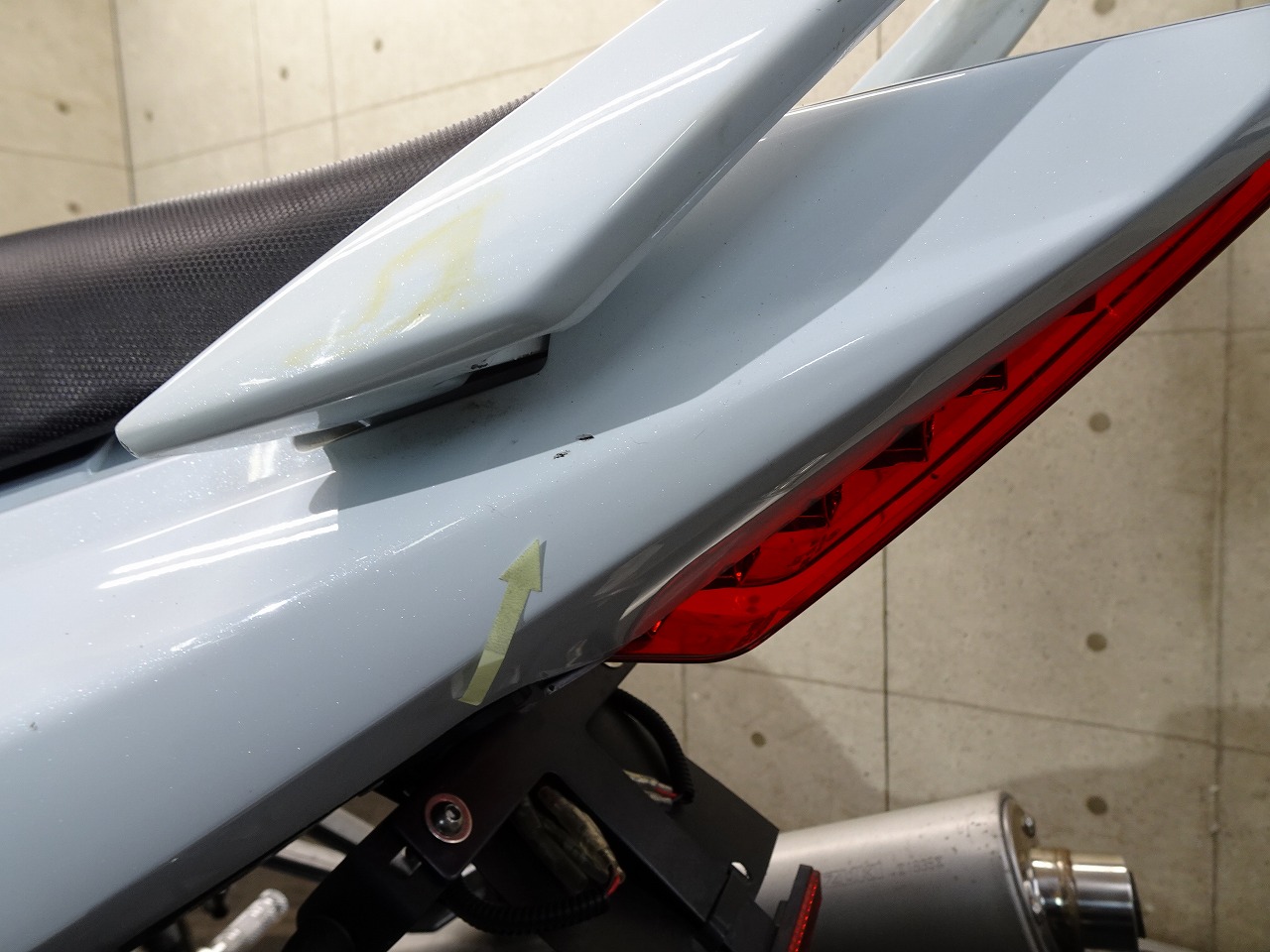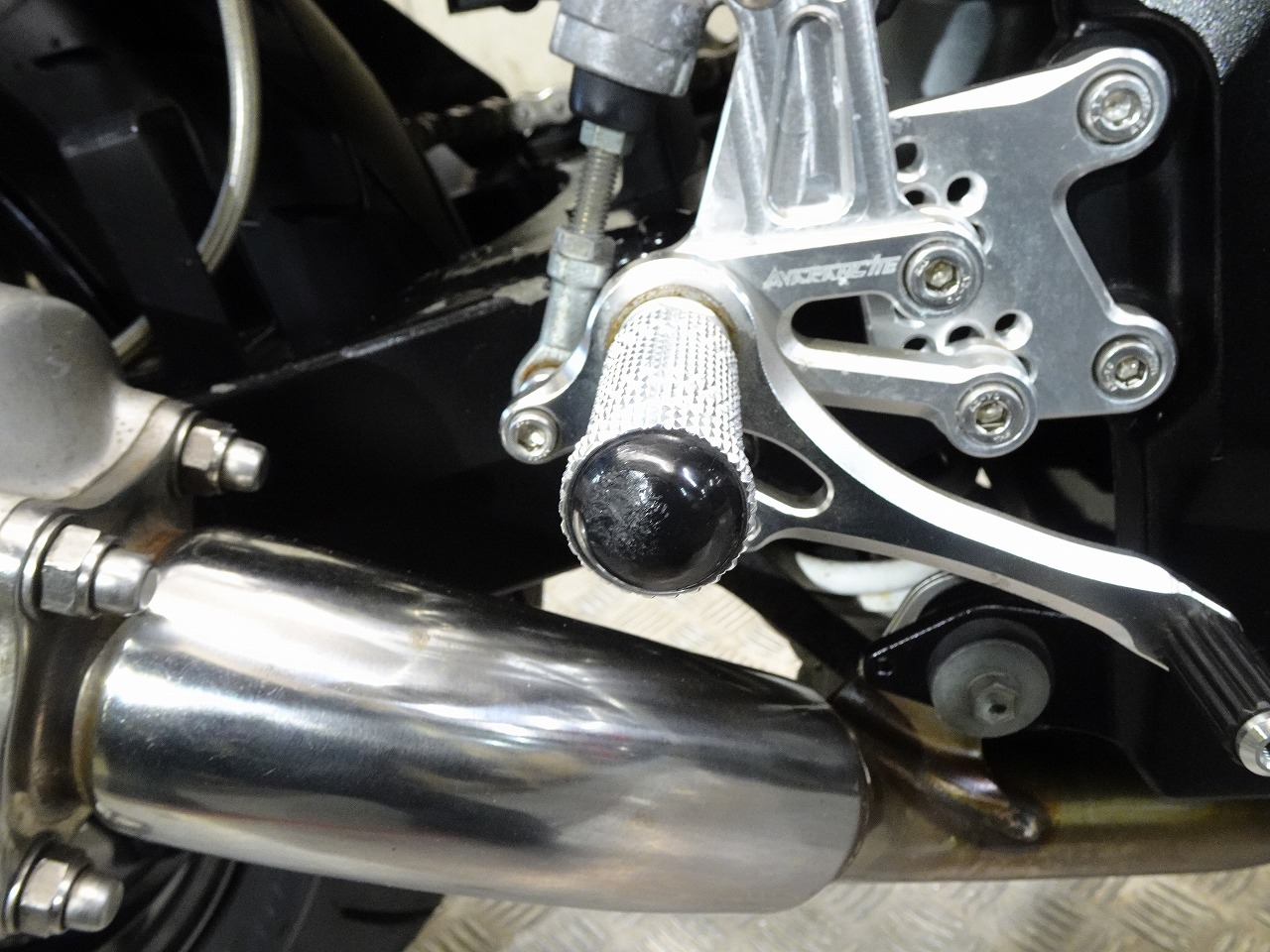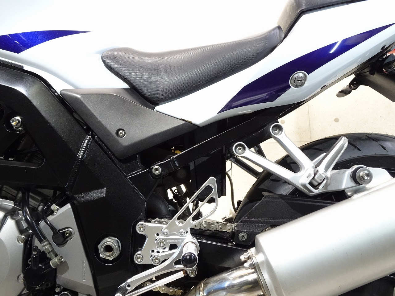 ETC車載器、GSX-R1000流用(トリプルツリー、ハンドル、Fフォーク、Fブレーキキャリパー、Fブレーキマスター)、前後ブレーキメッシュホース、前後LEDウインカー、スモークスクリーン、LEDテールランプ、Avalancheバックステップ、フェンダーレス、LEDヘッドライトバルブ、スタンドフック