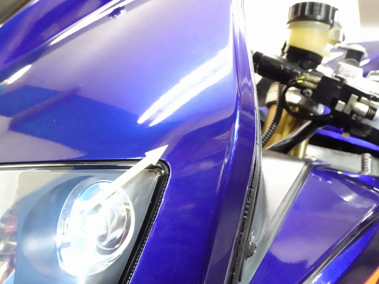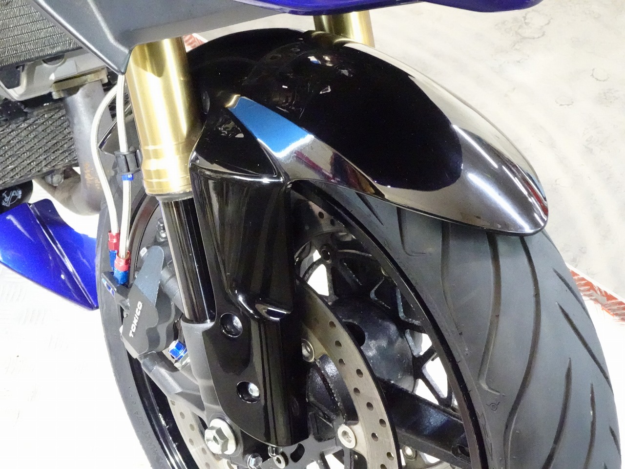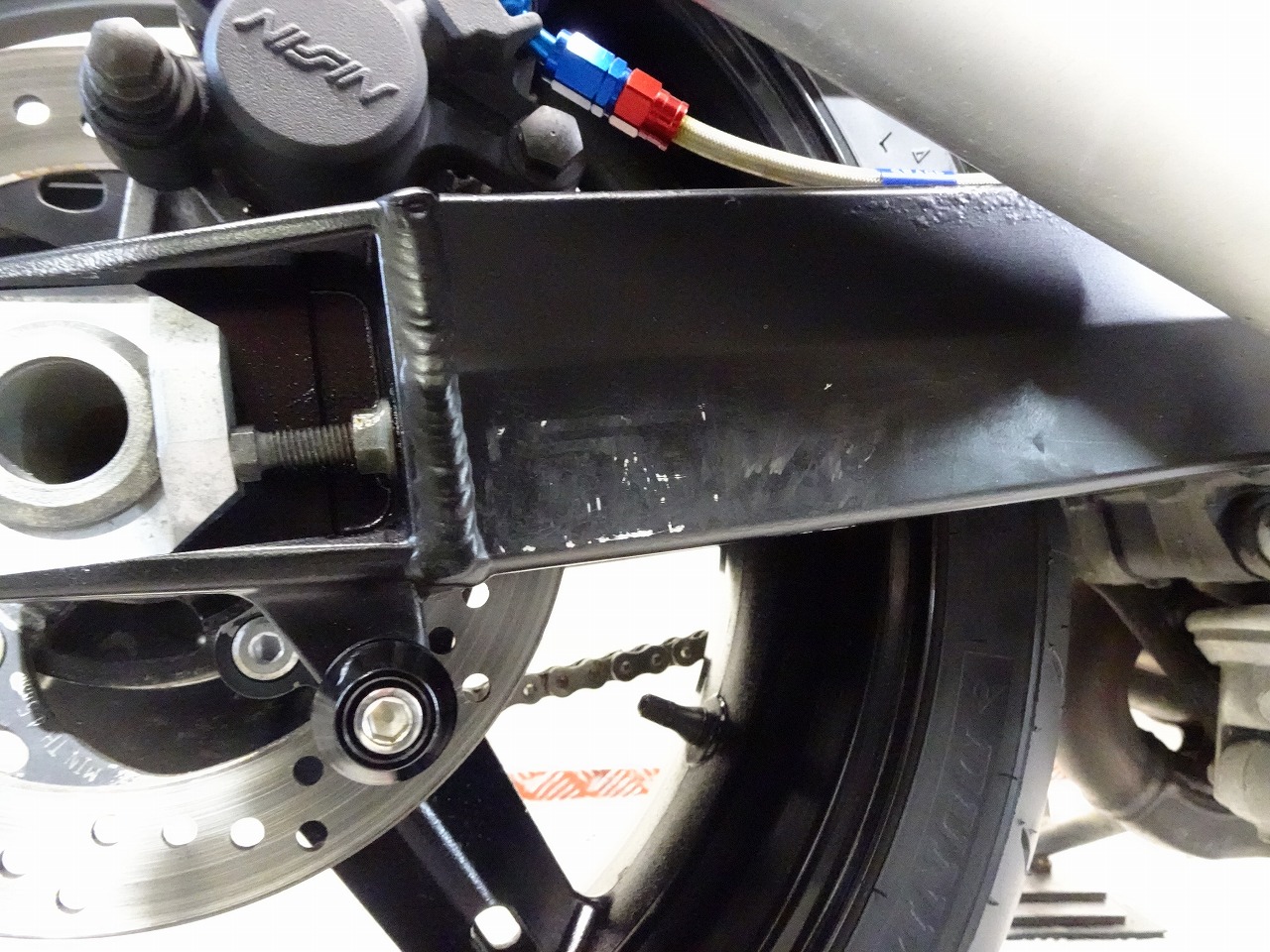 ETC車載器、GSX-R1000流用(トリプルツリー、ハンドル、Fフォーク、Fブレーキキャリパー、Fブレーキマスター)、前後ブレーキメッシュホース、前後LEDウインカー、スモークスクリーン、LEDテールランプ、Avalancheバックステップ、フェンダーレス、LEDヘッドライトバルブ、スタンドフック