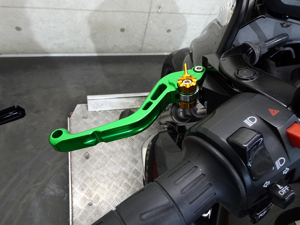 純正OPロングスクリーン、ETC車載器、ヨシムラ製スリップオンマフラー【JMCA:1112001047】、ZETA製レバーガード、ブレーキ&クラッチレバー、カエディア製マルチバー、タンクパッド、ヘルメットホルダー