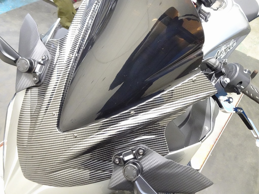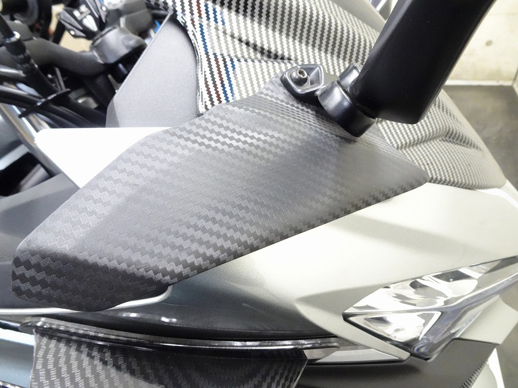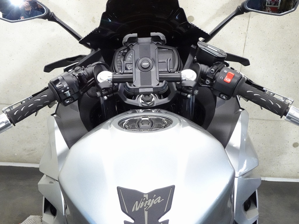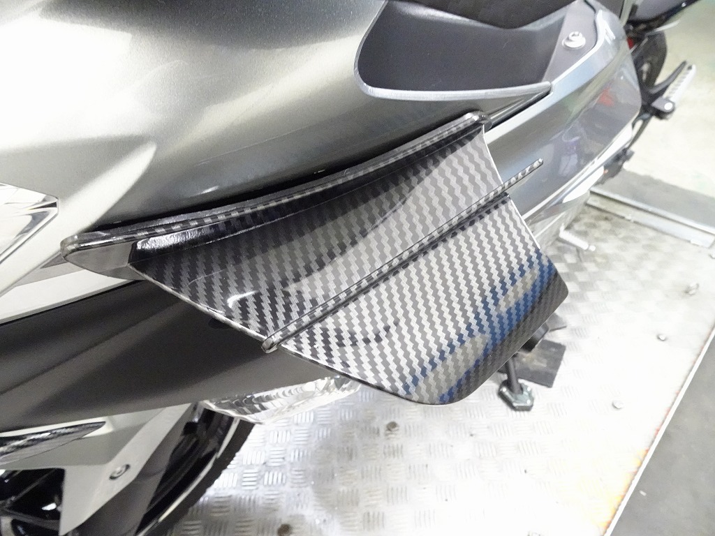 ETC2.0車載器、社外カウル、エンジンスライダー、カーボン風パーツ【トリムスクリーン、フロントフェアリングエアロ、ウイングレット】、スモークスクリーン、シフトペダル、マルチバー、スマホホルダー、ブレーキ&クラッチレバー、ハンドルグリップ、バーエンド、タンクパッド、ニーグリップパッド、タンクキャップパッド、リムテープ