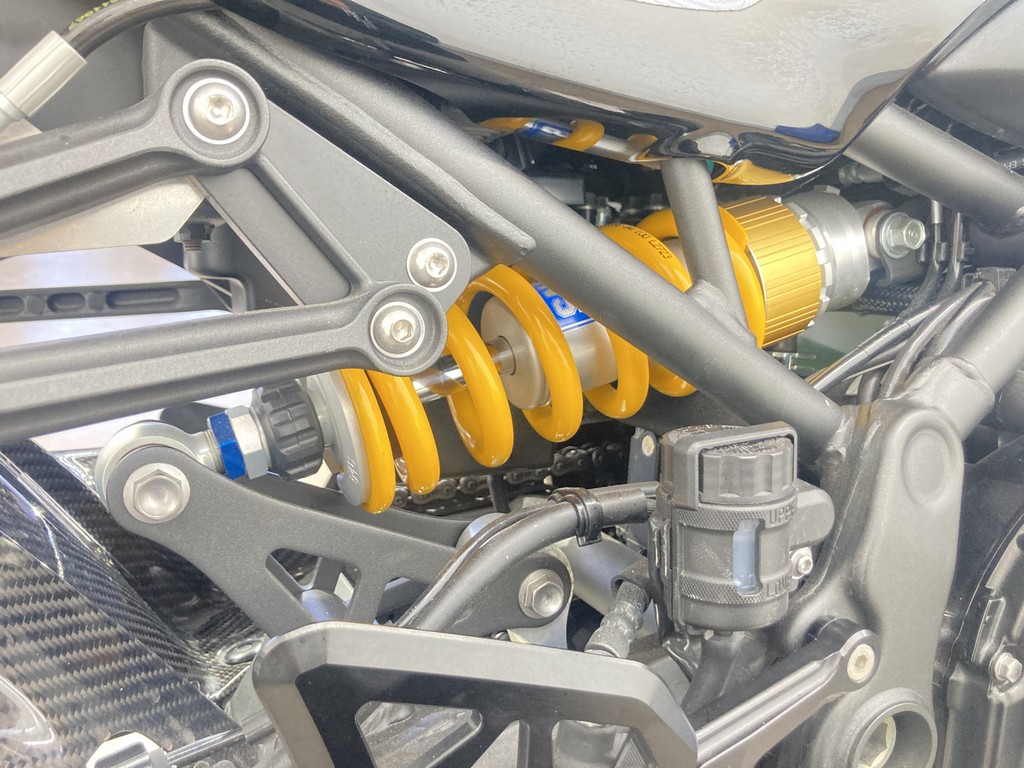ヨシムラフルエキ(定価:242,000円)、OHLINS製リアサスペンション