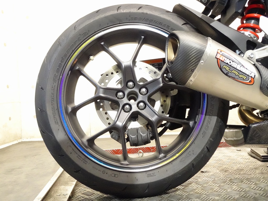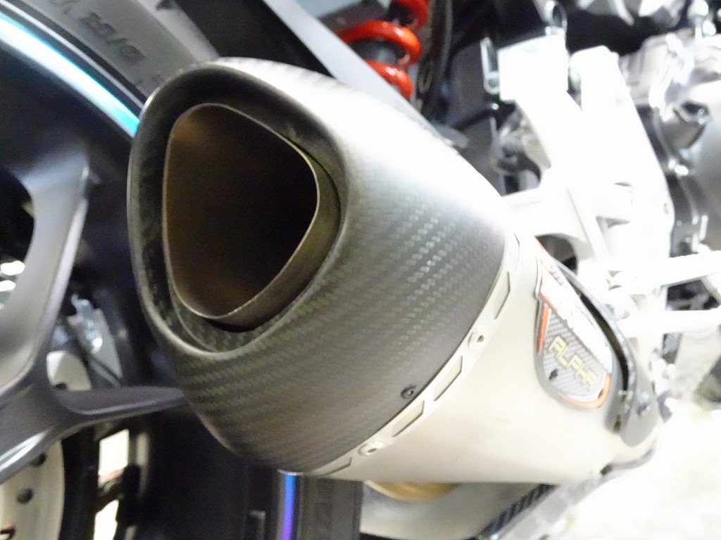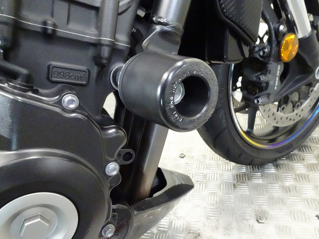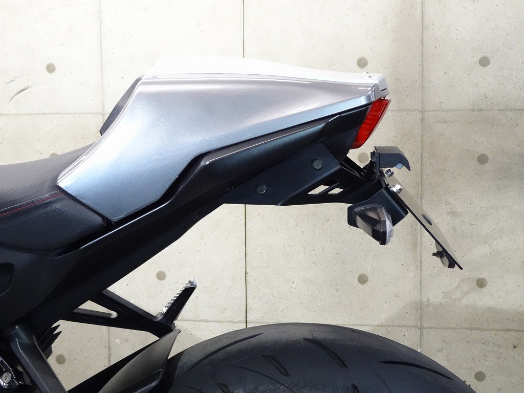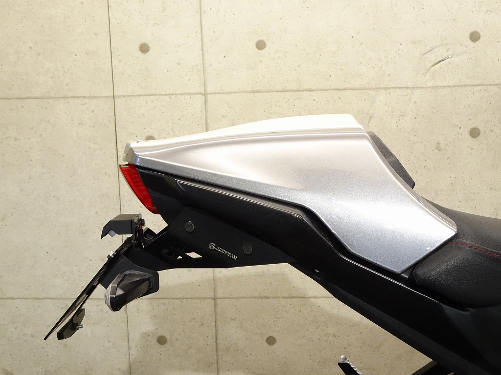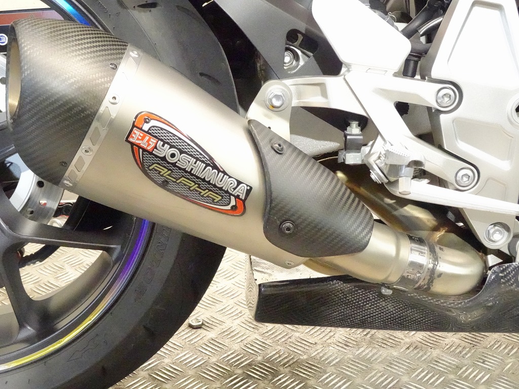 ETC車載器、ヨシムラUSA製アルファTフルエキマフラー(車検非対応)、アクティブ製フェンダーレスキット、モリワキ製エンジンスライダー、マジカルレーシング製アンダーカウル、デイトナ製エアロバイザー、ラジエーターコアガード、リムテープ、ブレーキ&クラッチレバー、バーエンド、USB電源、スマホホルダー、ヘルメットホルダー