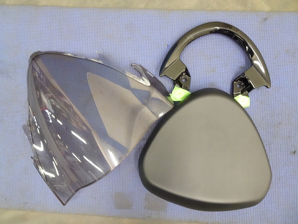 ETC2.0車載器、アグラス製エンジンスライダー、バーエンド、シングルシートカウル、マルチバー、ニーグリップパッド、タンクパッド