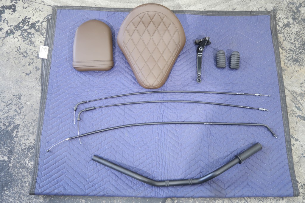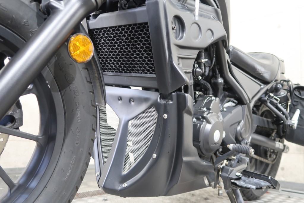 リアウインカーレンズカバー、エンジンカウル、アンダーカウル、電圧計付きグリップヒーター、ステップボード、フロントワイヤー類延長