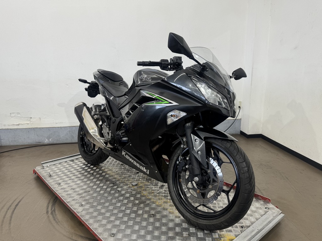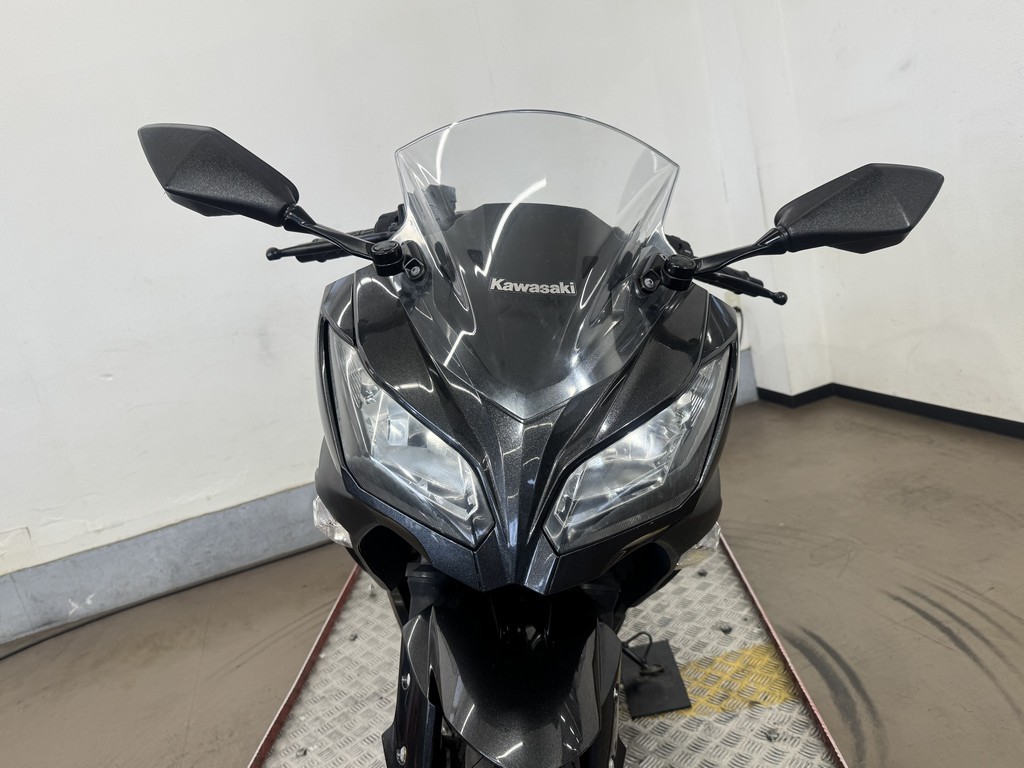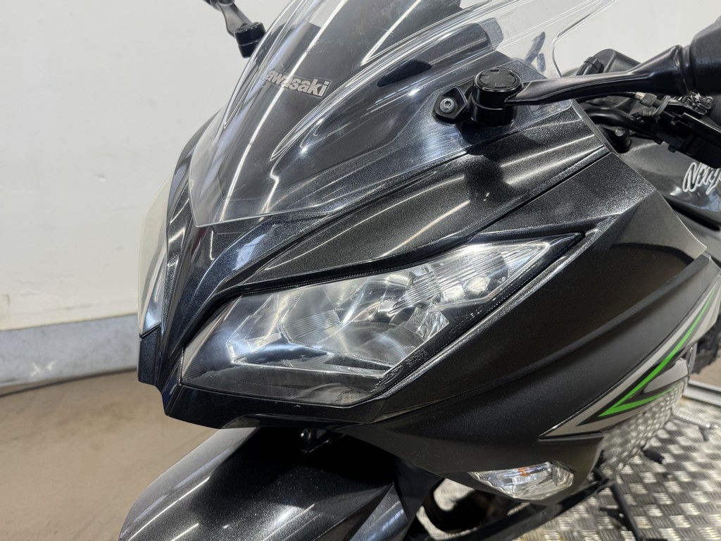 大排気量クラスのニンジャシリーズ同様の2眼ヘッドライトとシャープなボディ。